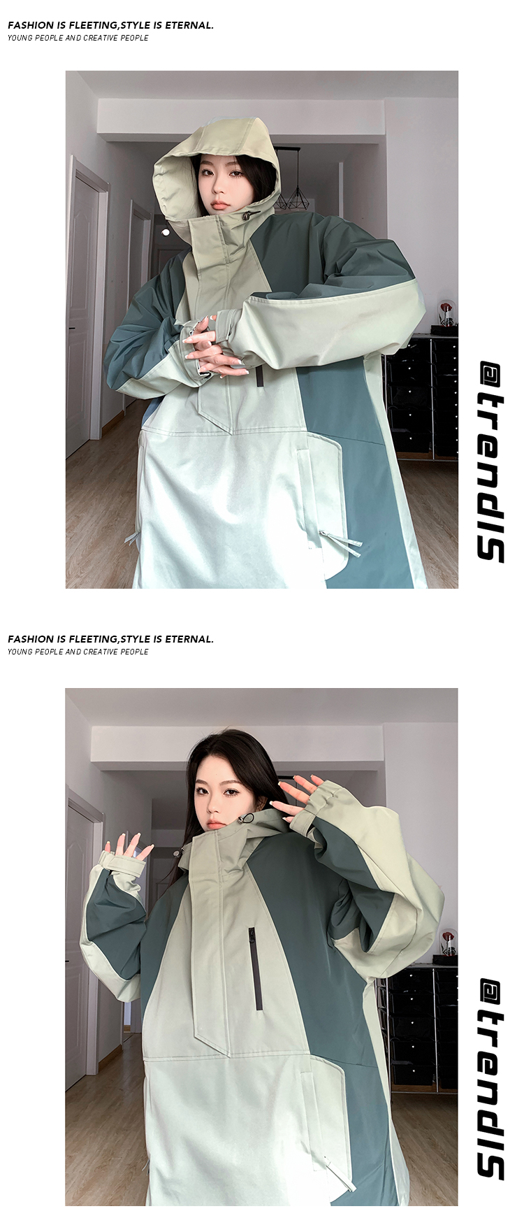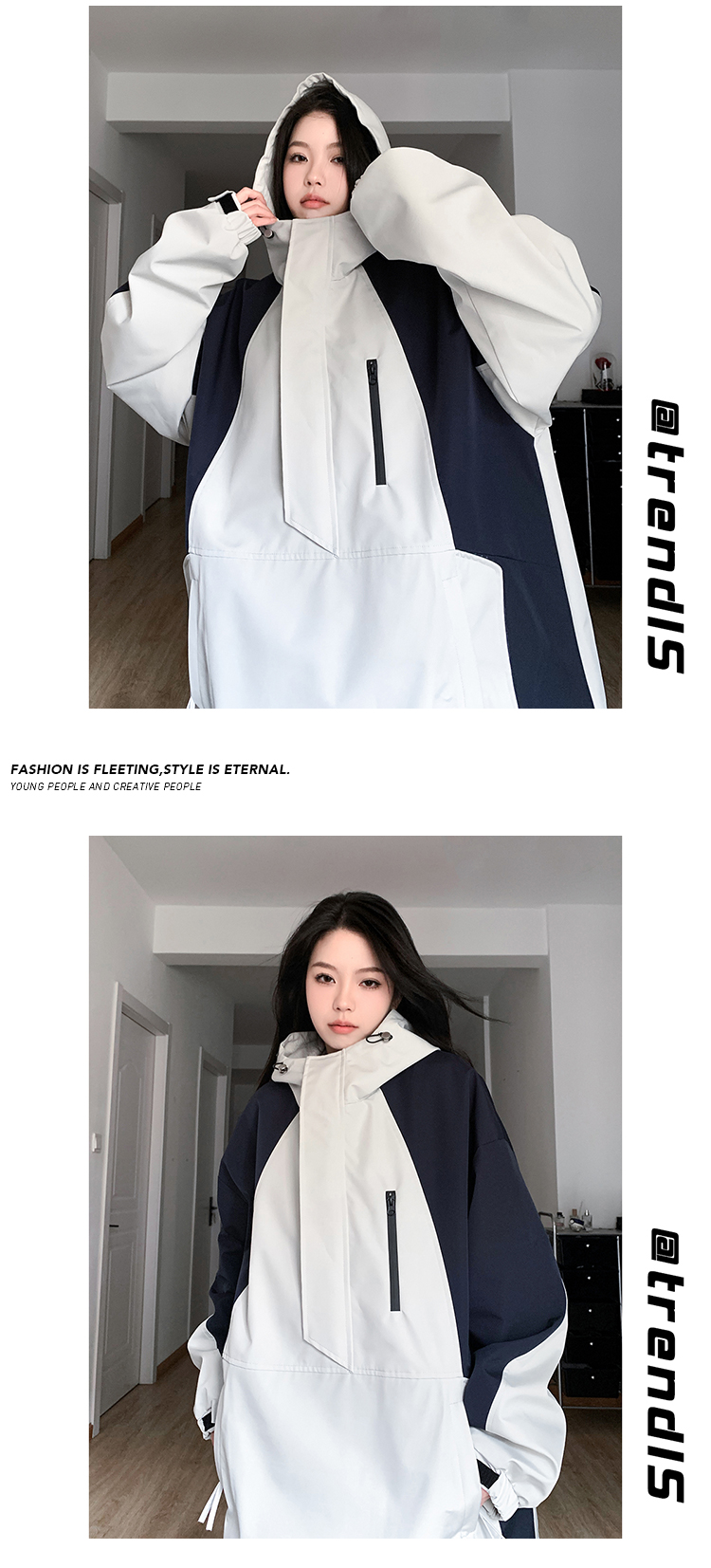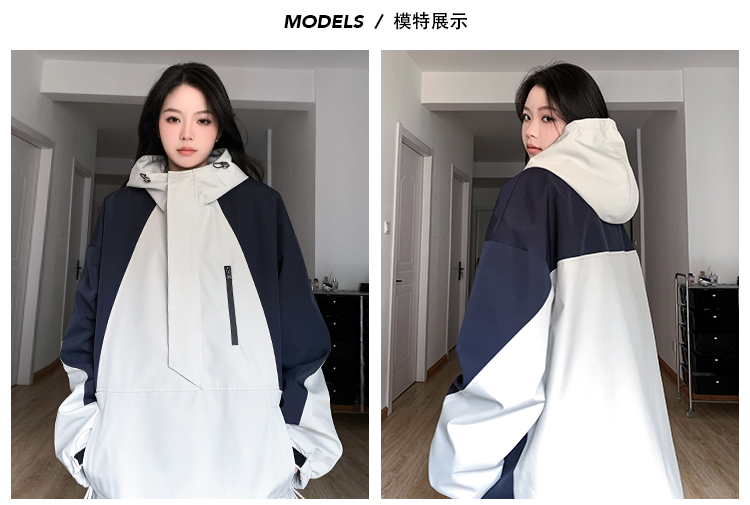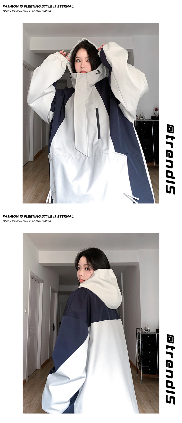 國潮機能風衝鋒衣外套高級感設計感vintage撞色拼接連帽運動衫夾克