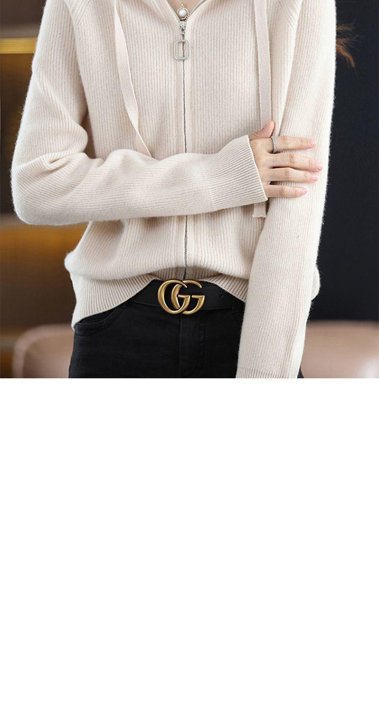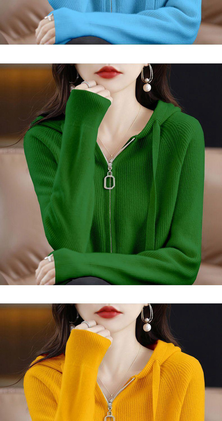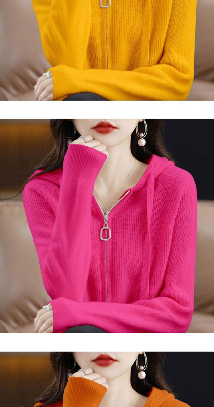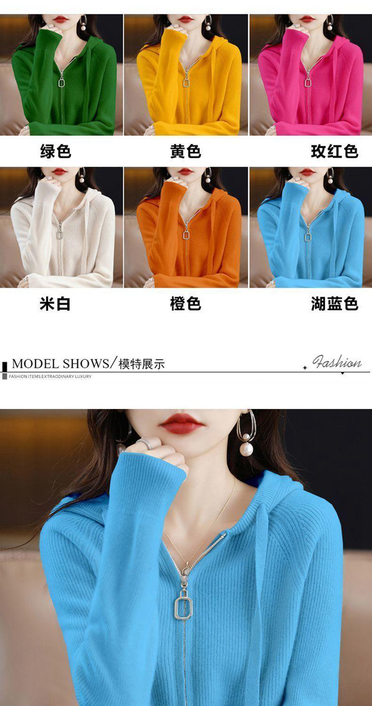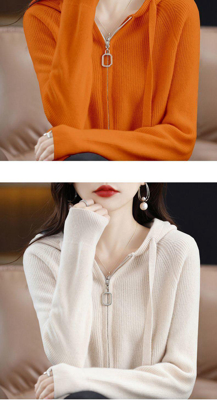2023秋冬新款帽領開衫女拉鍊帽衫寬鬆連帽外搭百搭毛衣女針織衫外