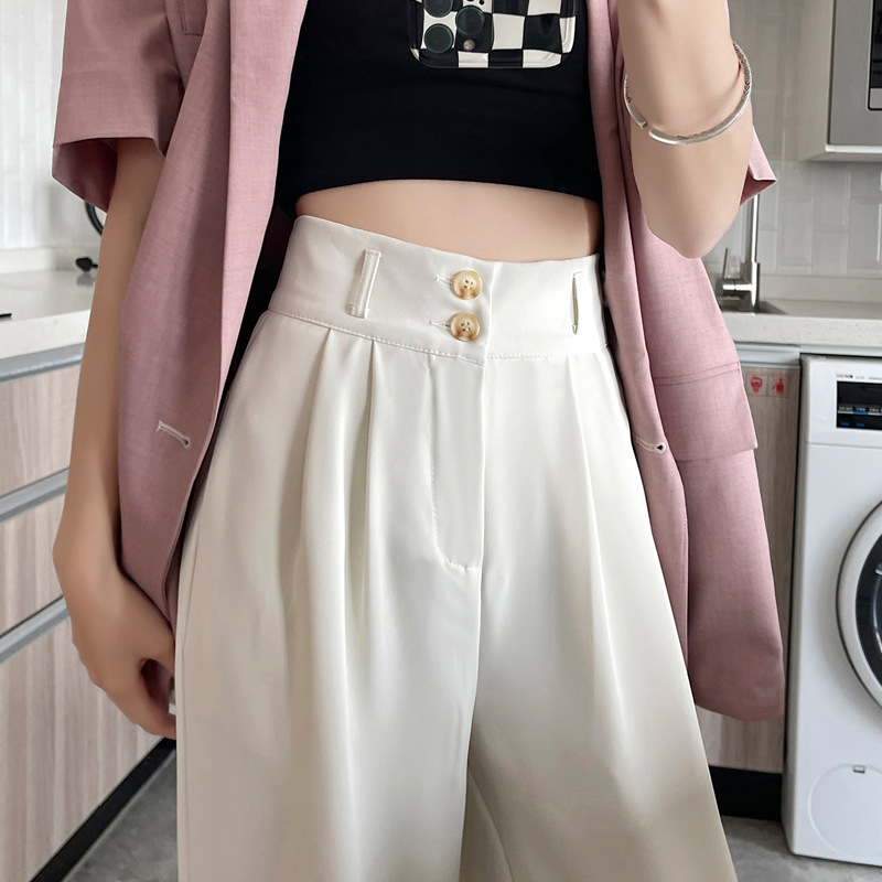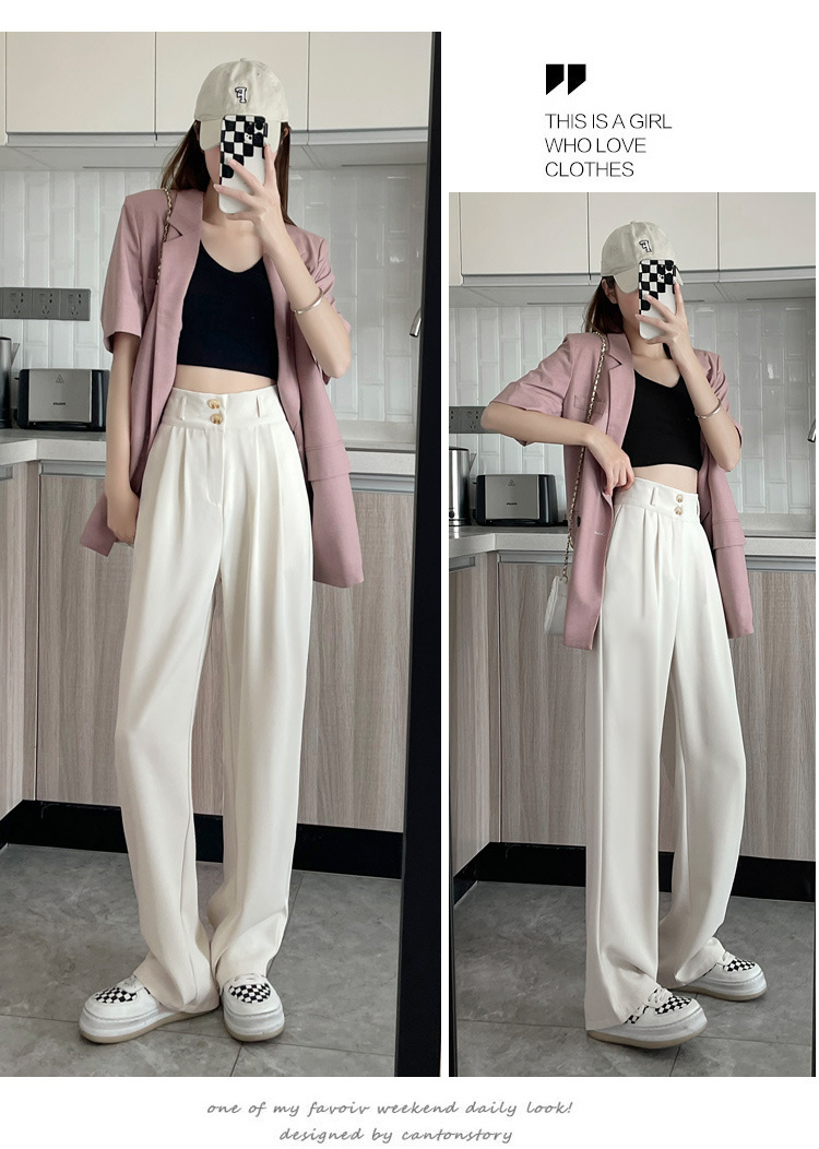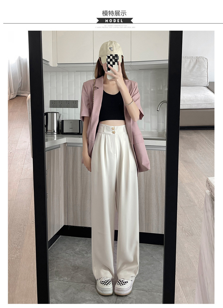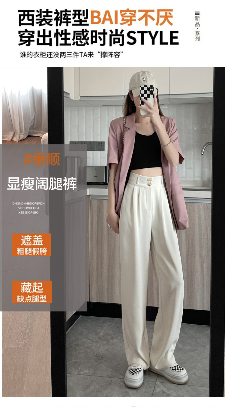阔腿裤女2023春夏新款高腰垂感感显瘦直筒小个子白色西装拖地裤子