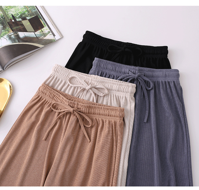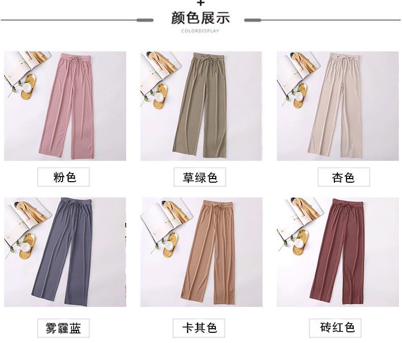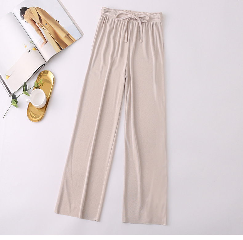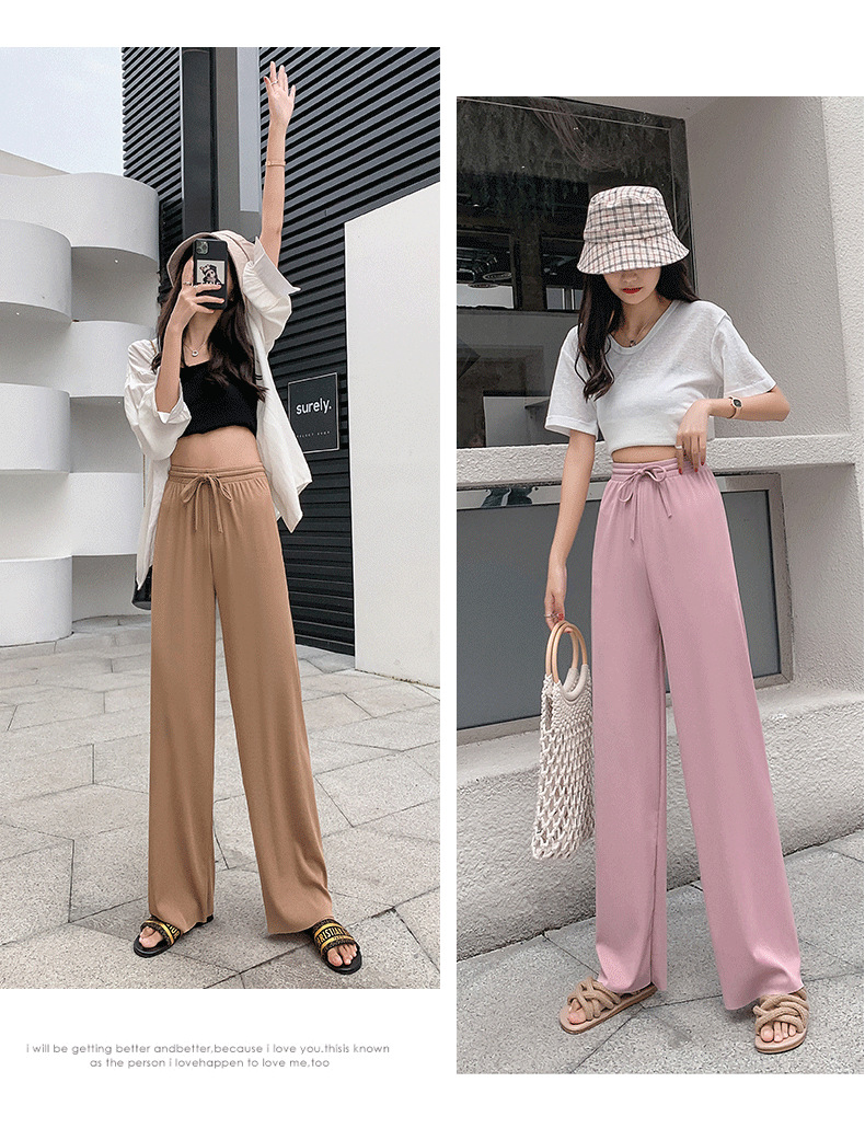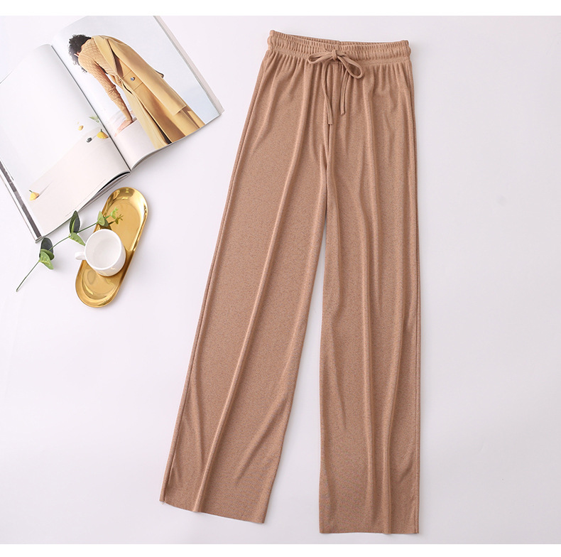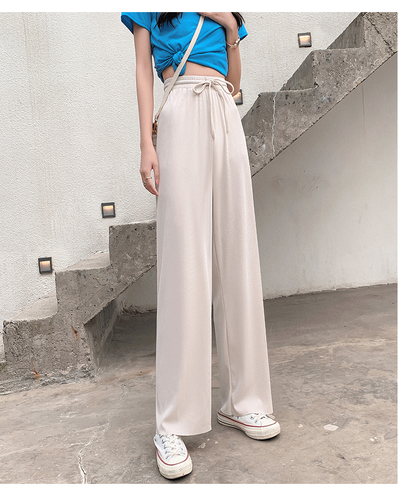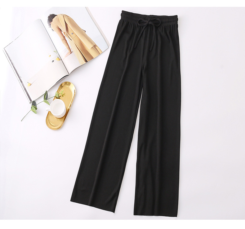 冰丝阔腿裤女夏2023新款高腰垂感宽松直筒薄款休闲显瘦坠针织裤子