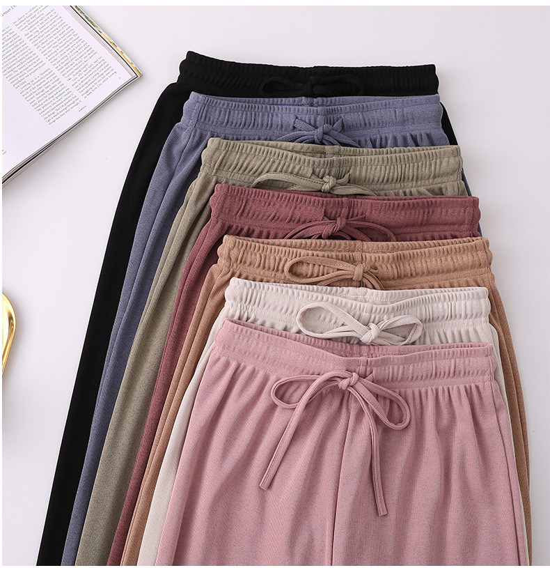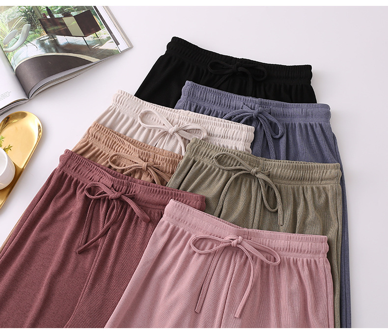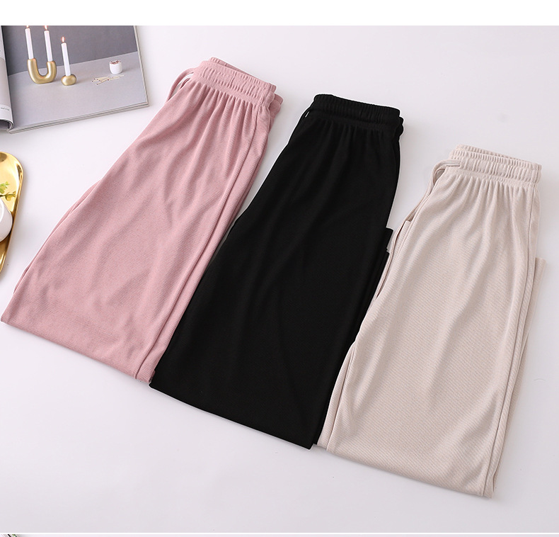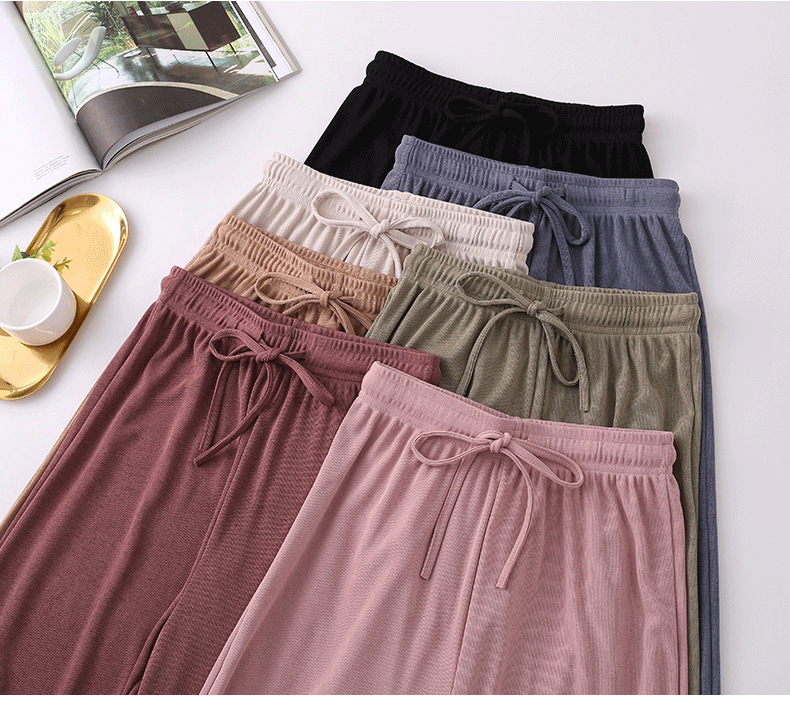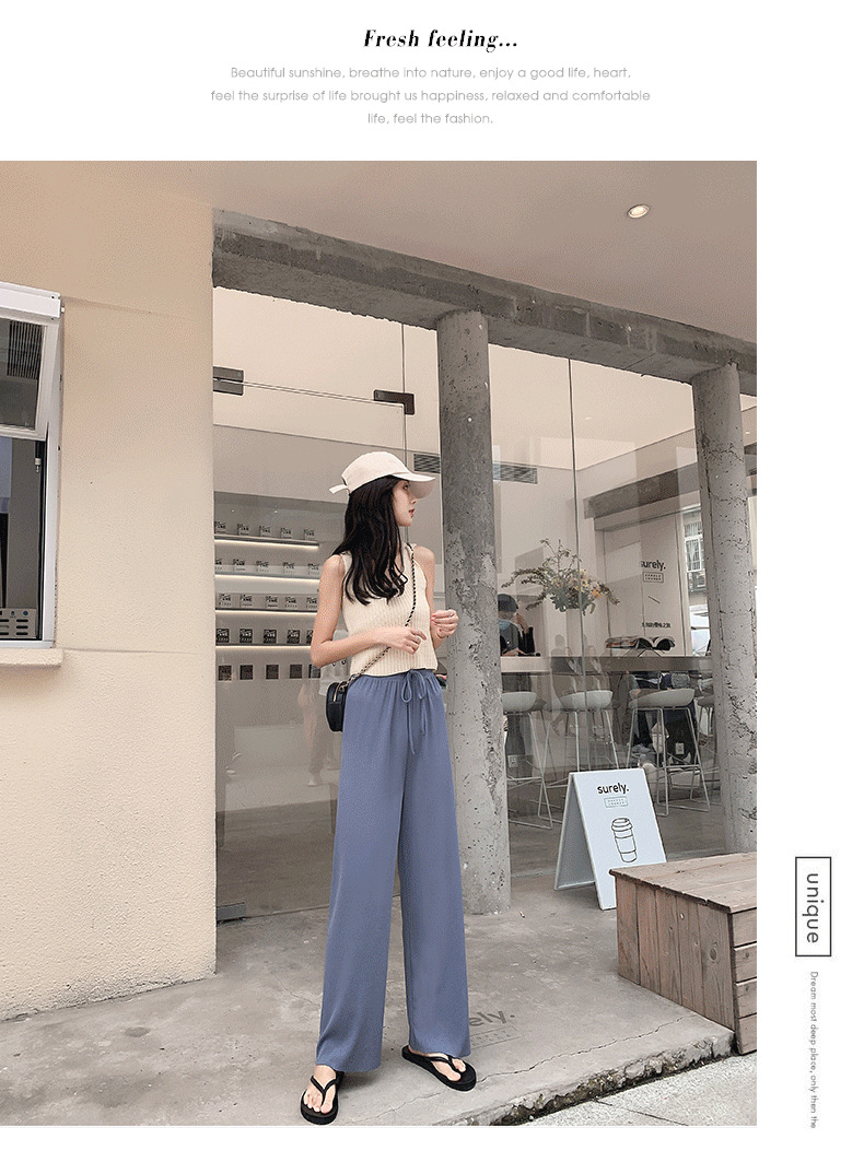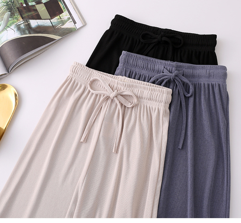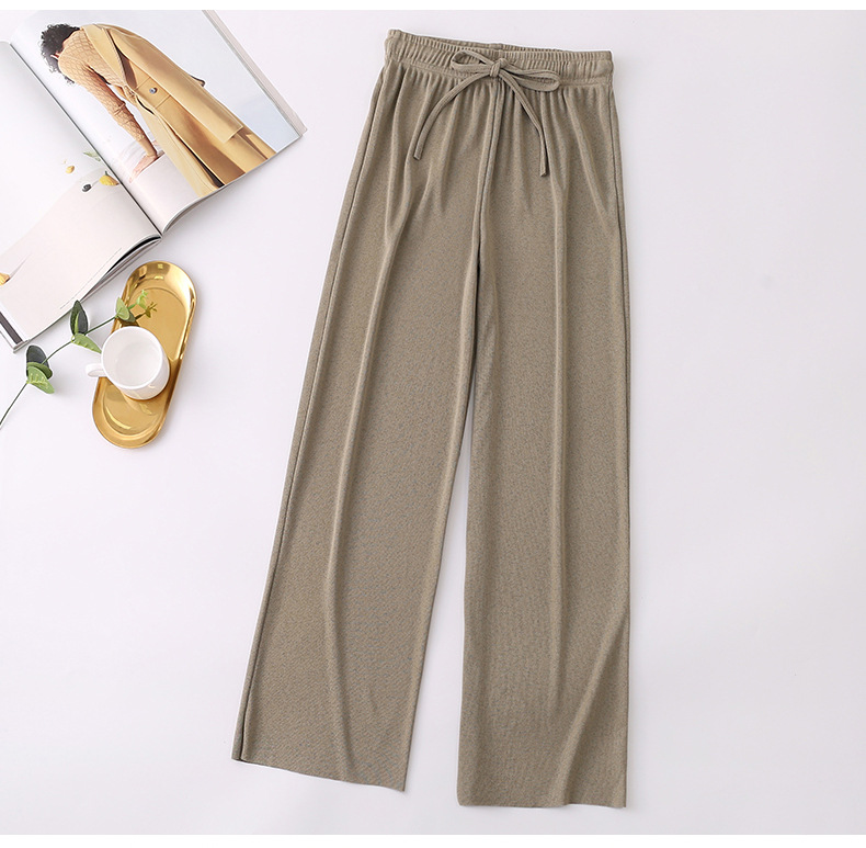 冰丝阔腿裤女夏2023新款高腰垂感宽松直筒薄款休闲显瘦坠针织裤子
