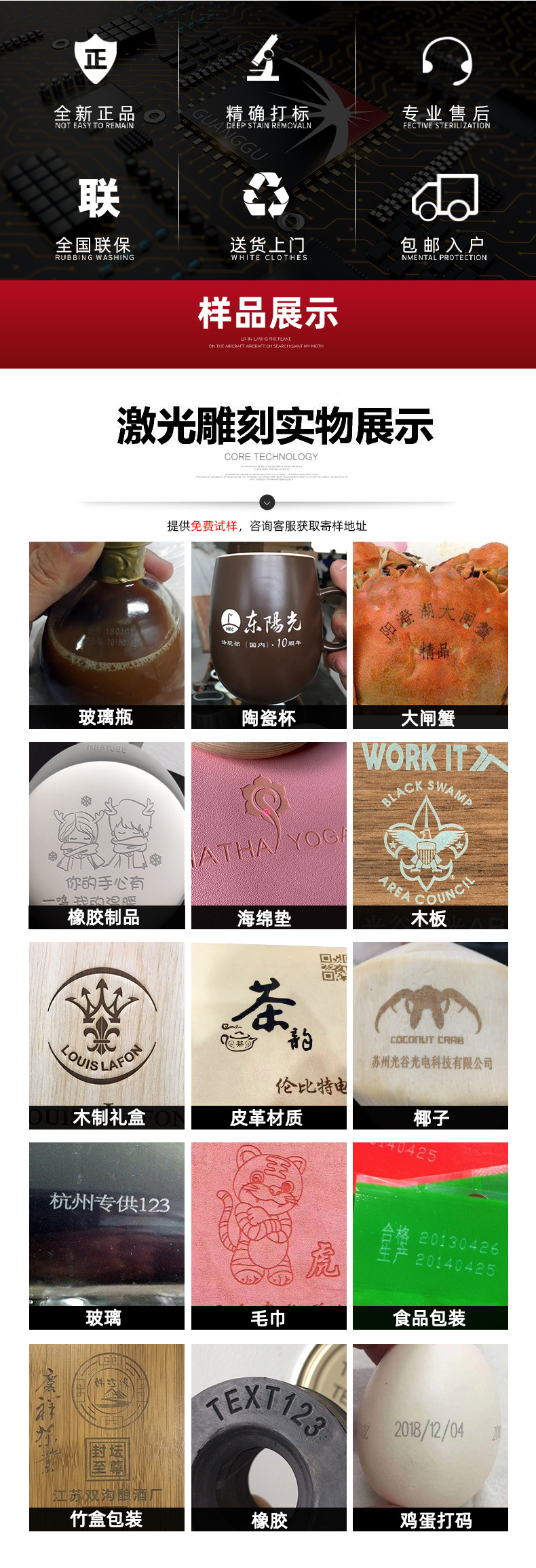 二氧化碳激光打标机大型co2雕刻木头陶瓷亚克力皮革玻璃打码