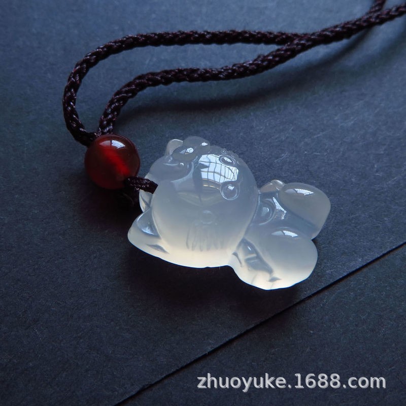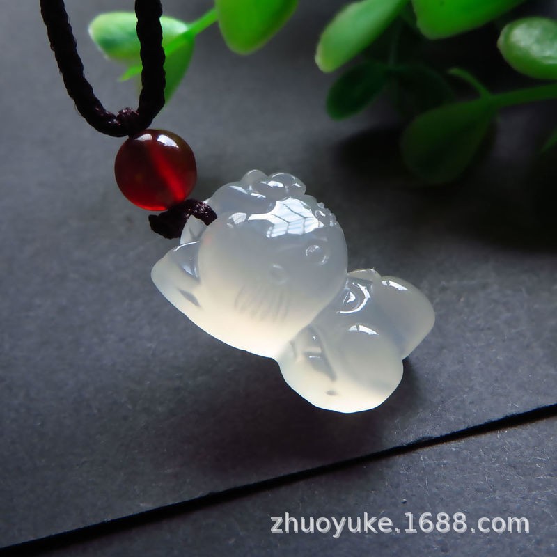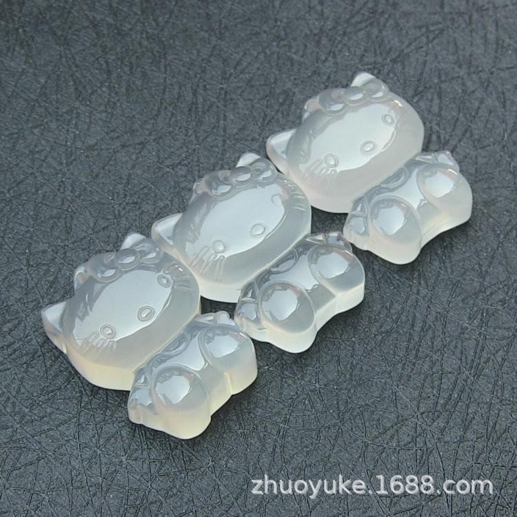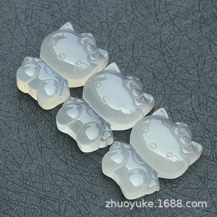 直播供应天然白玉髓机器猫KT猫吊坠 冰白玉髓小猫咪玉石玉器批发