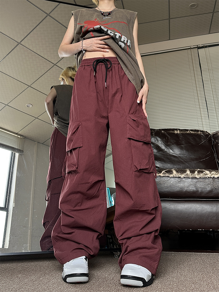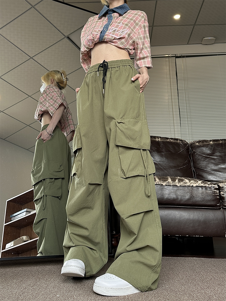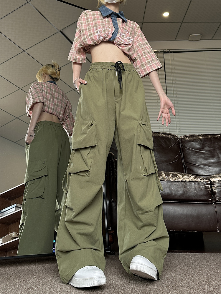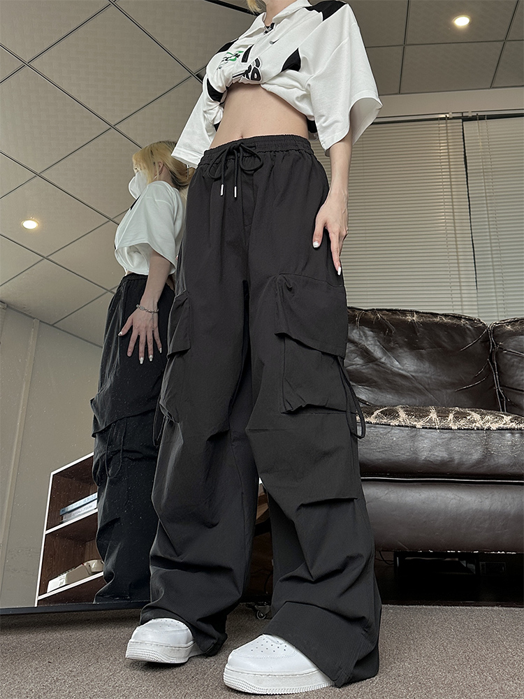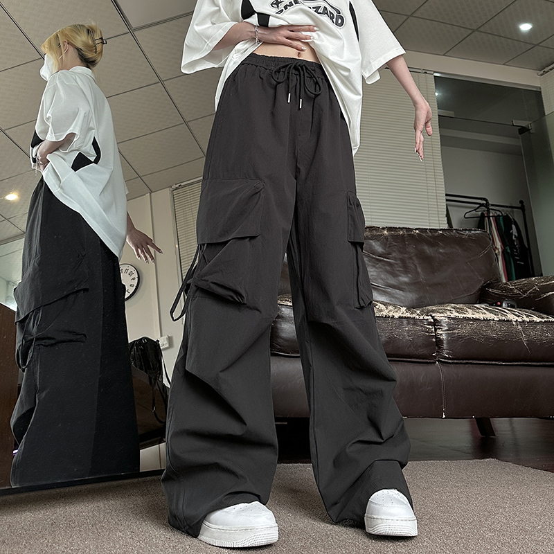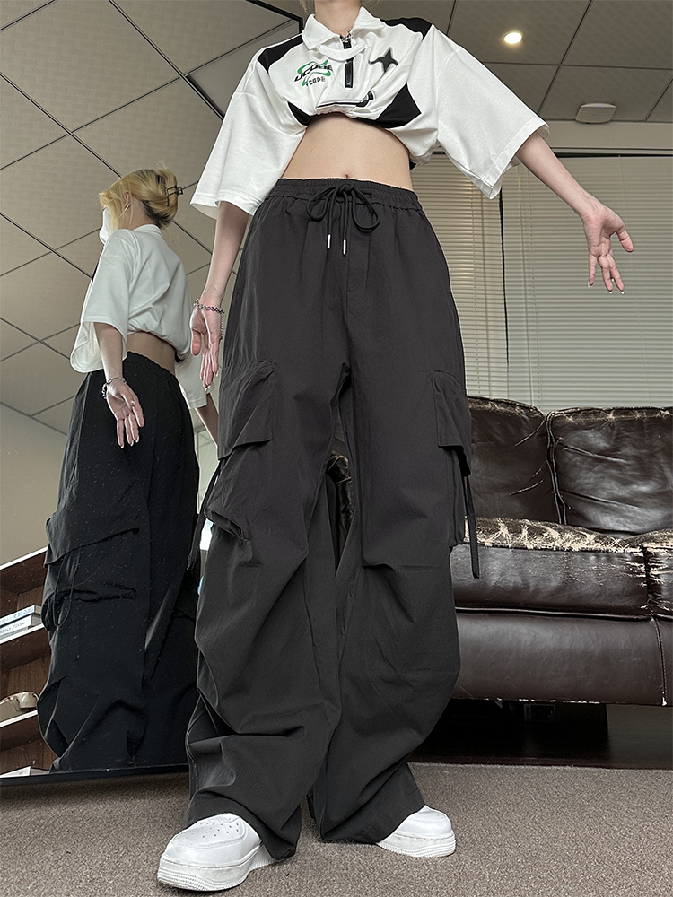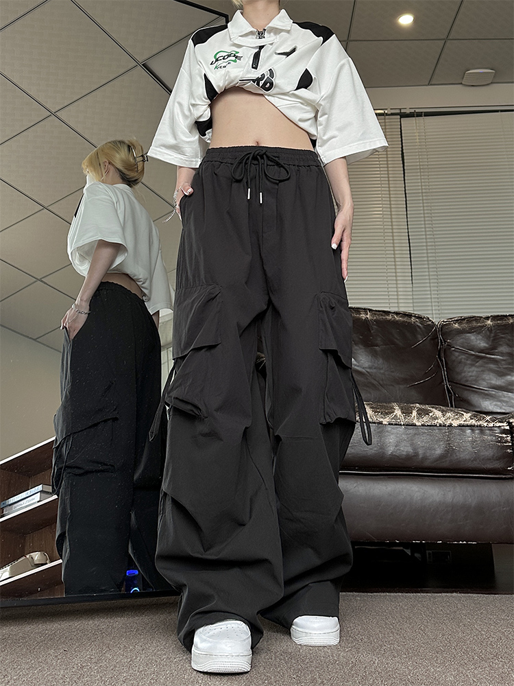 NE21OUS秋季闊腿褲子女2023新款美式復古寬鬆米白色工裝褲女夏天