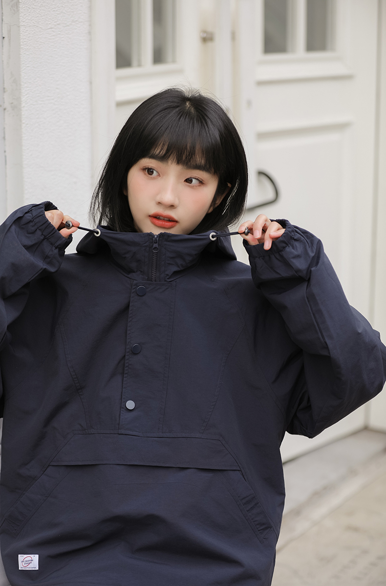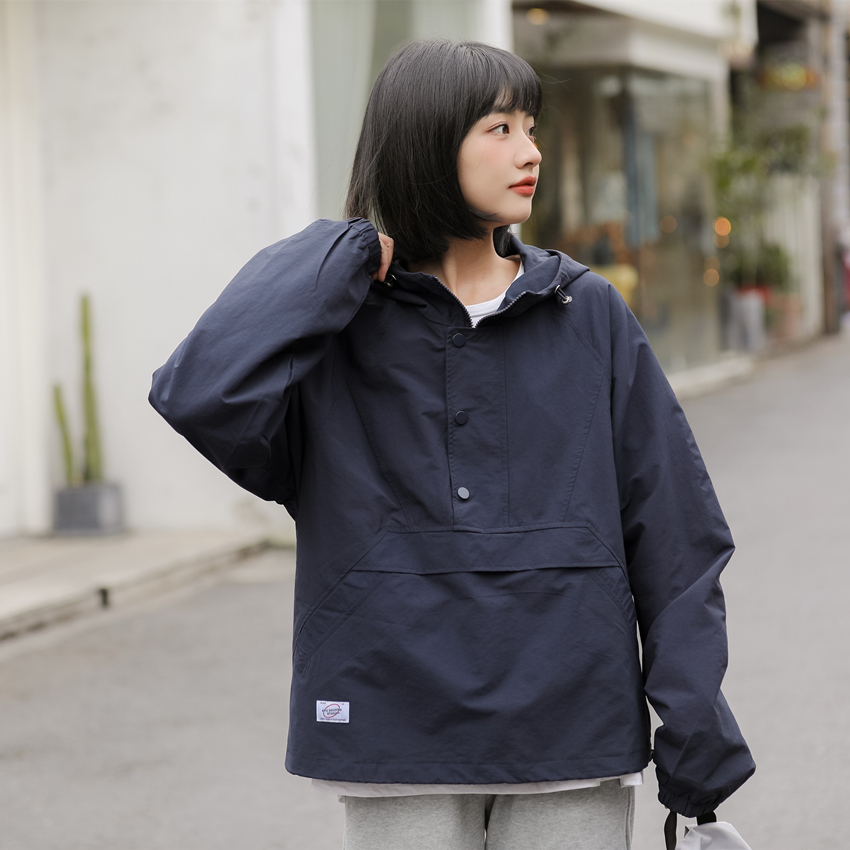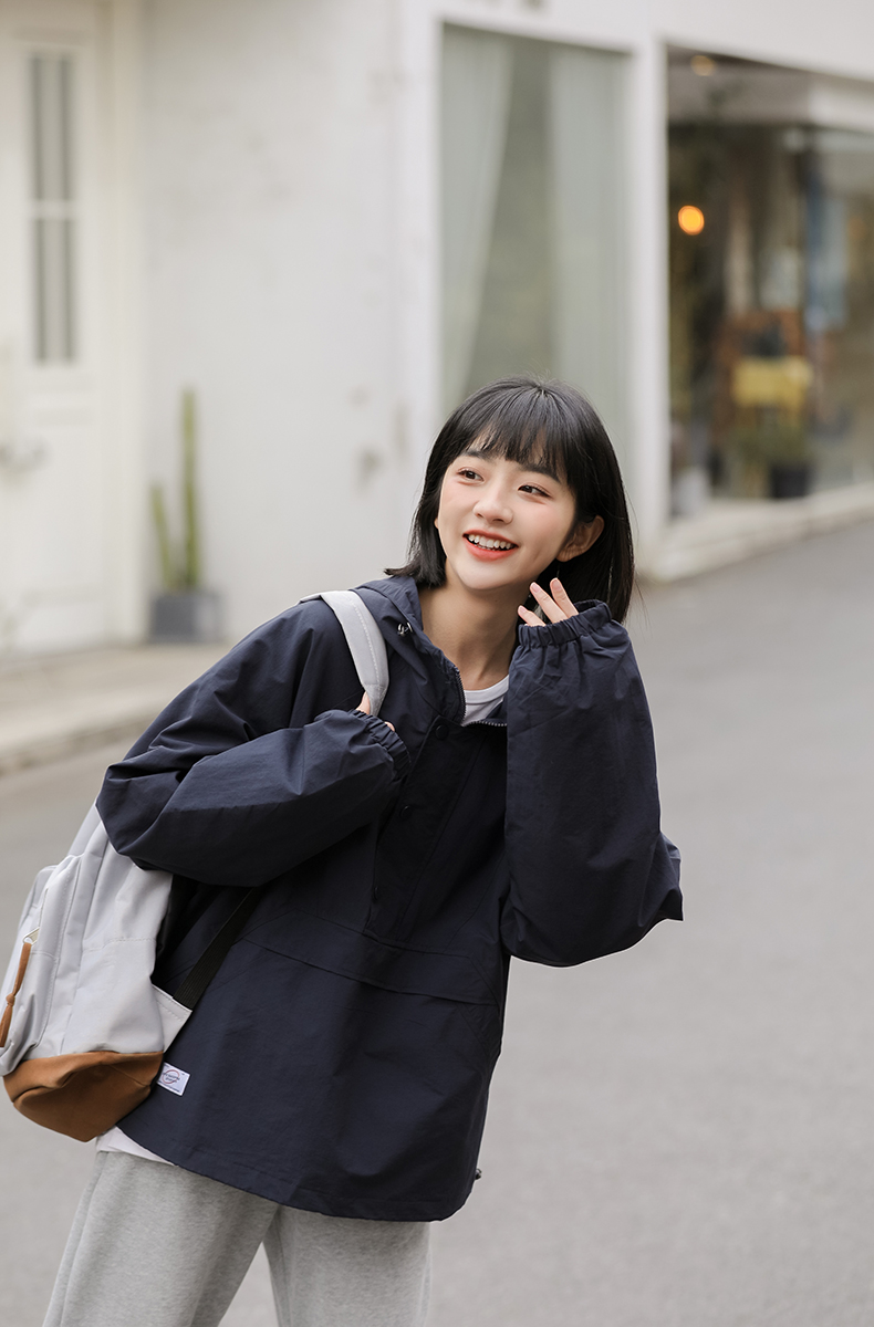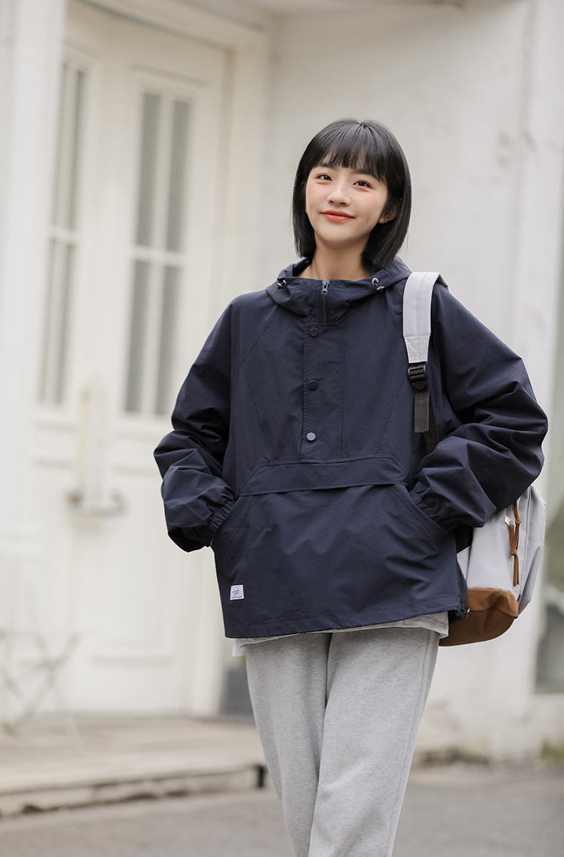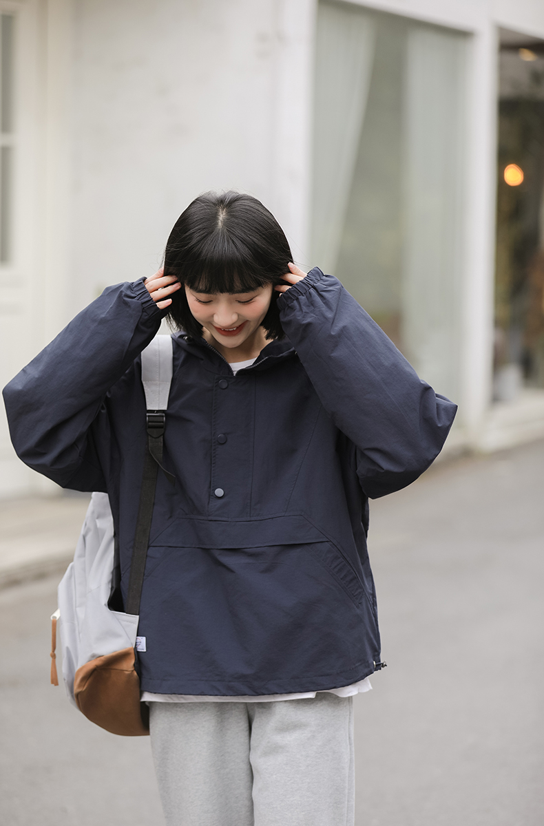 秋季新款寬鬆套頭連帽衝鋒衣外套女百搭潮流BF慵懶風長袖厚棉T上衣