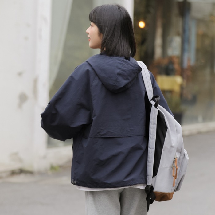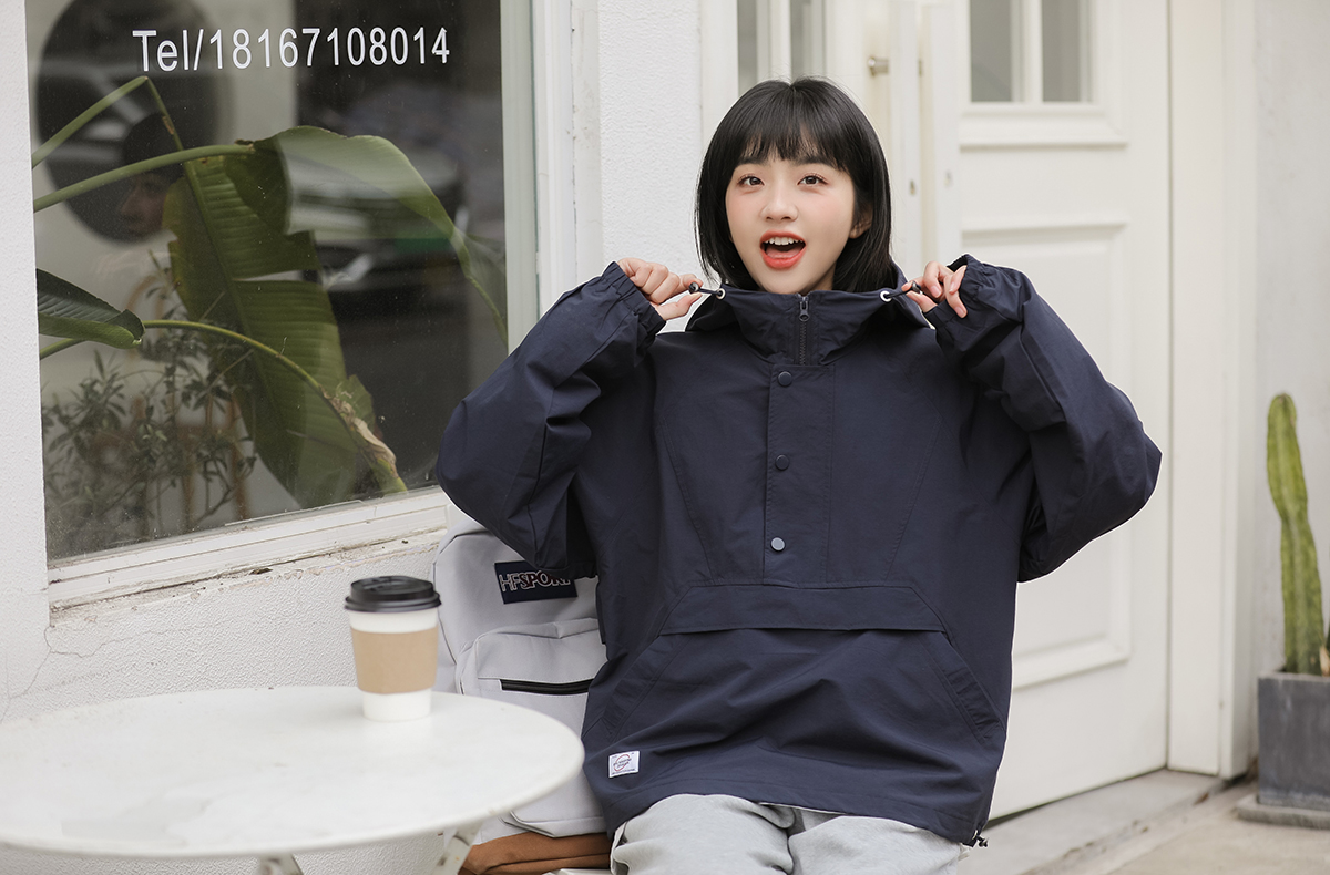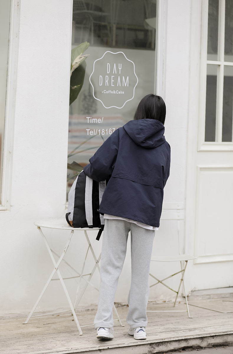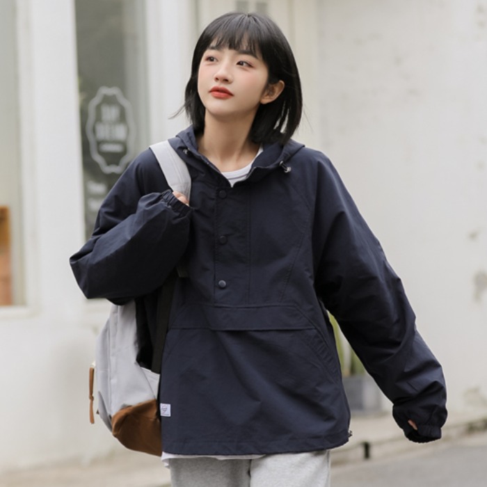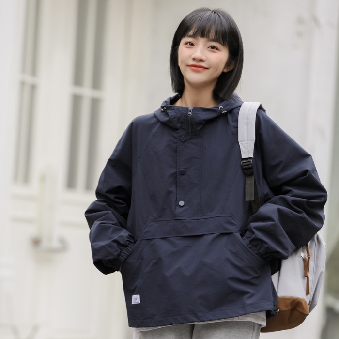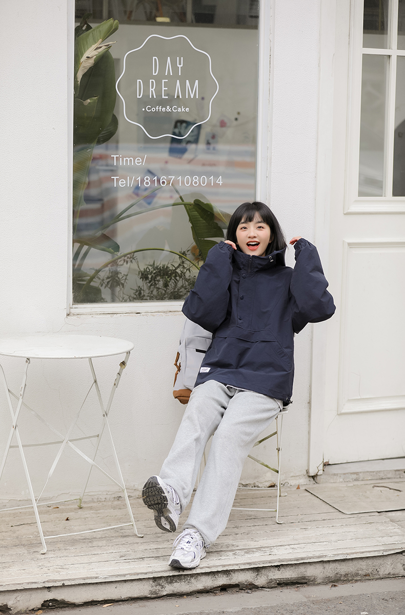 秋季新款寬鬆套頭連帽衝鋒衣外套女百搭潮流BF慵懶風長袖厚棉T上衣