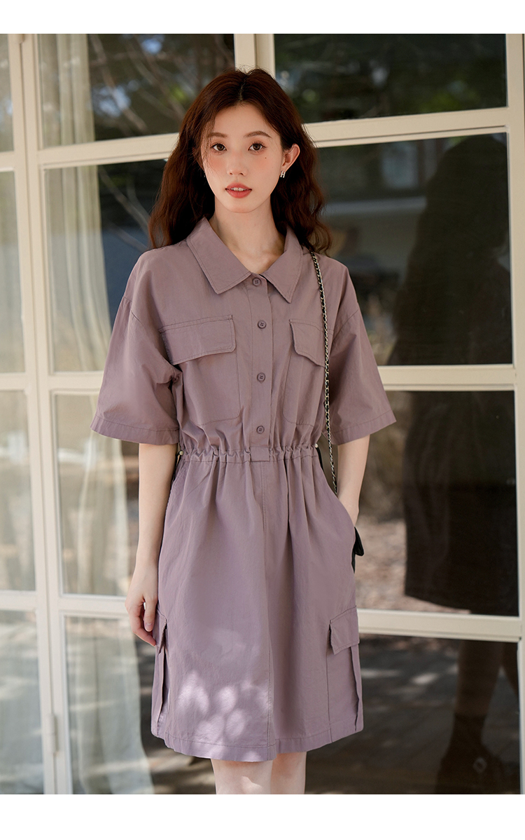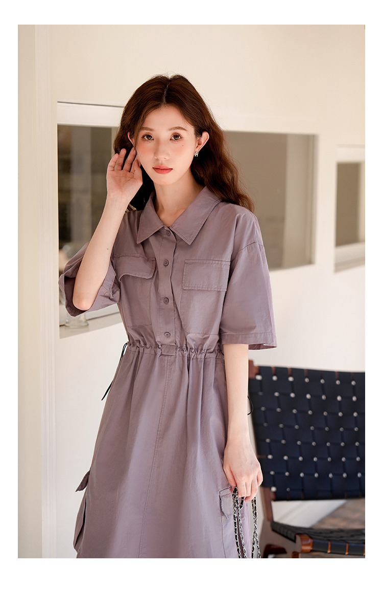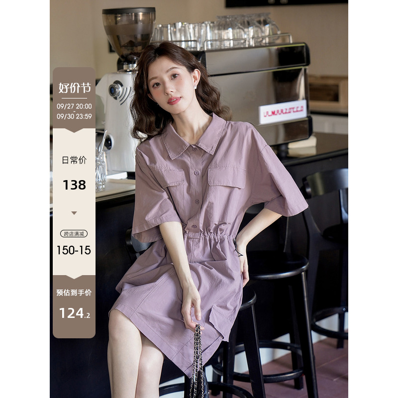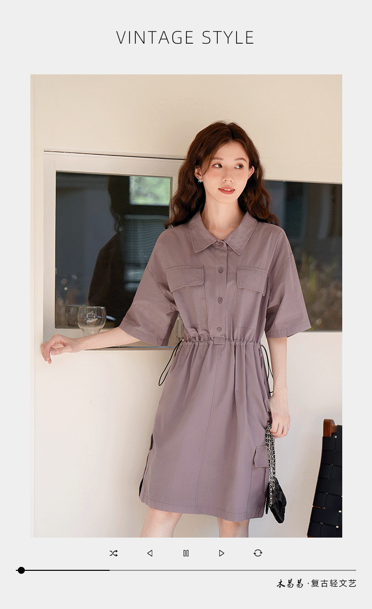 木易易 休閒洋裝女夏季2023新款氣質收腰顯瘦襯衫式工裝風裙子
