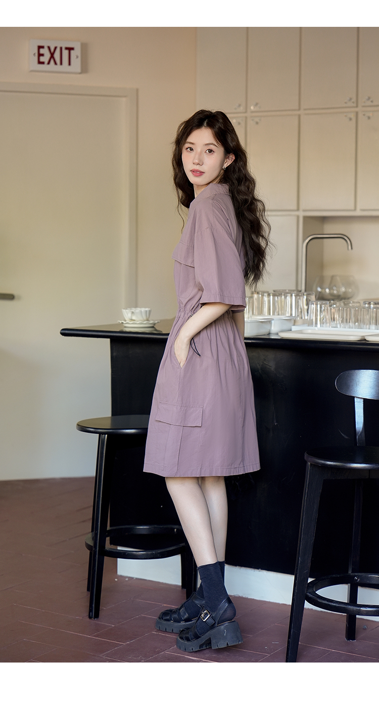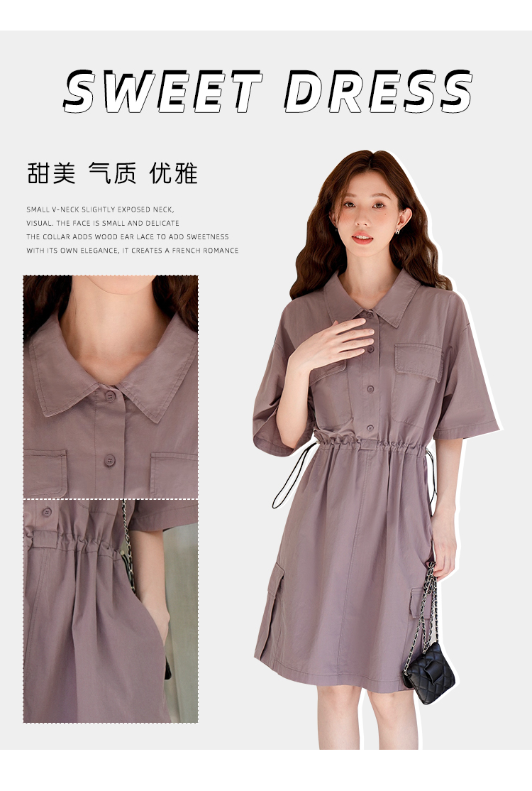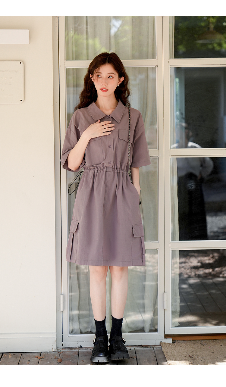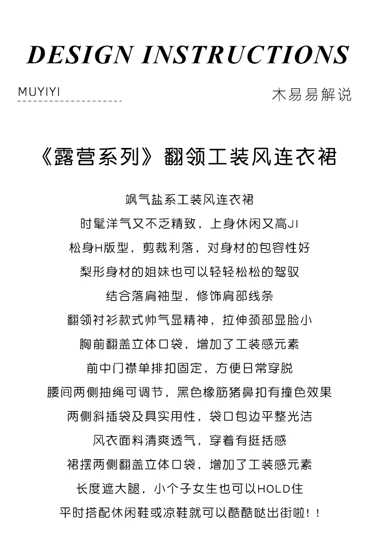 木易易 休閒洋裝女夏季2023新款氣質收腰顯瘦襯衫式工裝風裙子