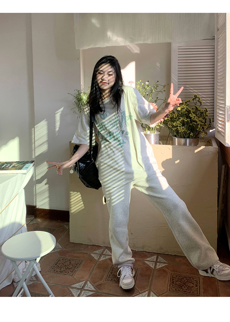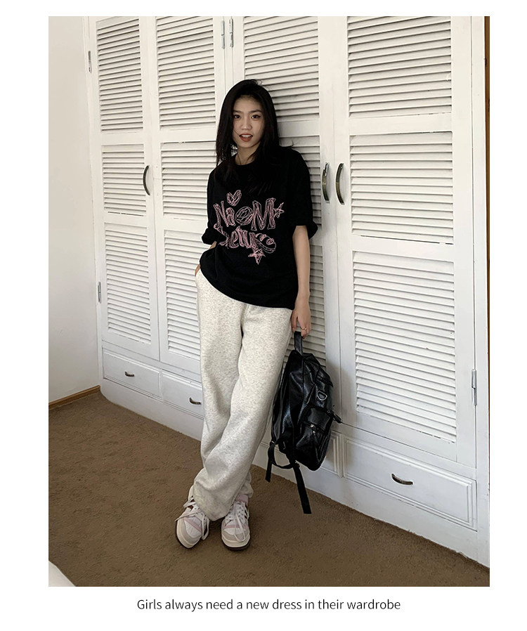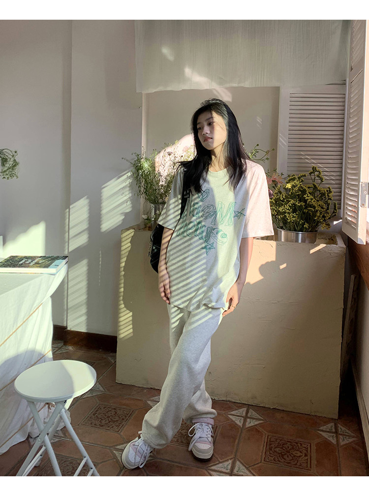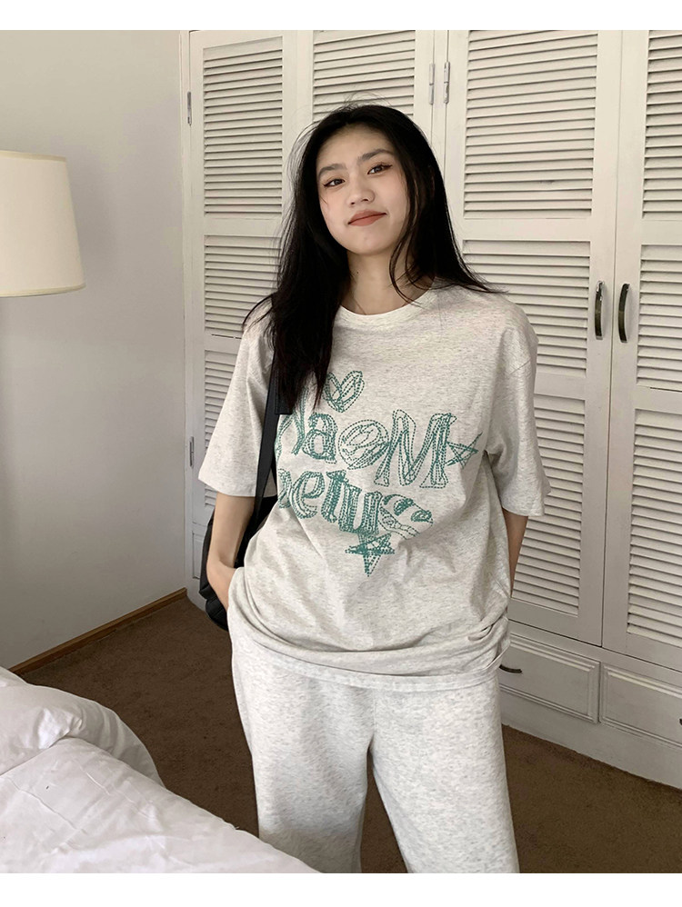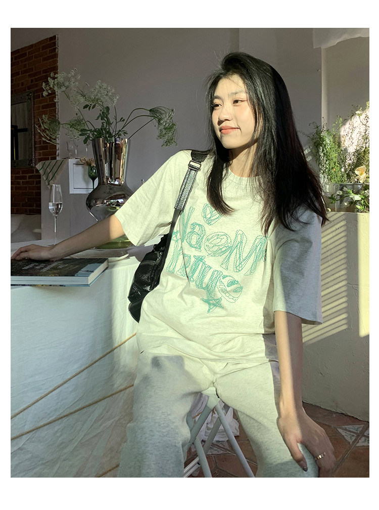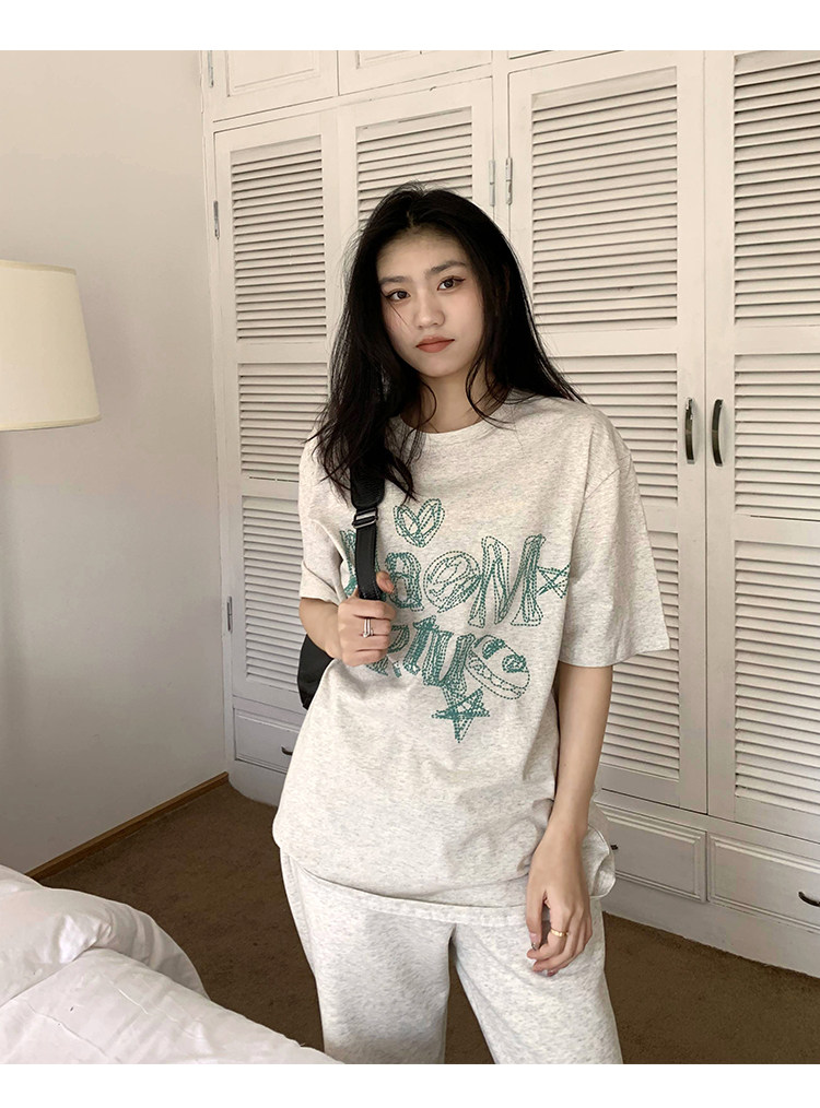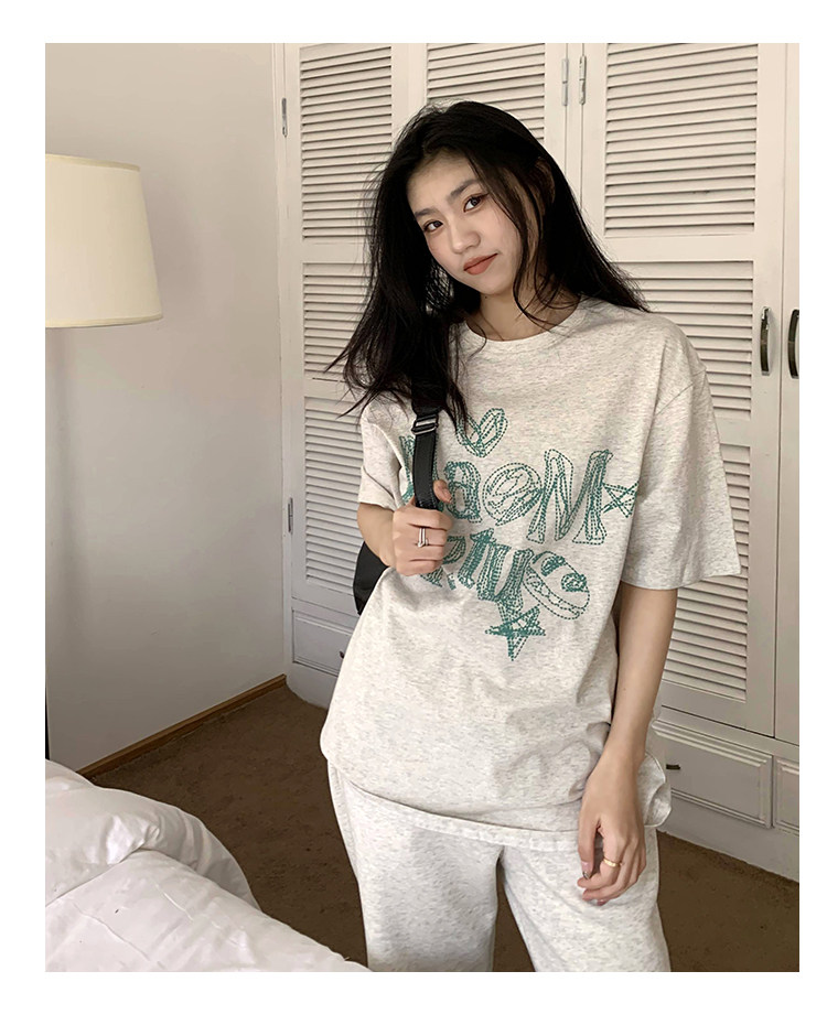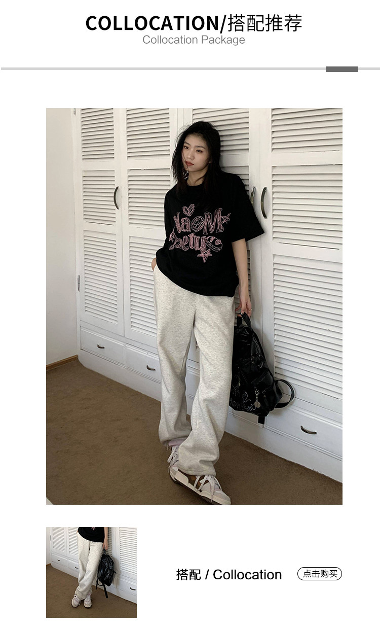 橘子樹在哪兒字母印花圓領短袖T恤女夏休閒寬鬆甜酷黑色半袖T恤