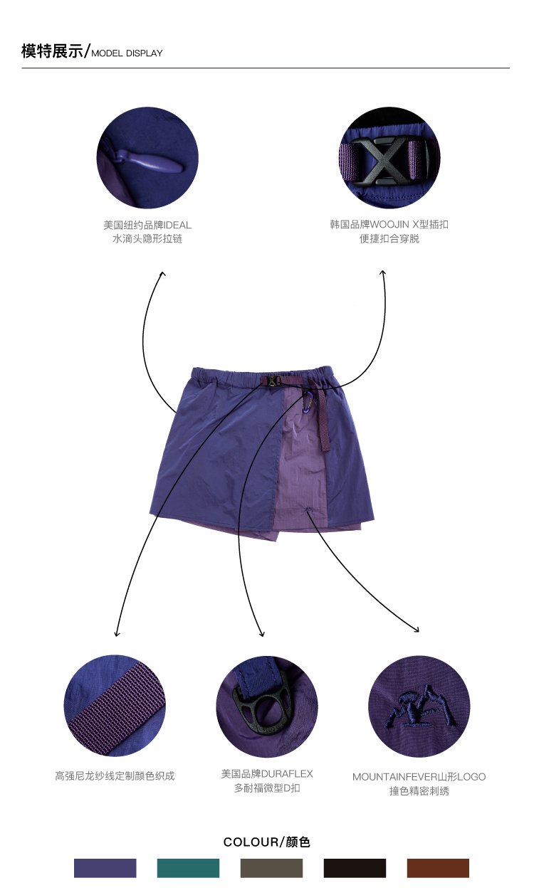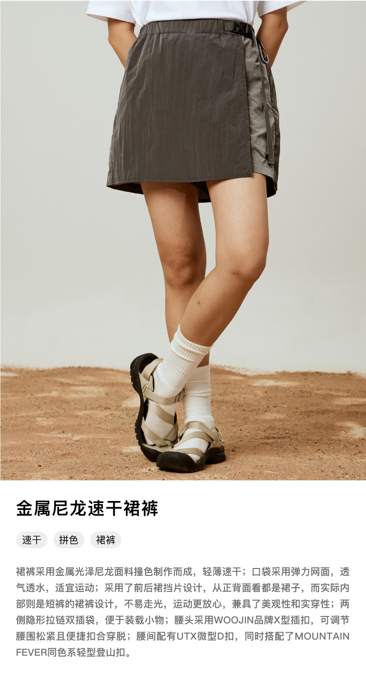 MOUNTAINFEVER SS22 山系戶外露營金屬尼龍拼色速乾裙褲