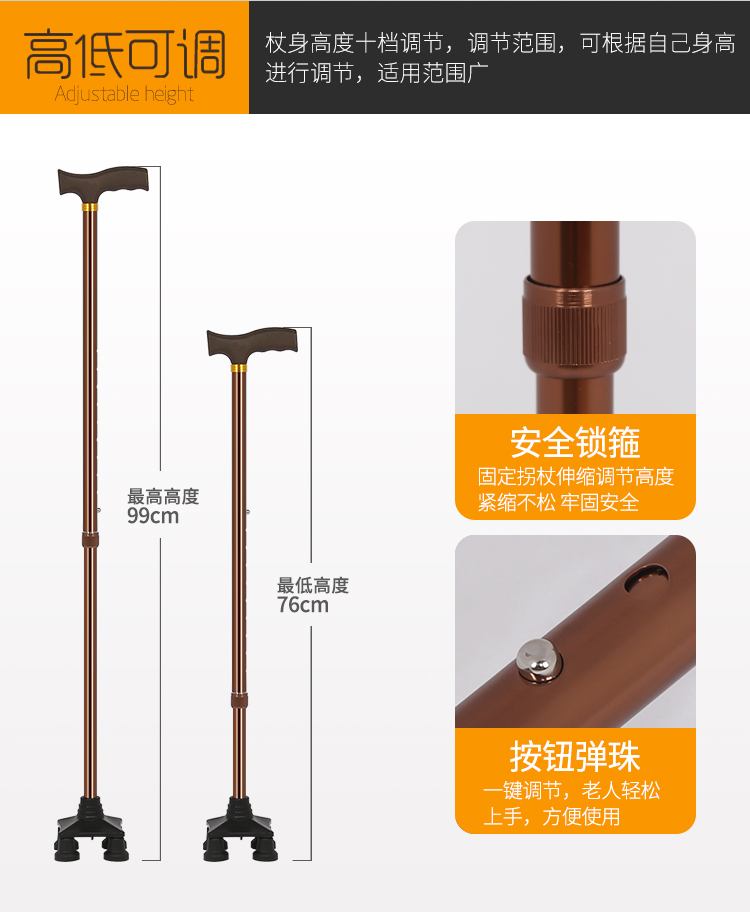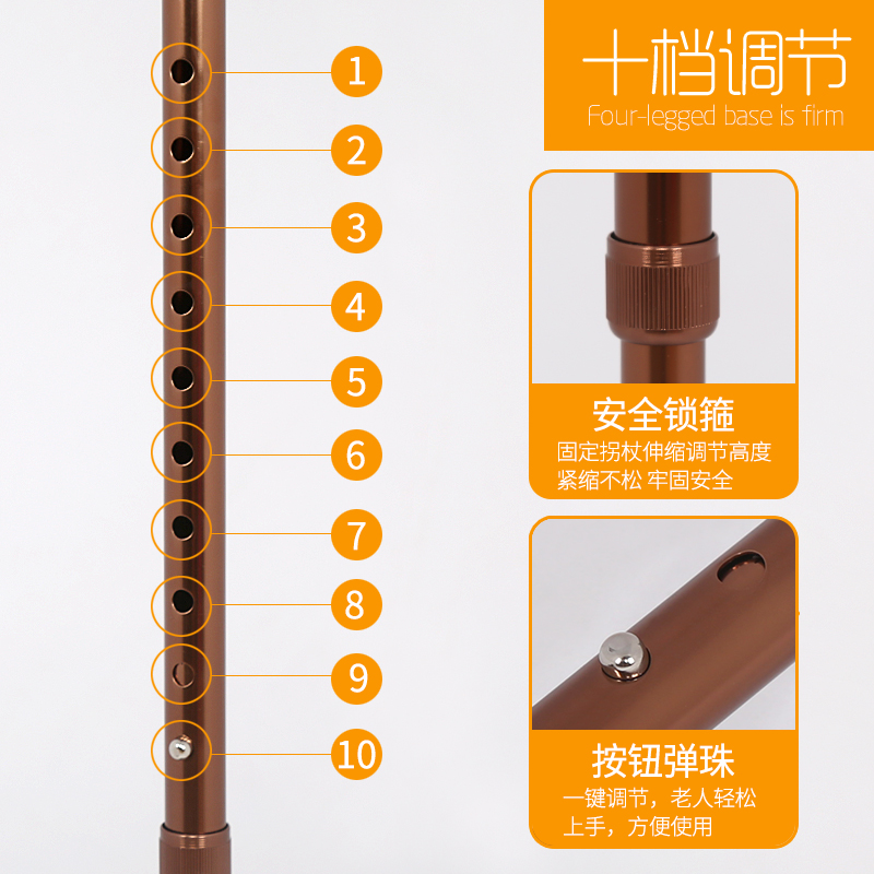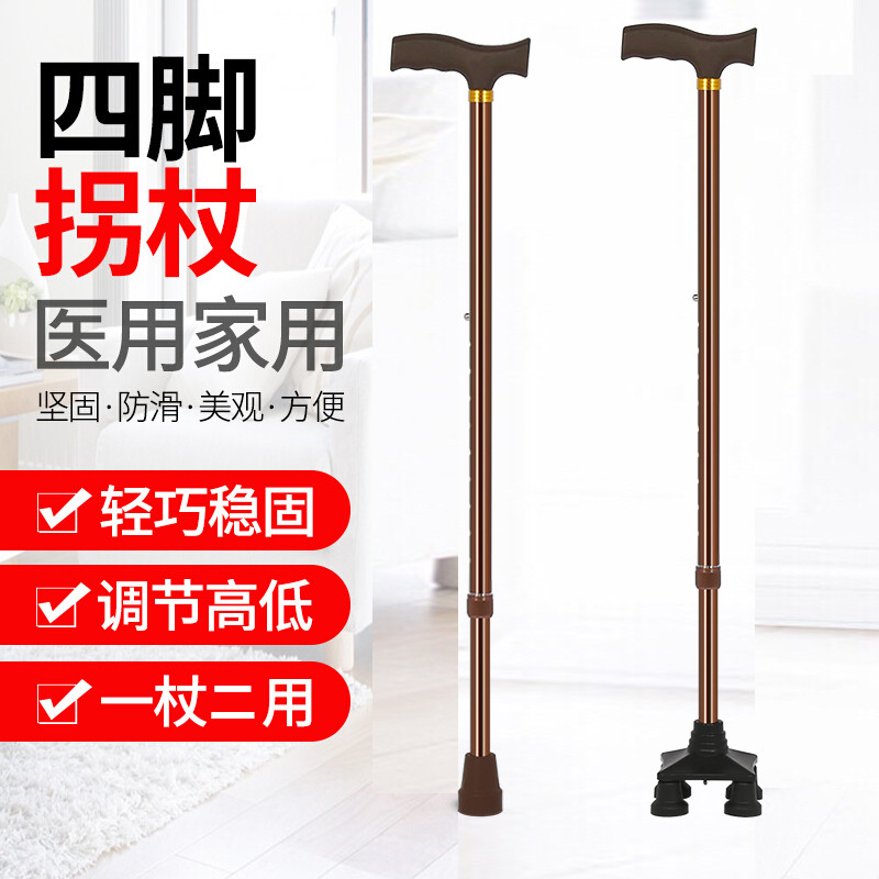 老年人四腳柺杖防滑柺棍拐扙老人用的可調節高度輕便小四腳手杖