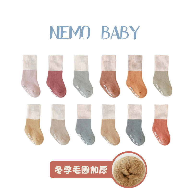 21年新款秋冬毛圈加厚宝宝袜子新生婴儿防滑学步地板袜儿童中筒袜