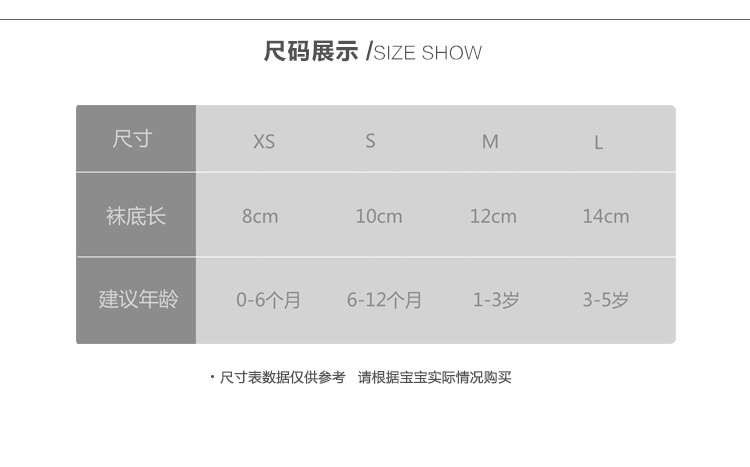 童袜尺码 XS码0-6个月,S码6-12个月,M码1-3岁,L码3-5岁
