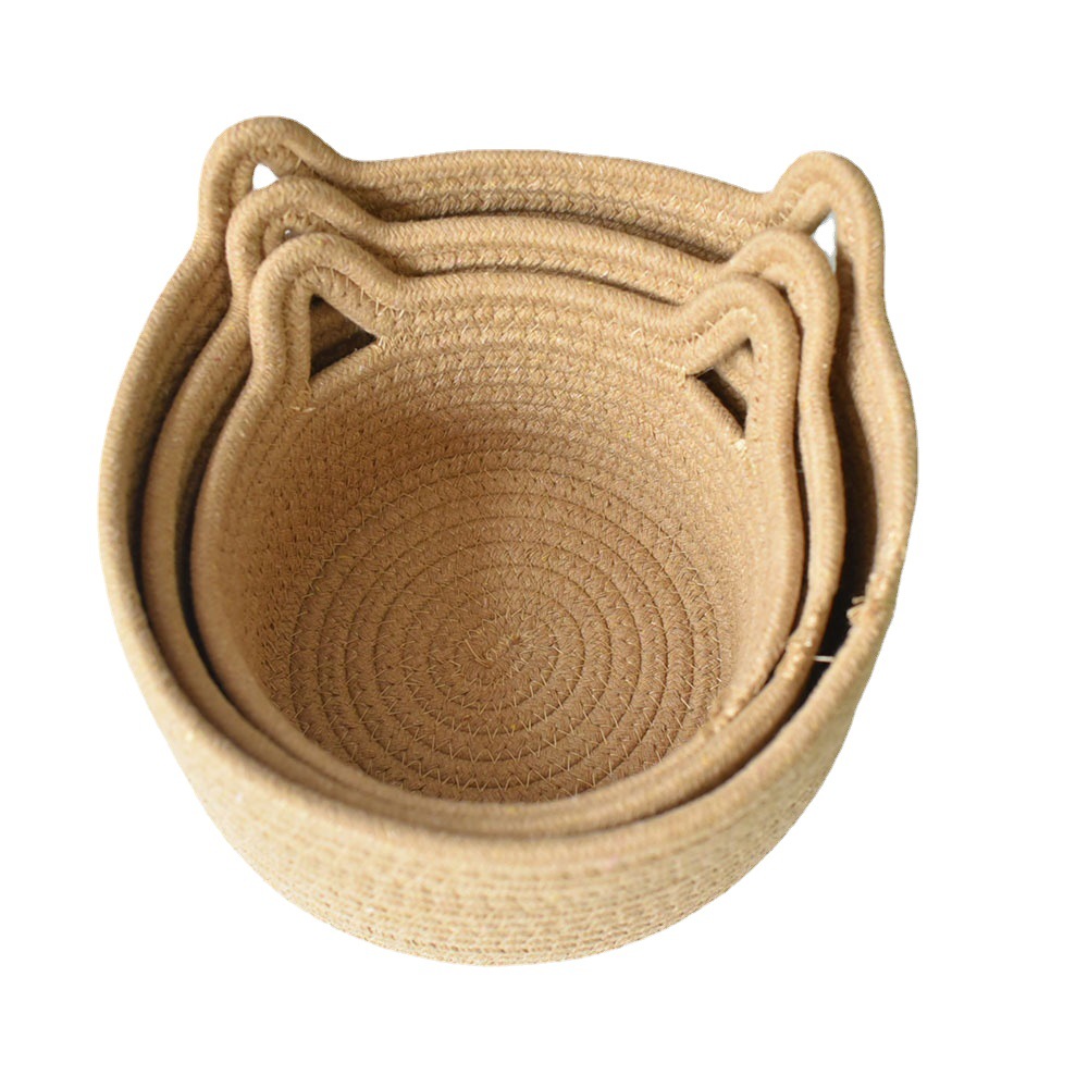 2023跨境新款手工编织收纳筐现代简约钥匙整理筐猫耳桌面置物筐