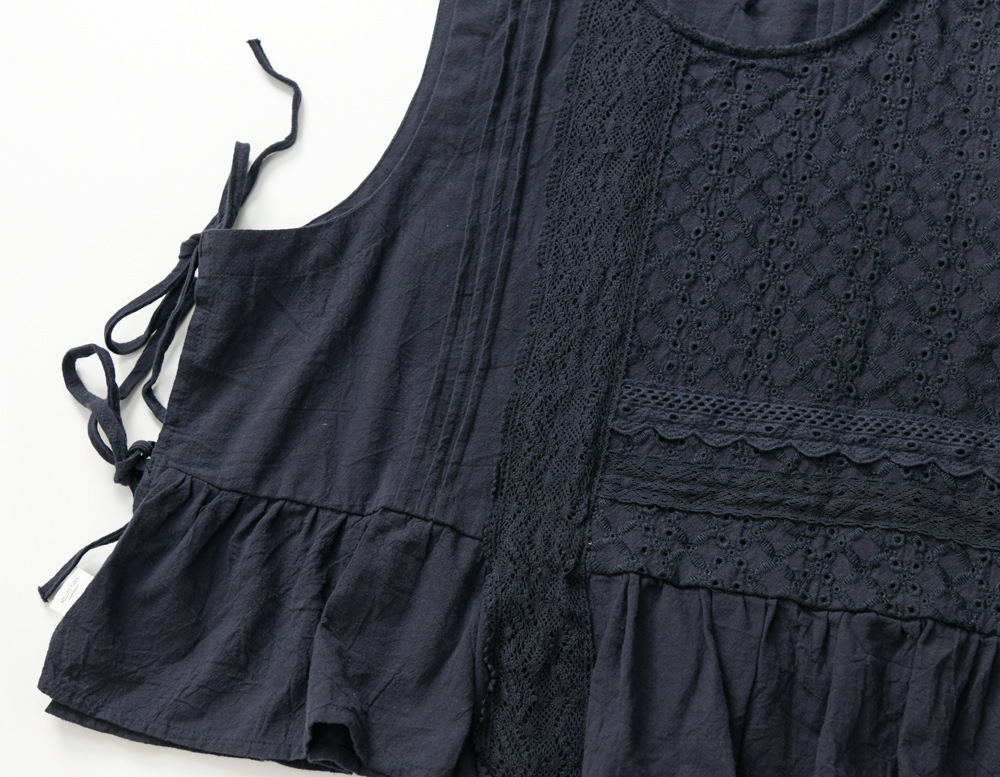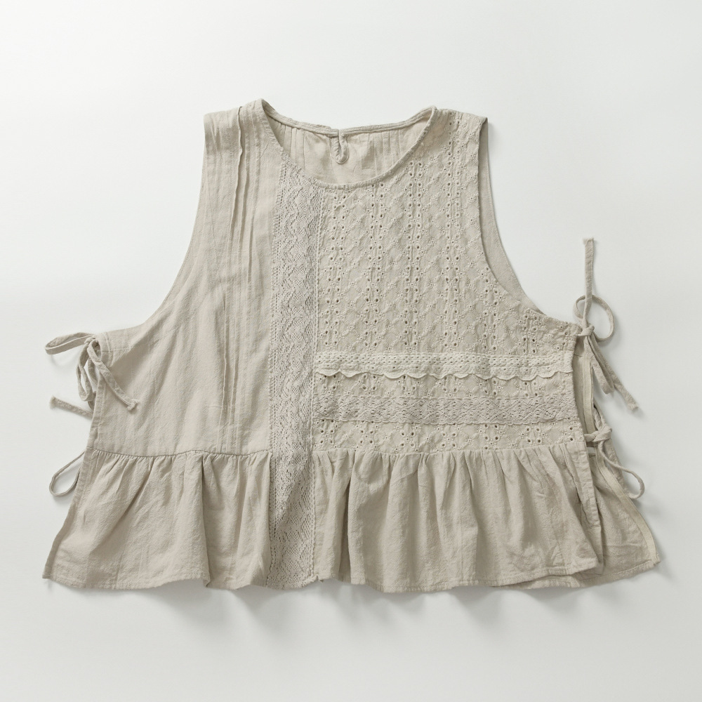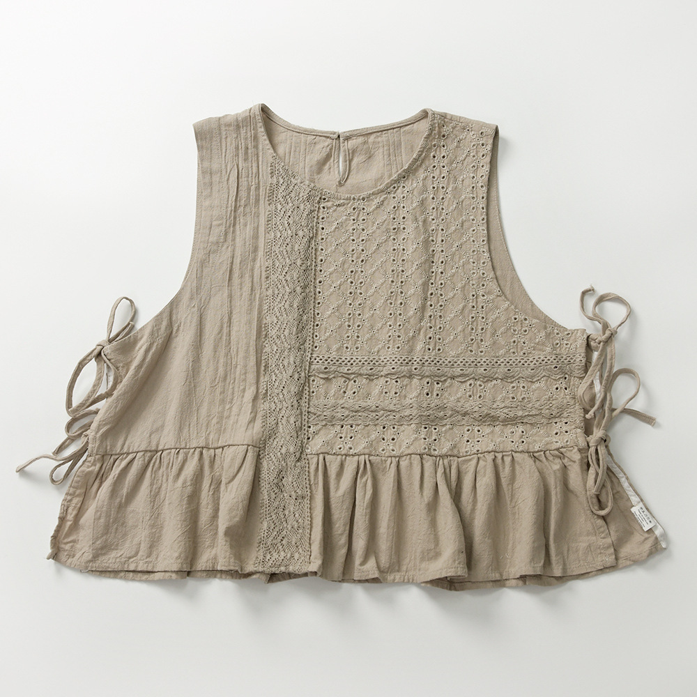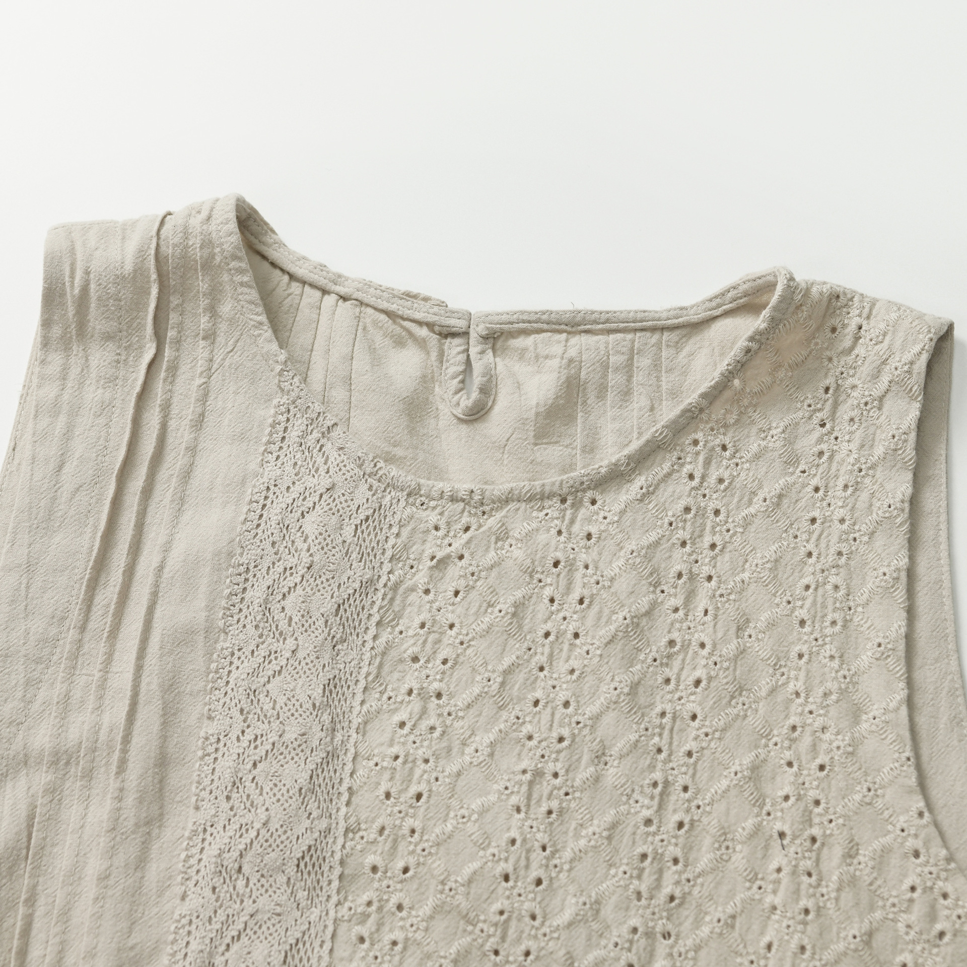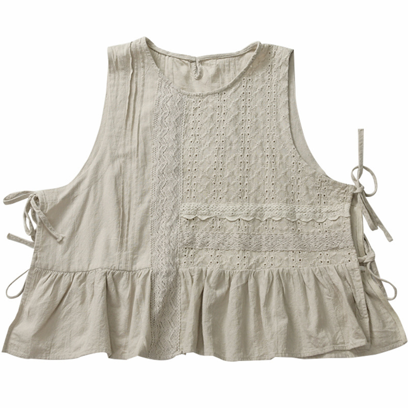 2022早秋新品 日系森女系春蕾丝圆领帮你棉麻无袖马甲背心 女装