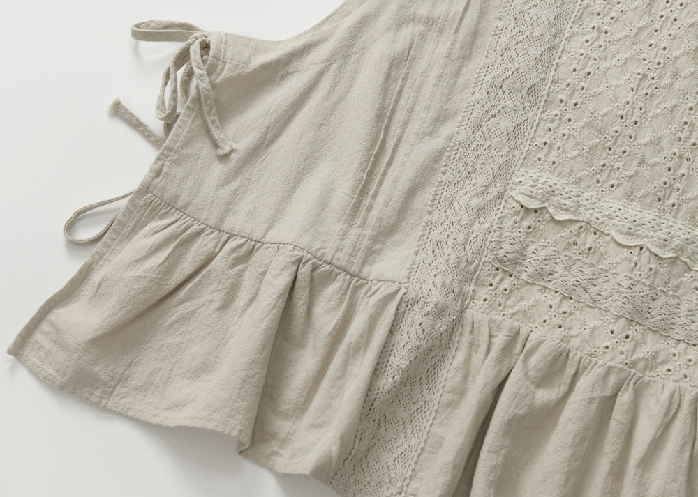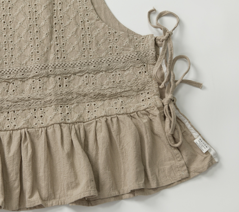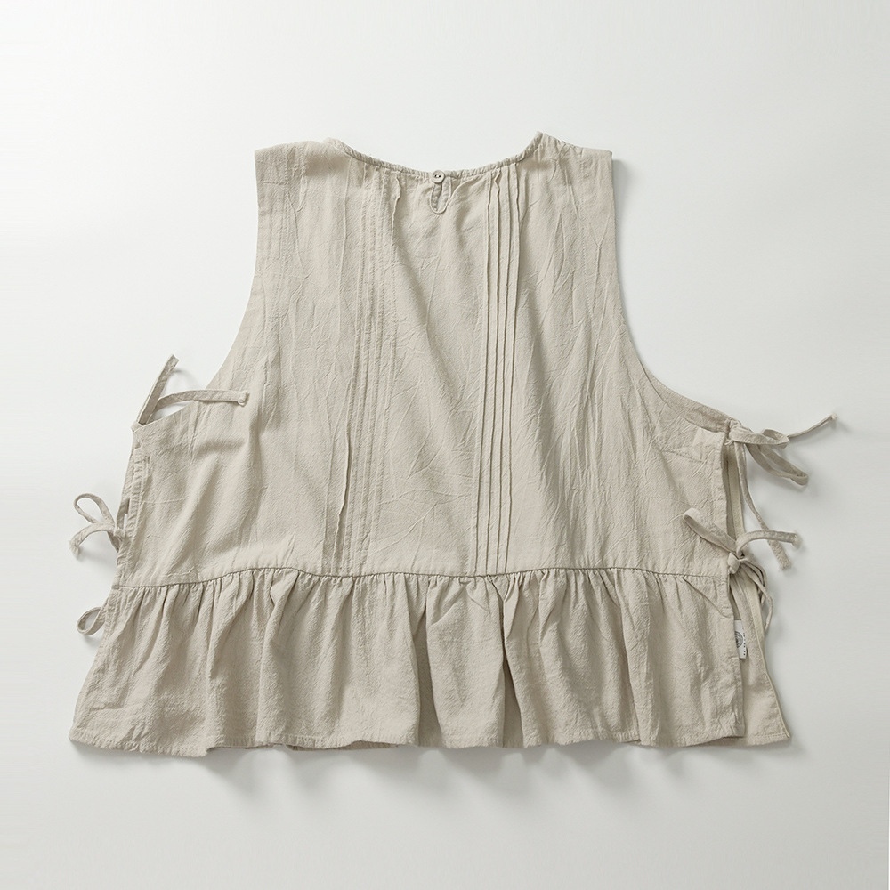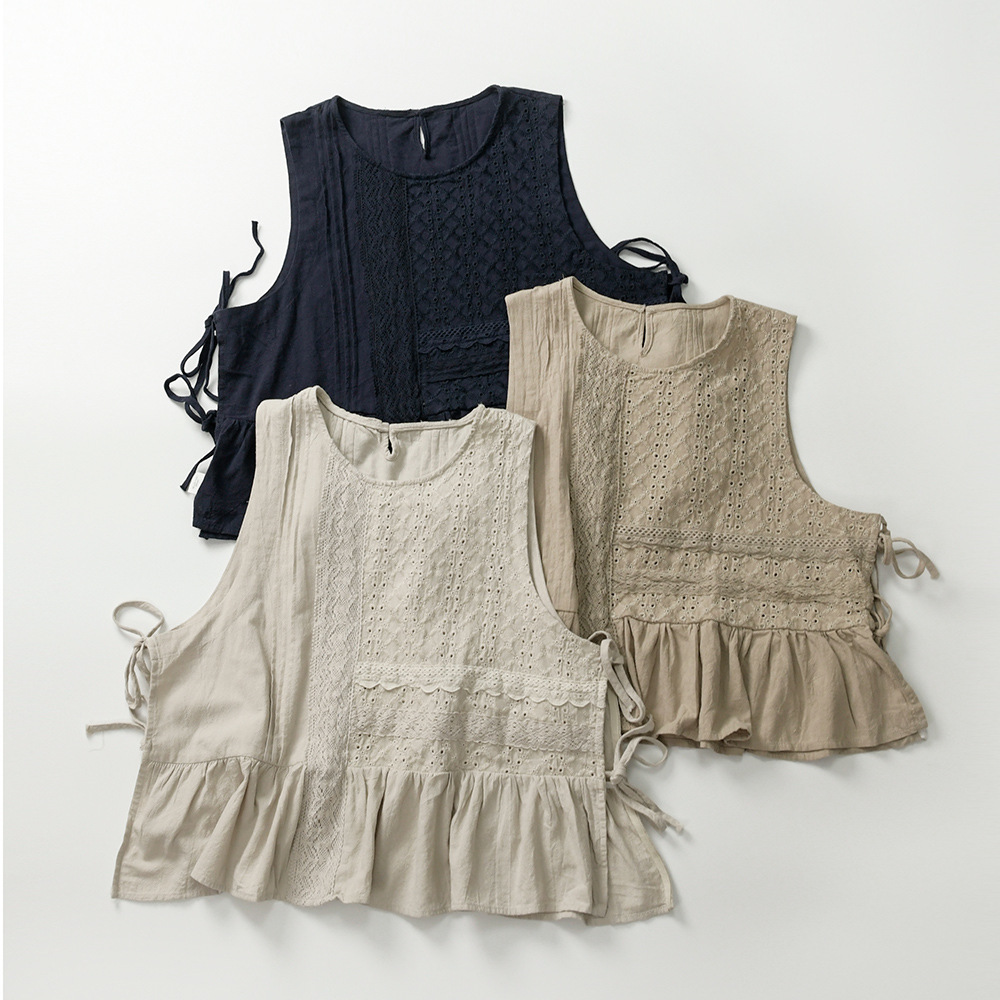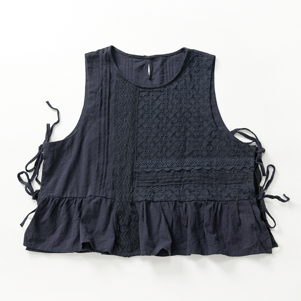 2022早秋新品 日系森女系春蕾丝圆领帮你棉麻无袖马甲背心 女装