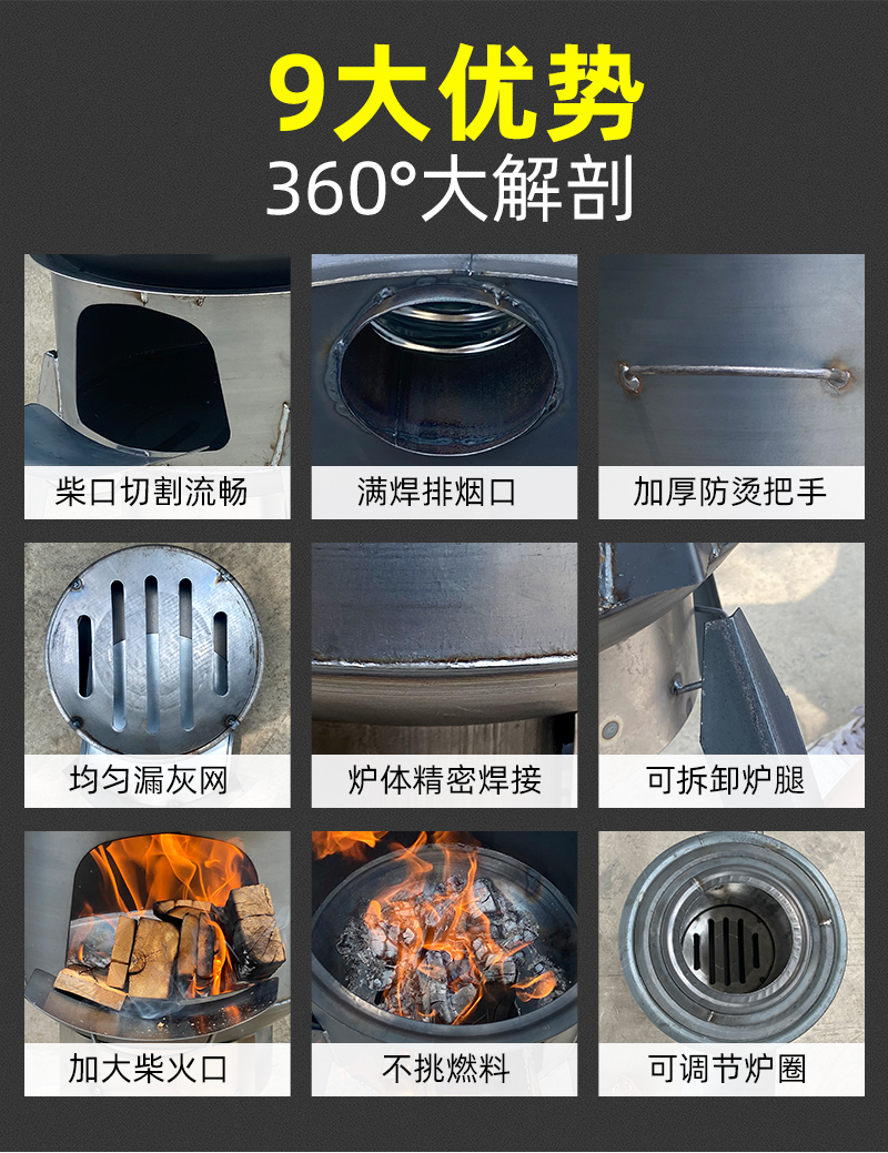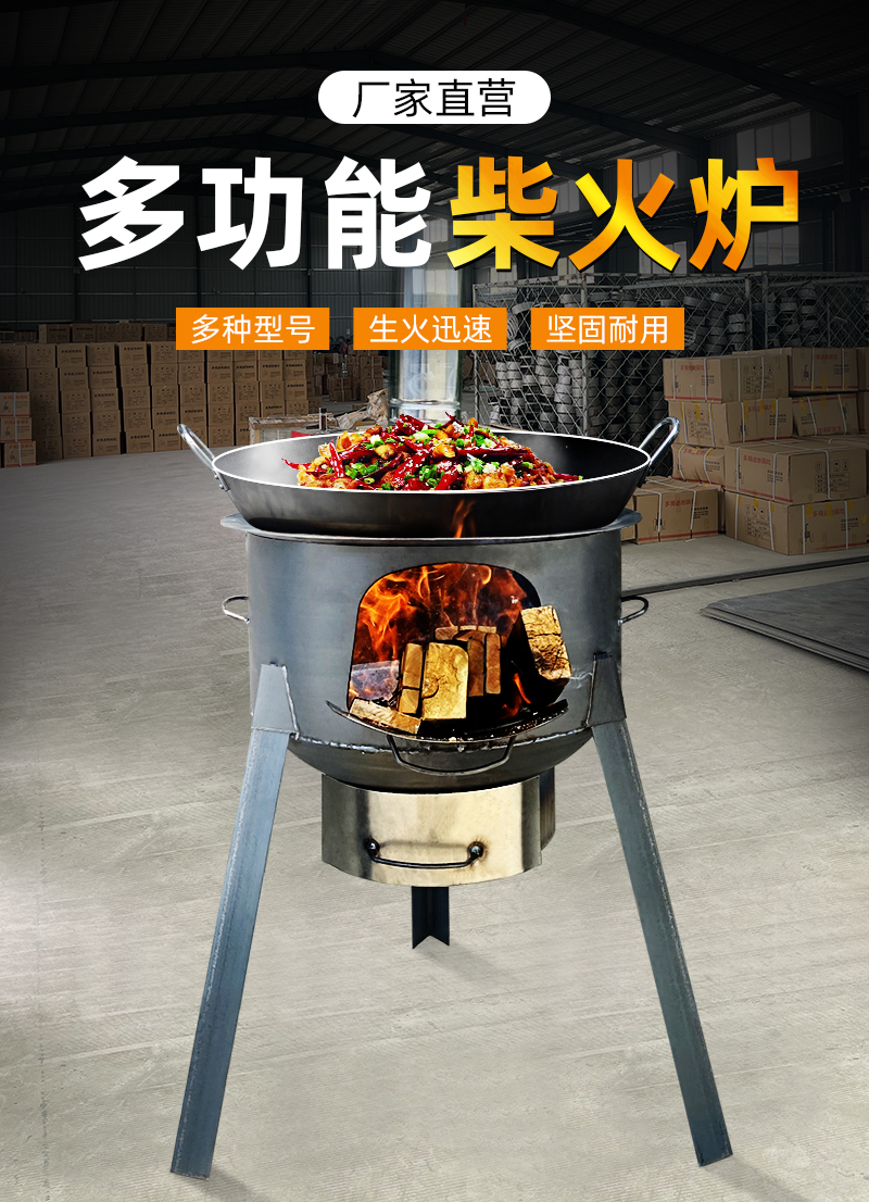 2023新款農村柴火竈臺家用燒木柴戶外取暖烤柴火爐子生鐵可攜式無煙