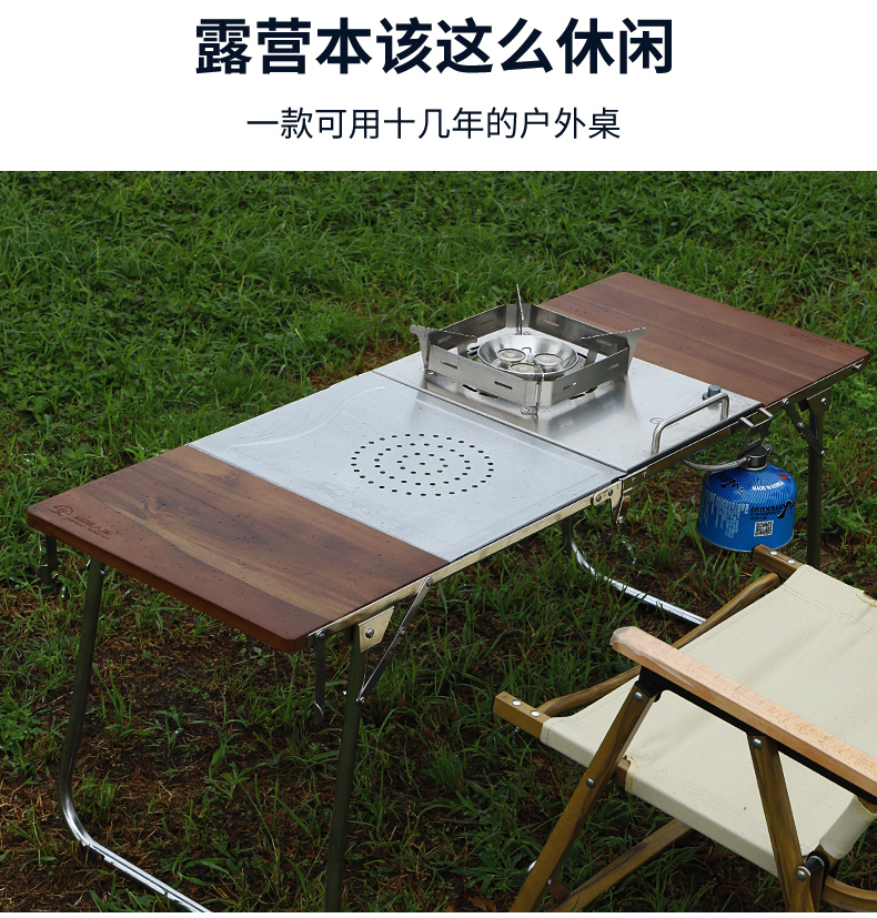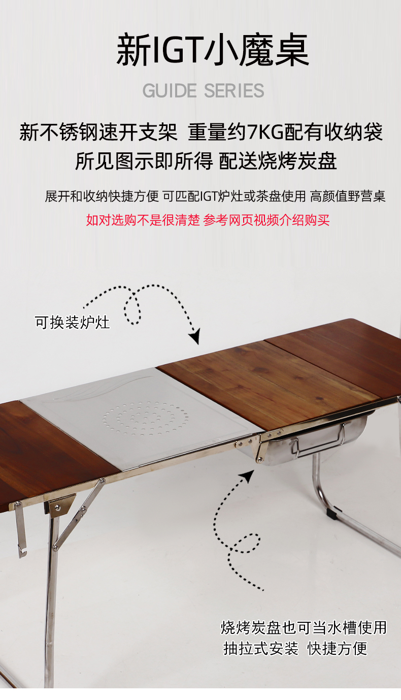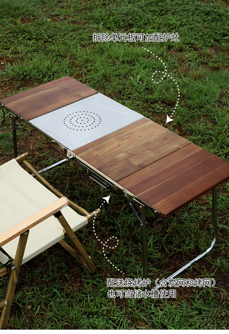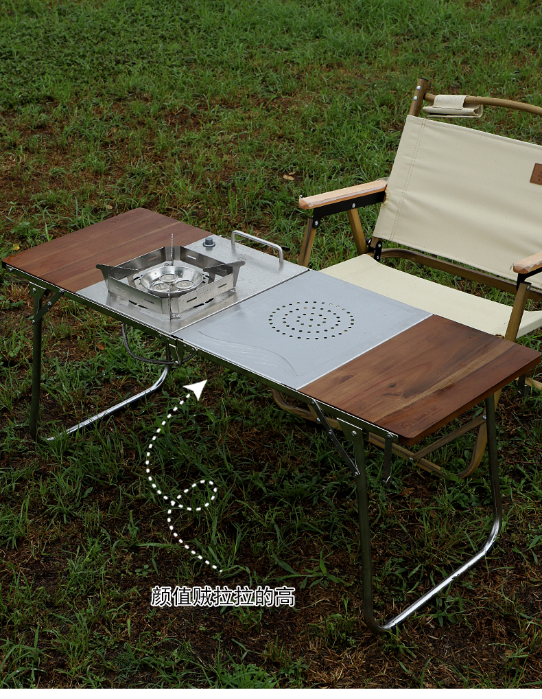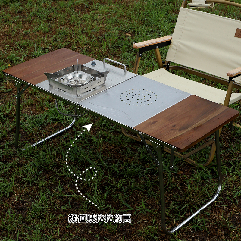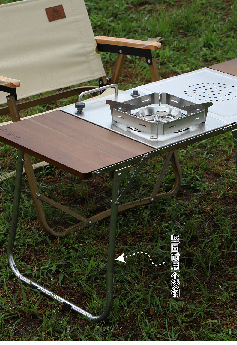 戶外露營自駕遊休閒不鏽鋼IGT野餐摺疊桌移動廚房精緻實木茶臺桌
