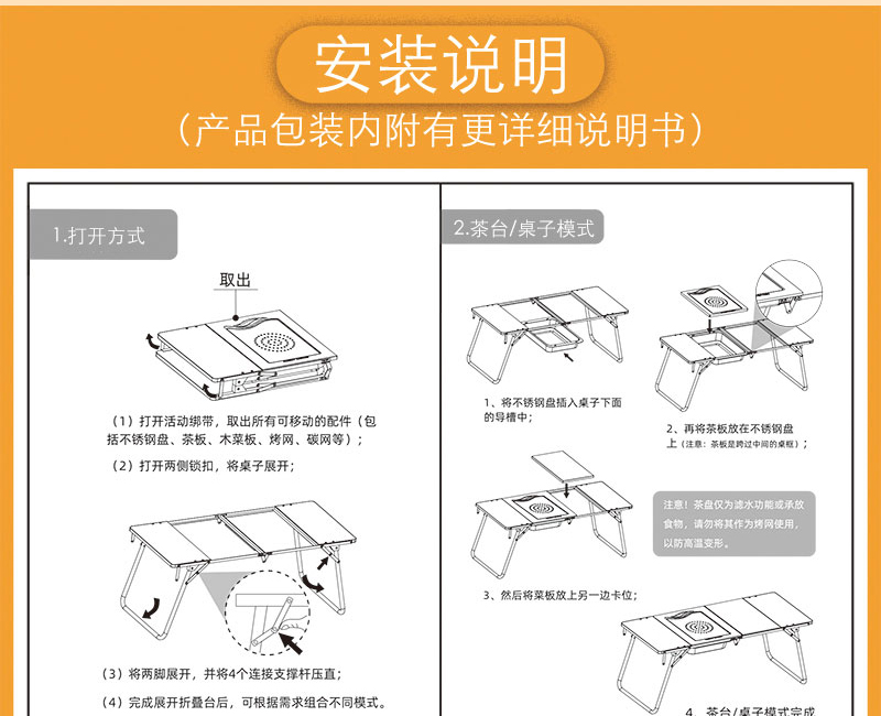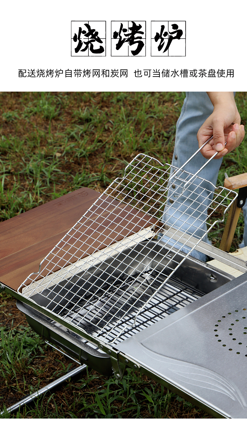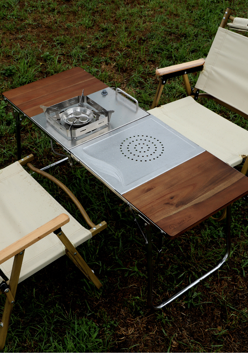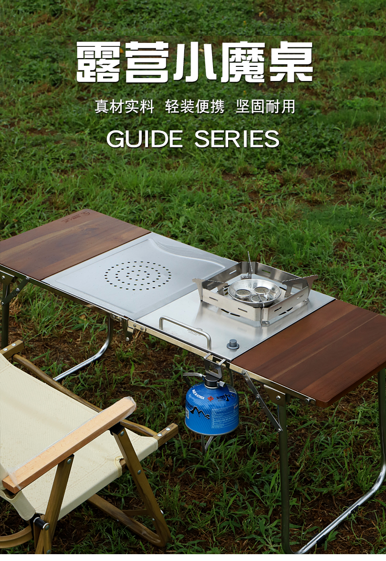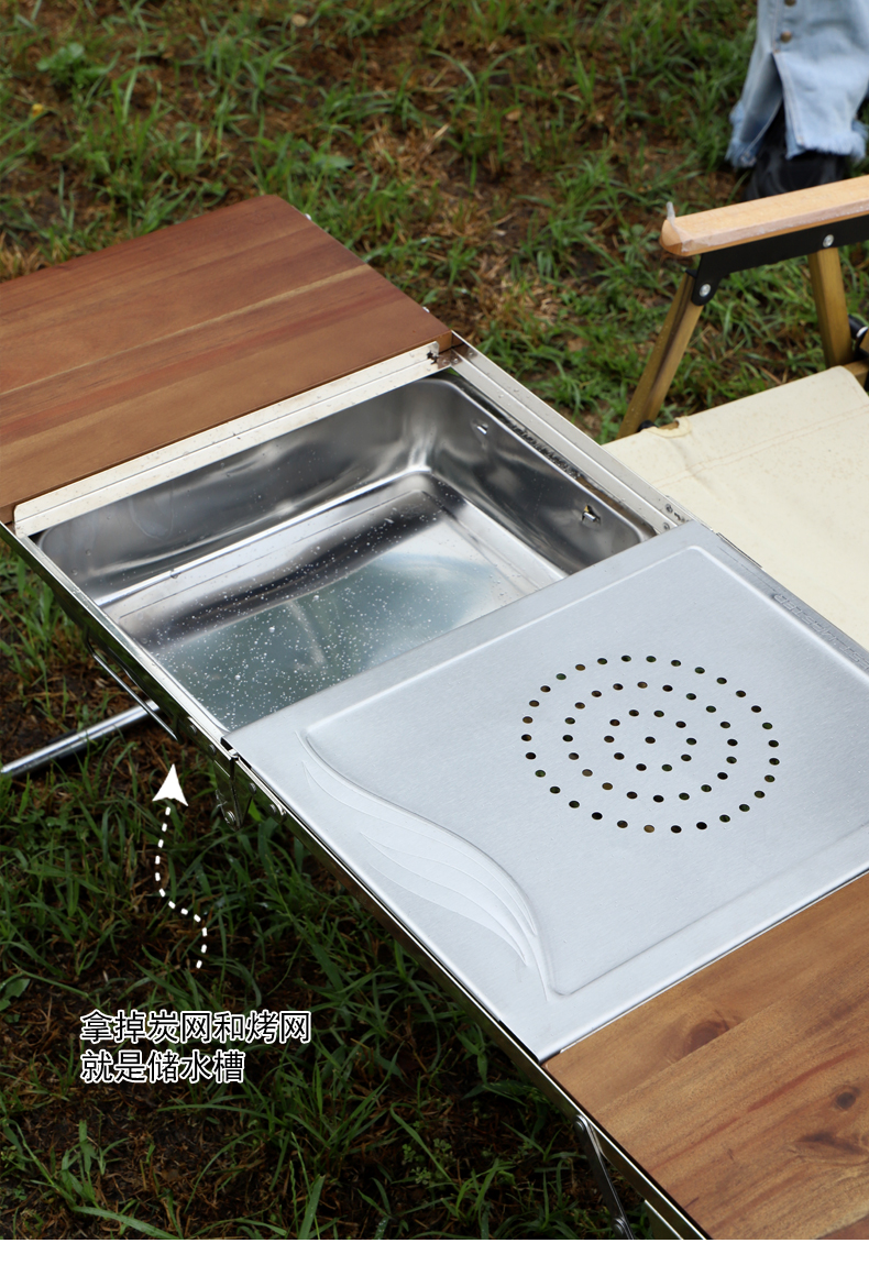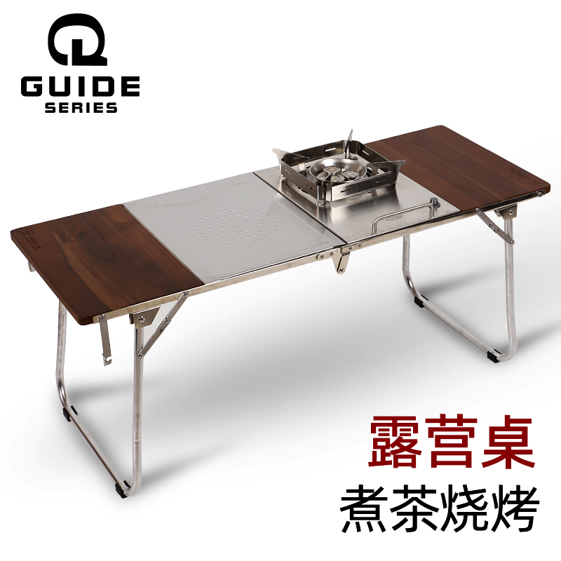 戶外露營自駕遊休閒不鏽鋼IGT野餐摺疊桌移動廚房精緻實木茶臺桌