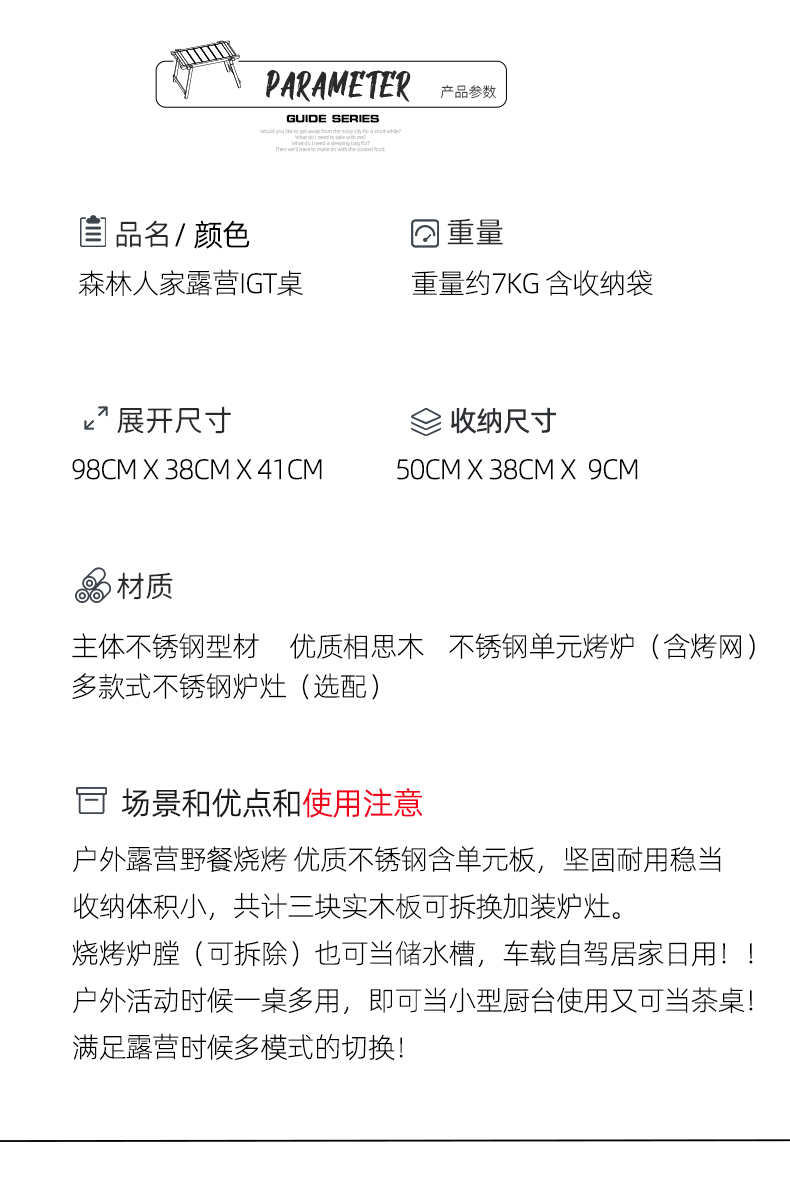 顏色分類 森系IGT桌(含燒烤爐) 森系IGT不鏽鋼桌(含燒烤爐)+三芯爐竈