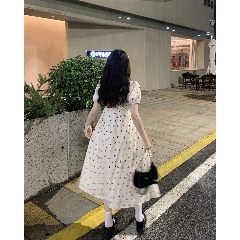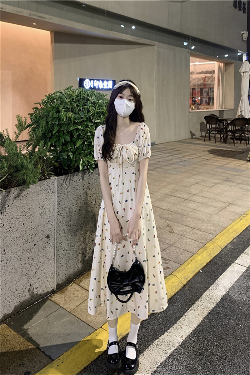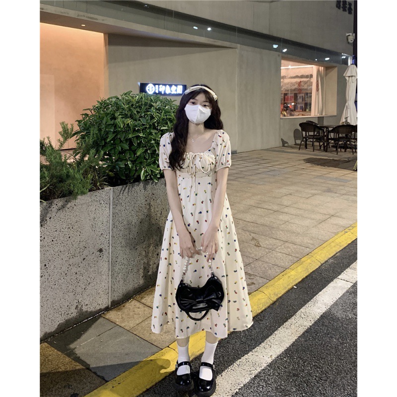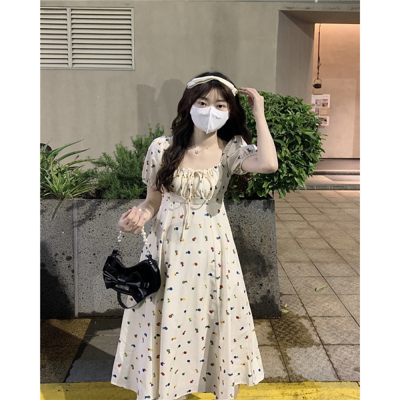 法式小众奶甜茶歇碎花长裙子收腰显瘦温柔风泡泡袖初恋连衣裙夏女