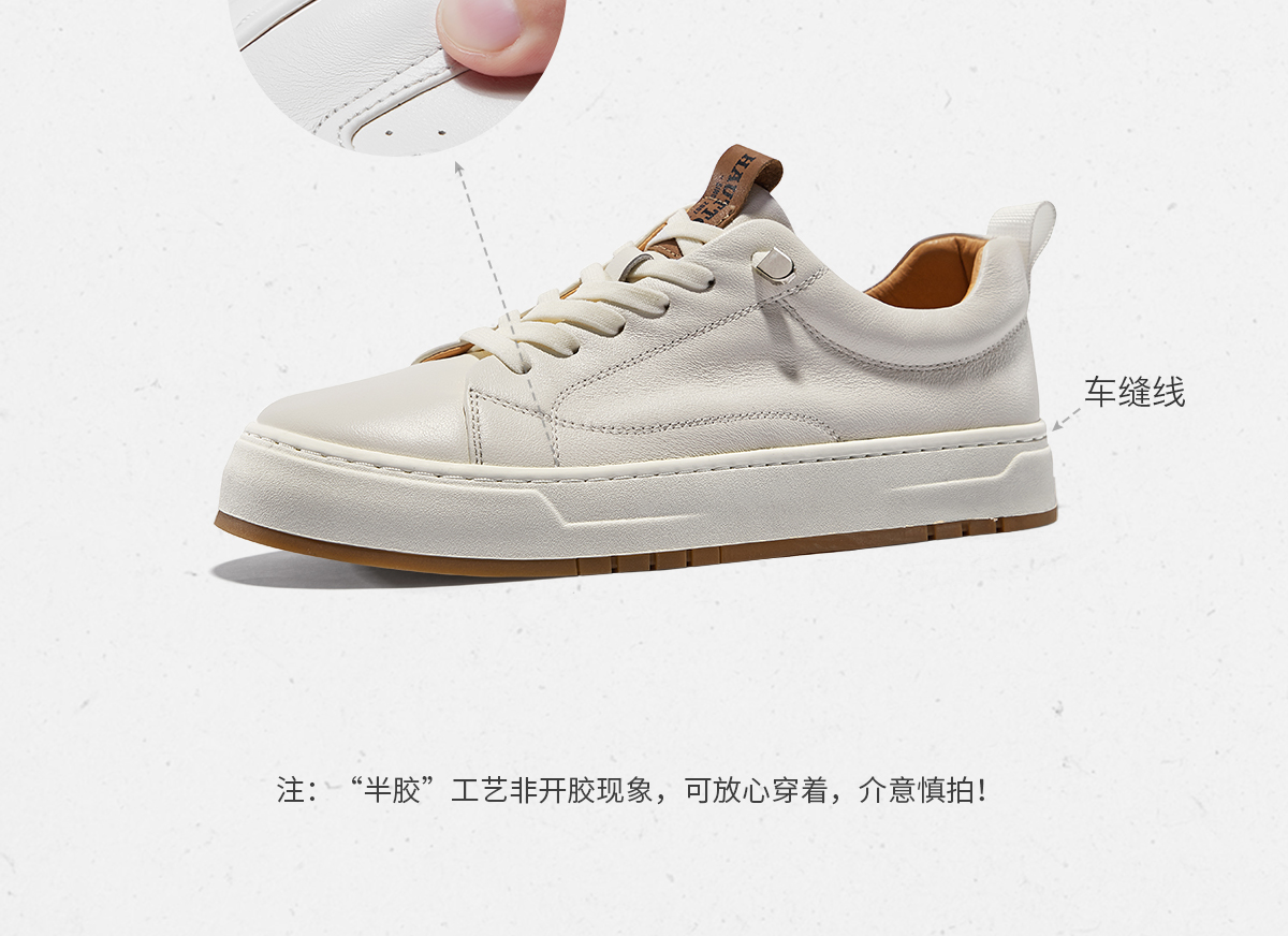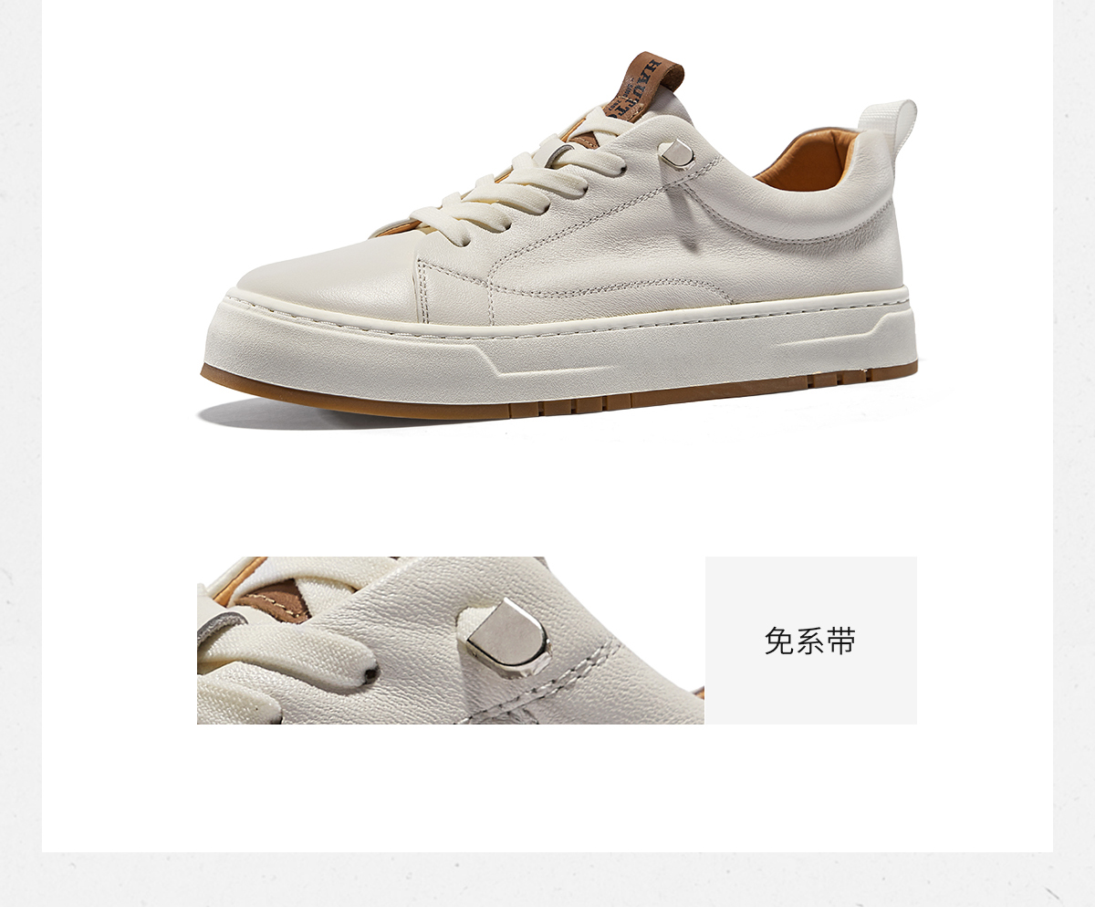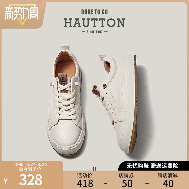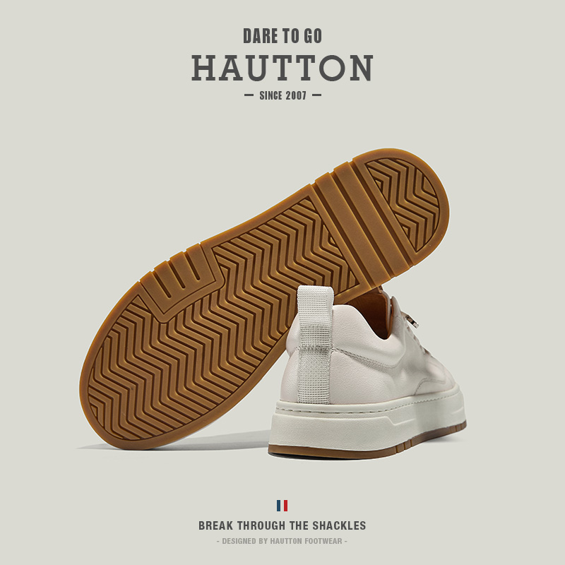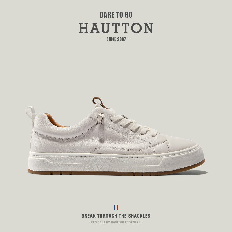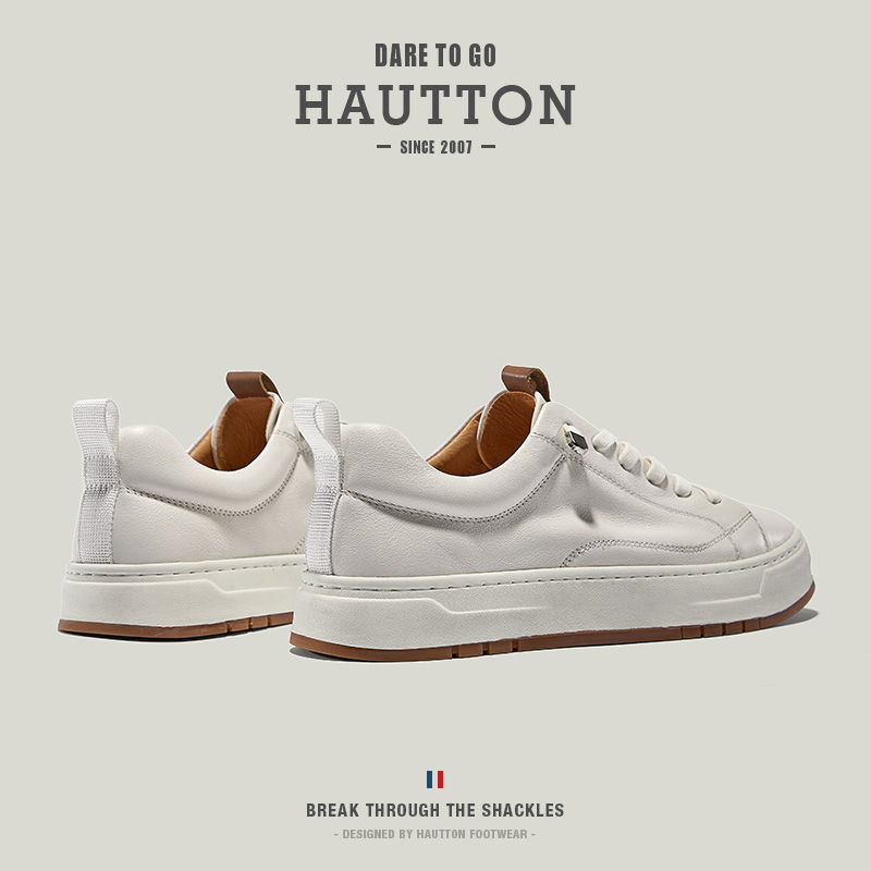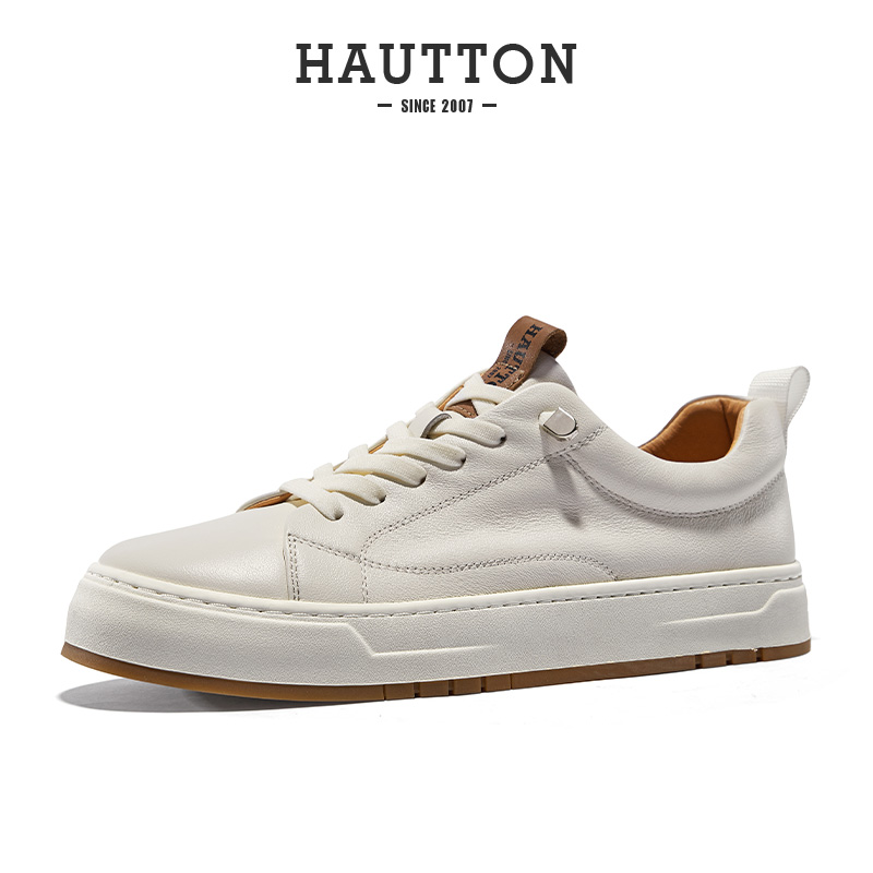 HauttonJeans小白鞋男款真皮板鞋夏季商務休閒皮鞋男士一腳蹬男鞋