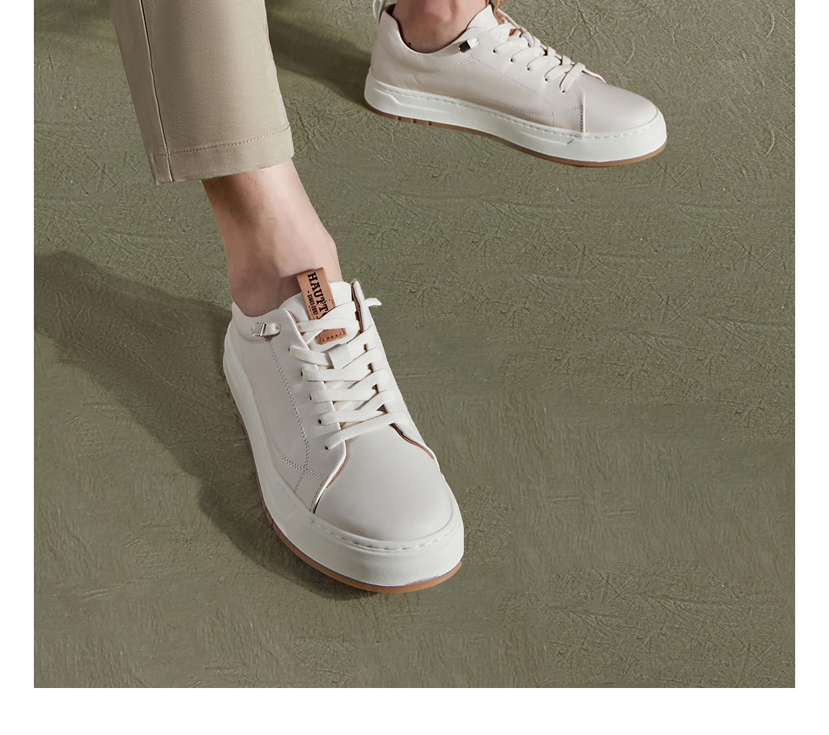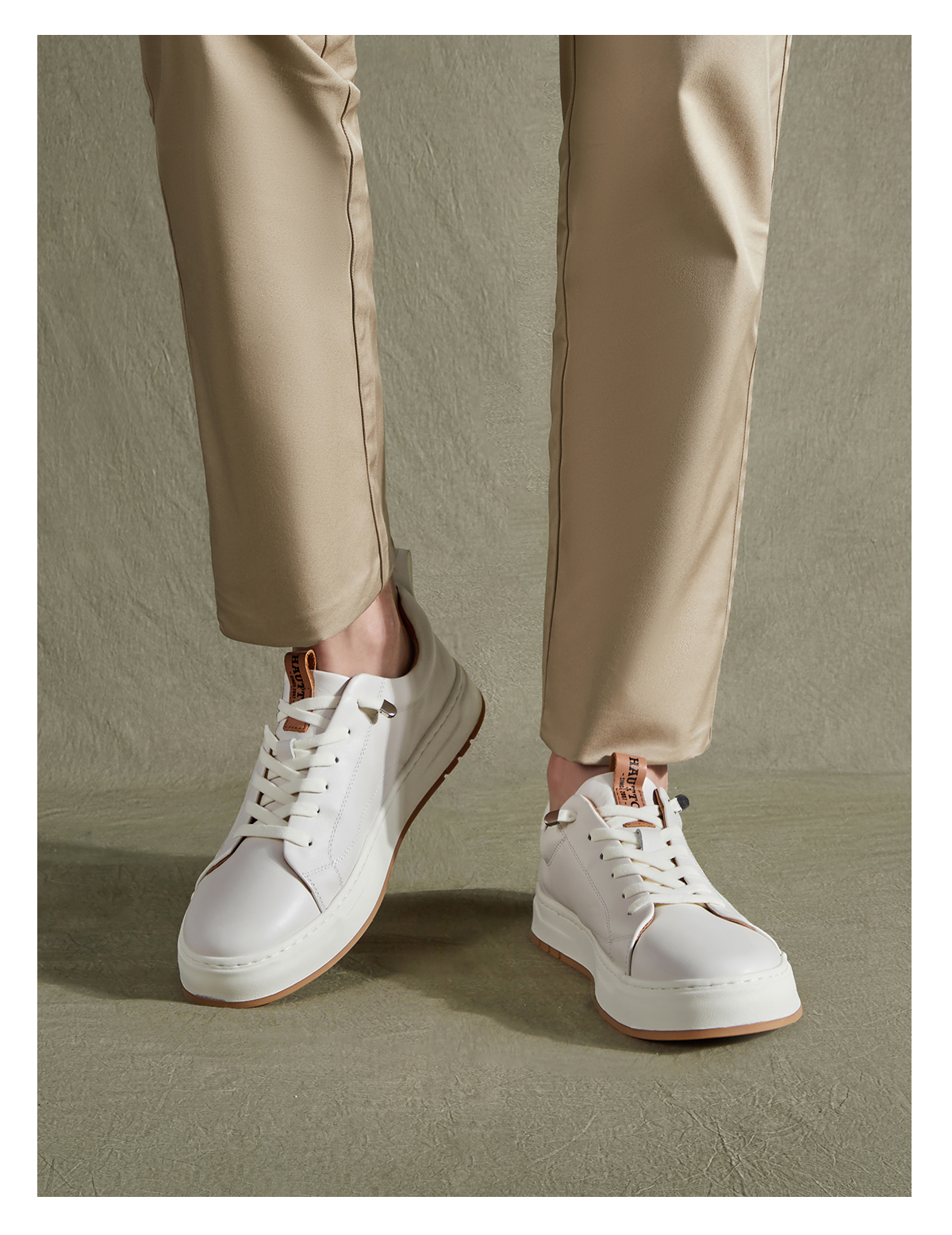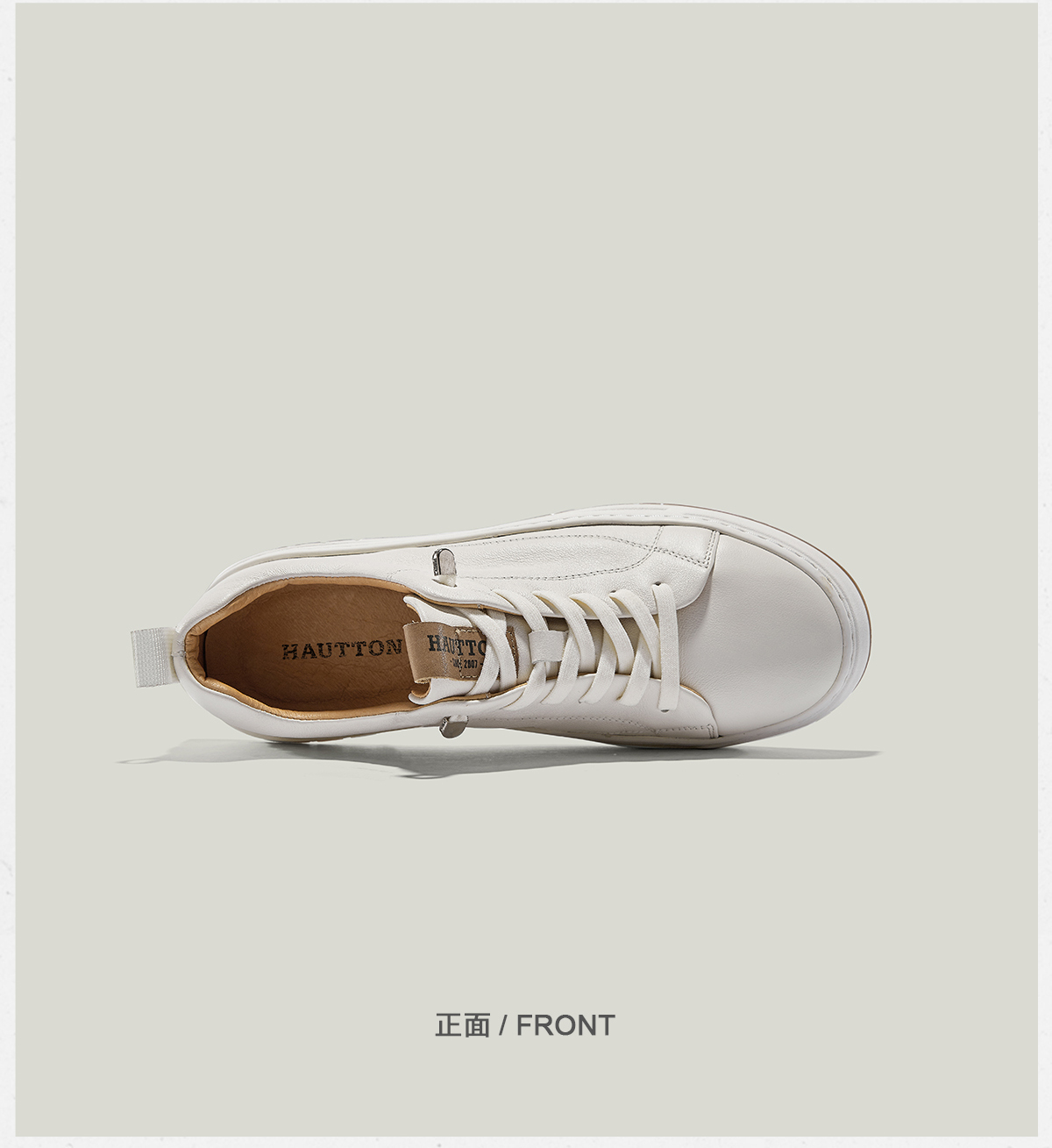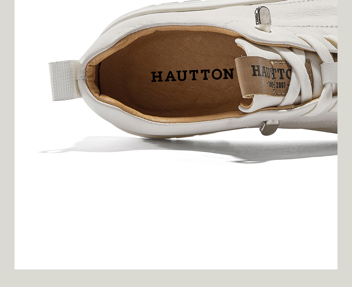 HauttonJeans小白鞋男款真皮板鞋夏季商務休閒皮鞋男士一腳蹬男鞋