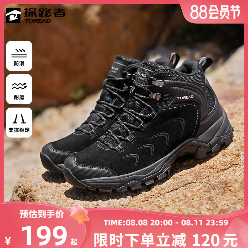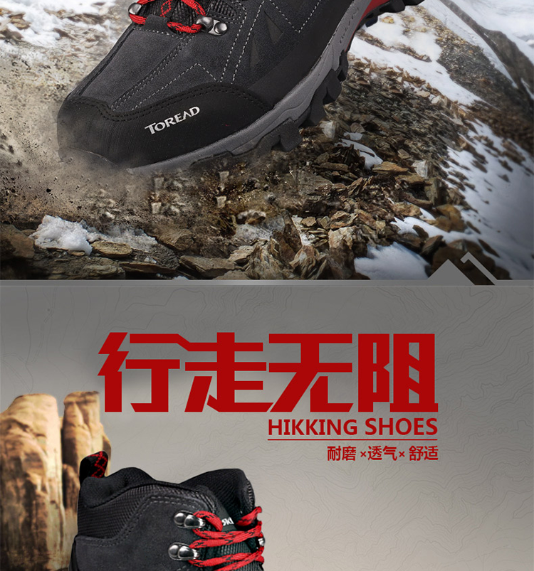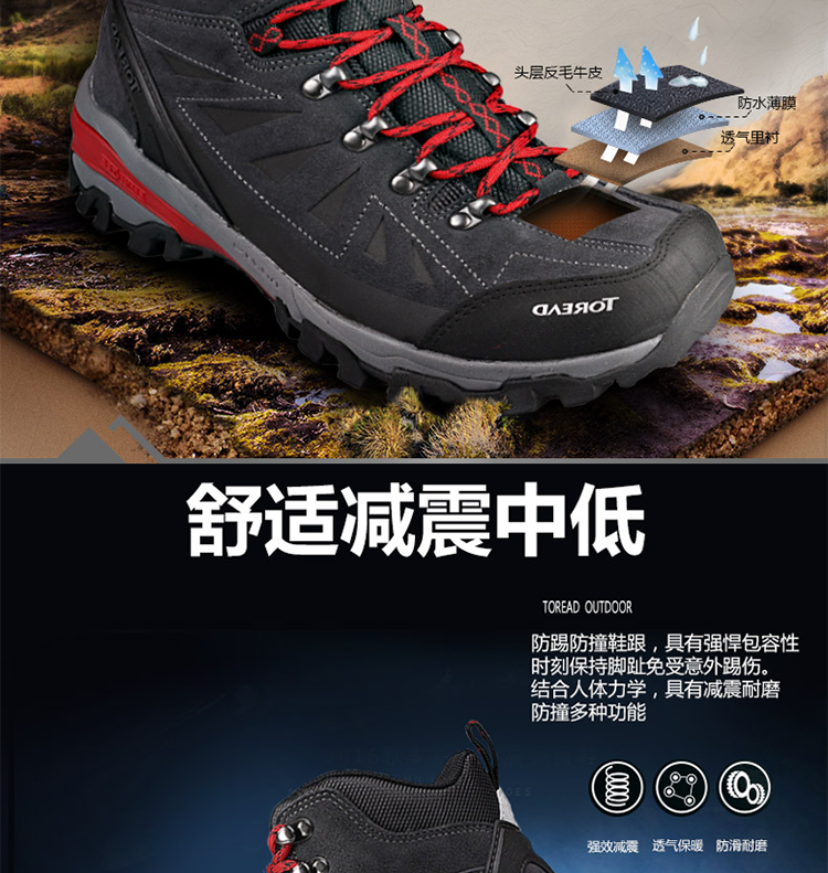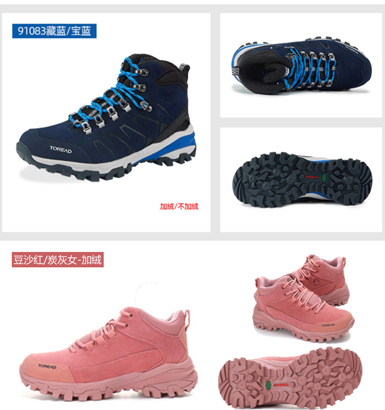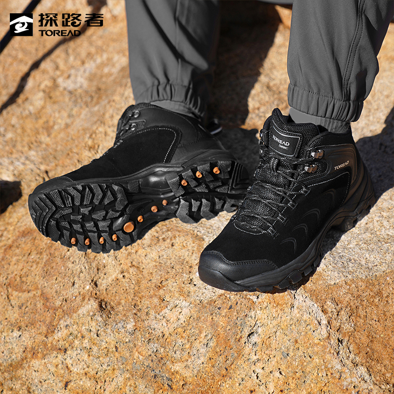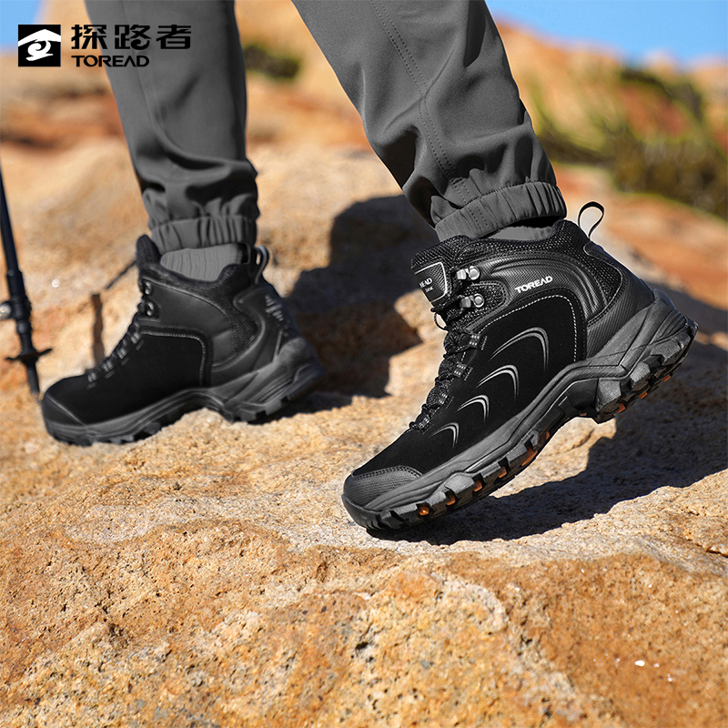 探路者登山鞋男戶外防水防滑男鞋耐磨牛皮高筒越野加絨徒步鞋女