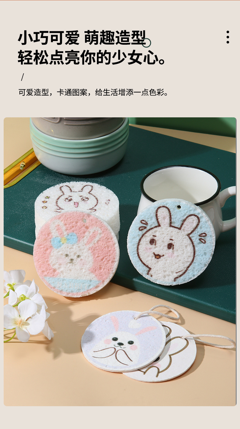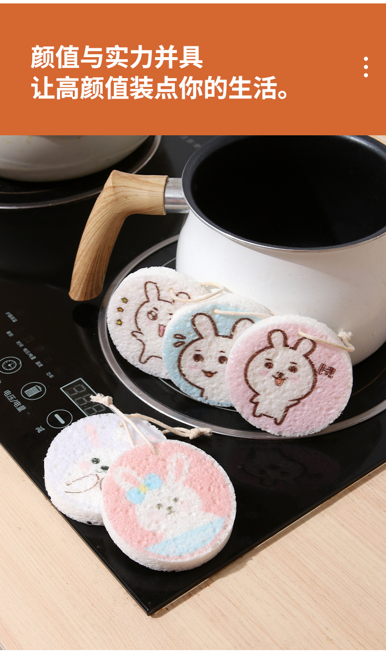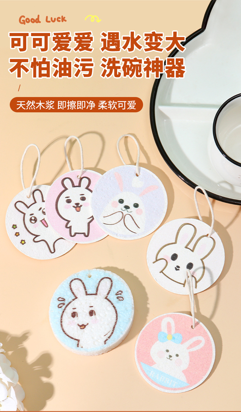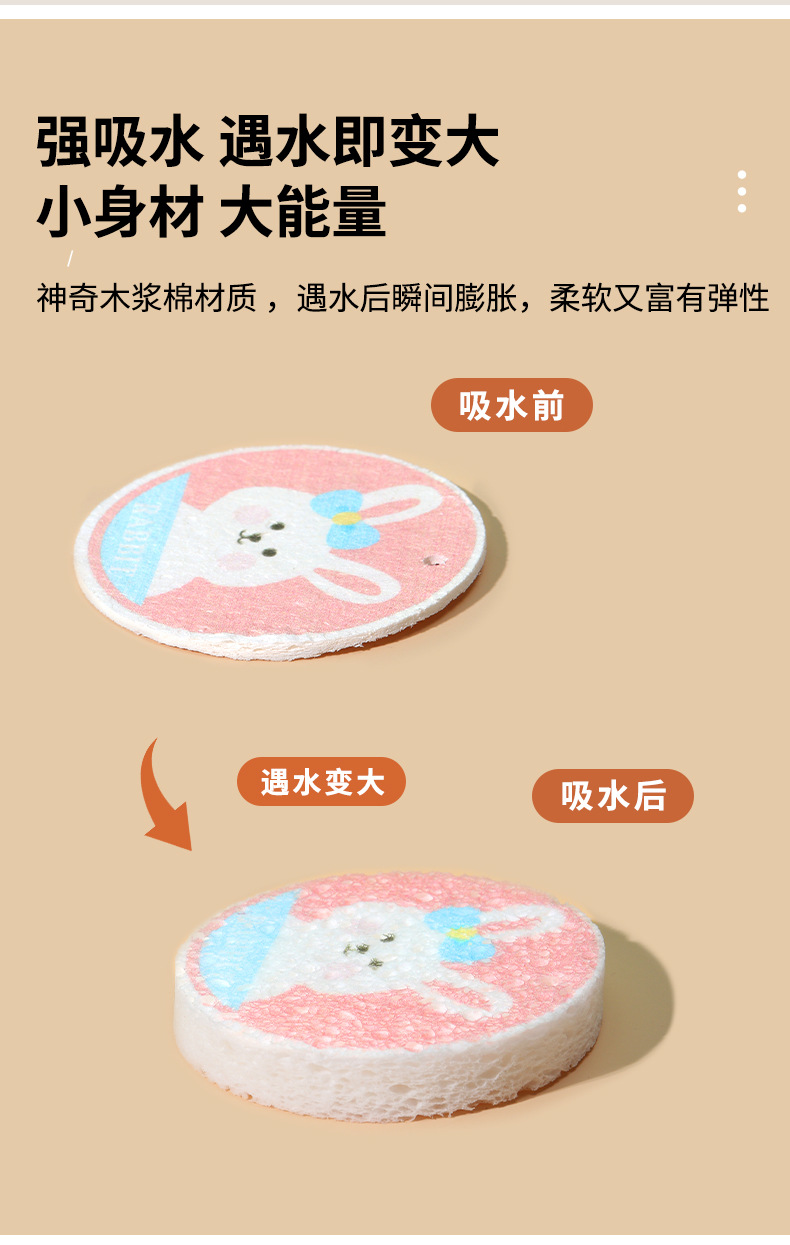 卡通木浆海绵压缩洗碗海绵吸水变大魔力海绵擦9cm圆形百洁布可爱