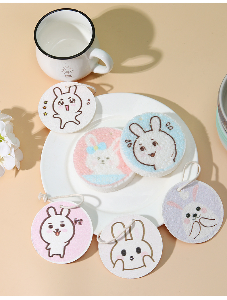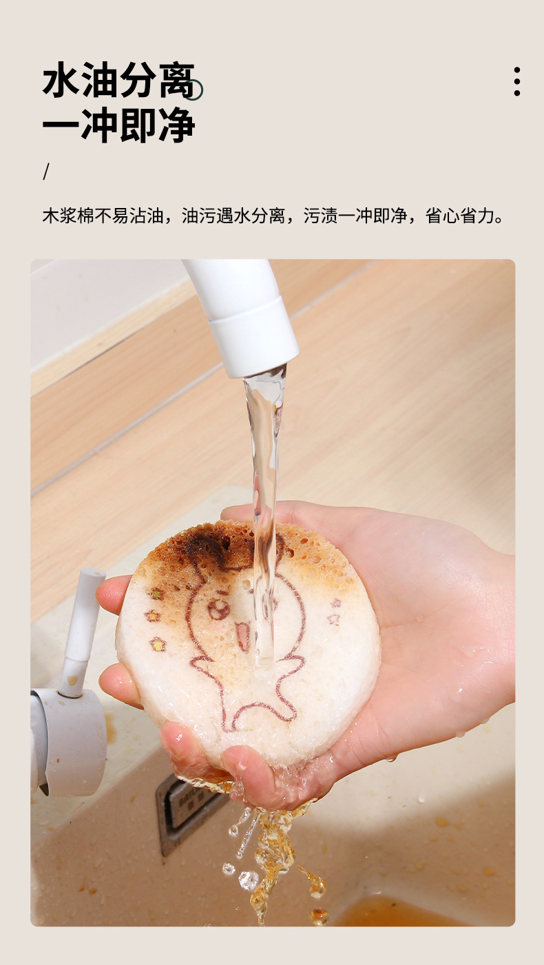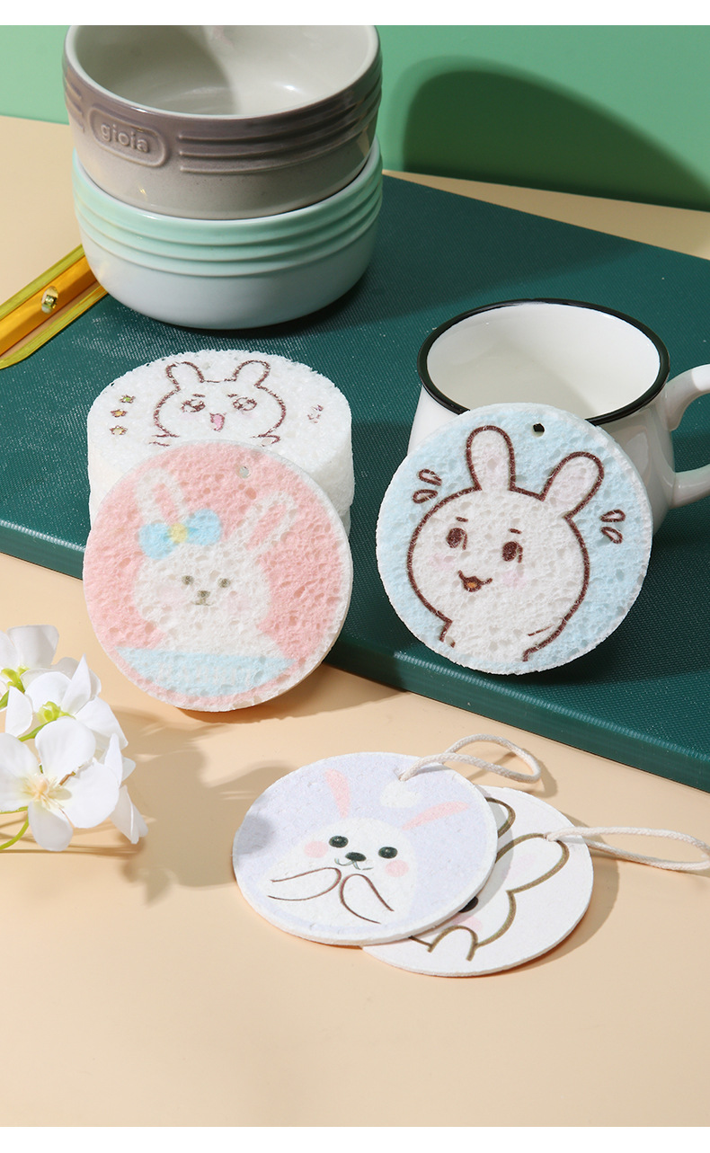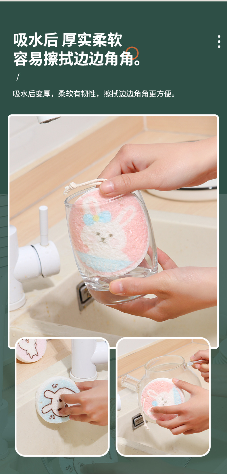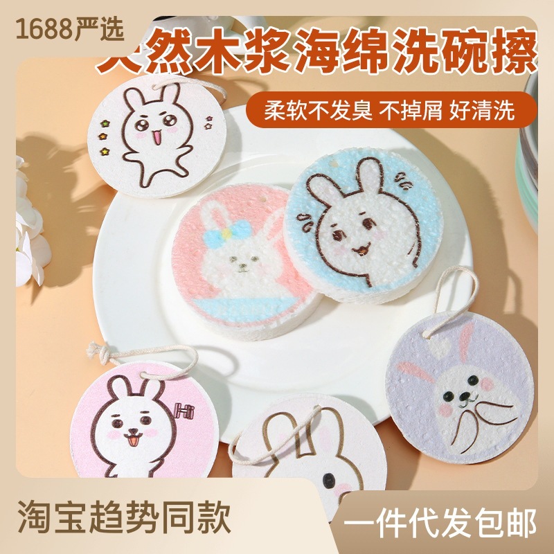 卡通木浆海绵压缩洗碗海绵吸水变大魔力海绵擦9cm圆形百洁布可爱