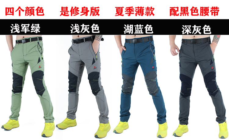 春夏季戶外速乾褲男防水透氣耐磨快乾衝鋒褲修身彈力登山長褲薄款