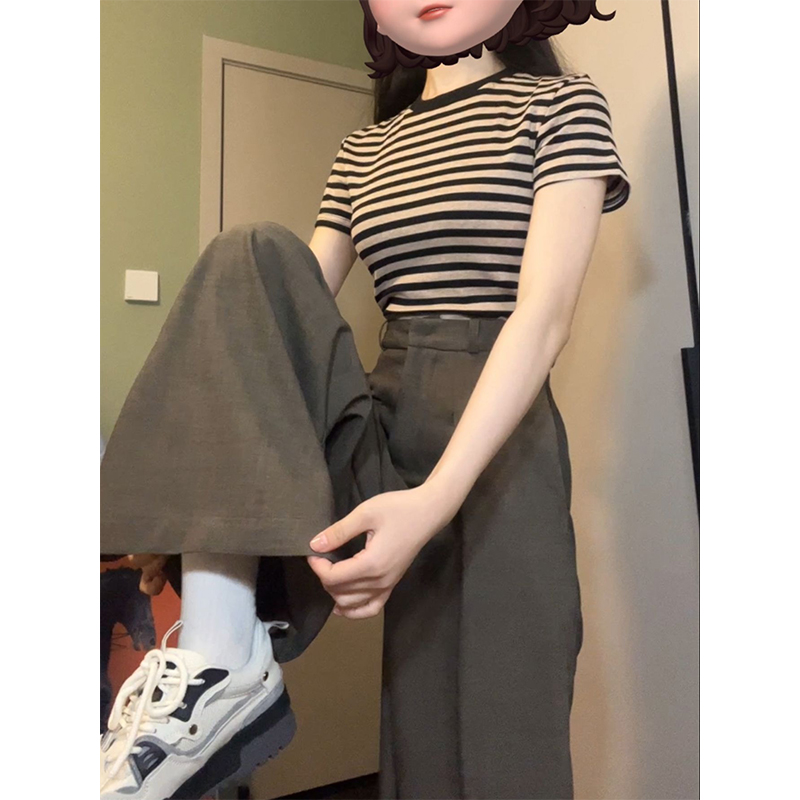 垂感慵懶風闊腿西裝裙褲女小個子夏季設計感高腰休閒拖地長褲薄款