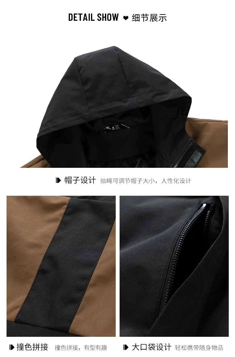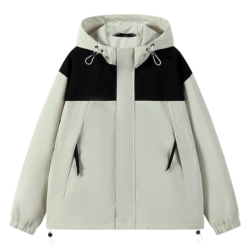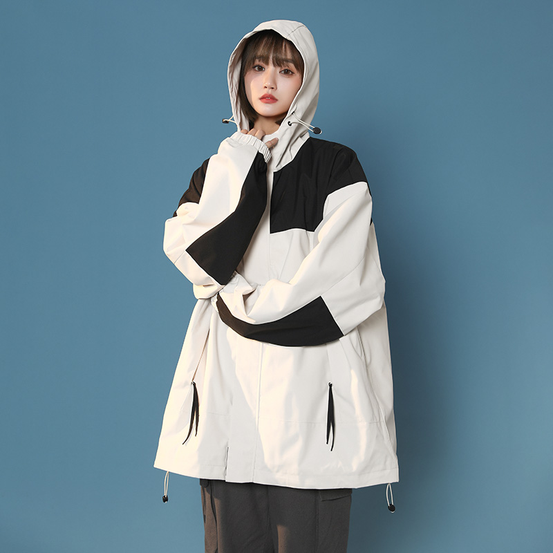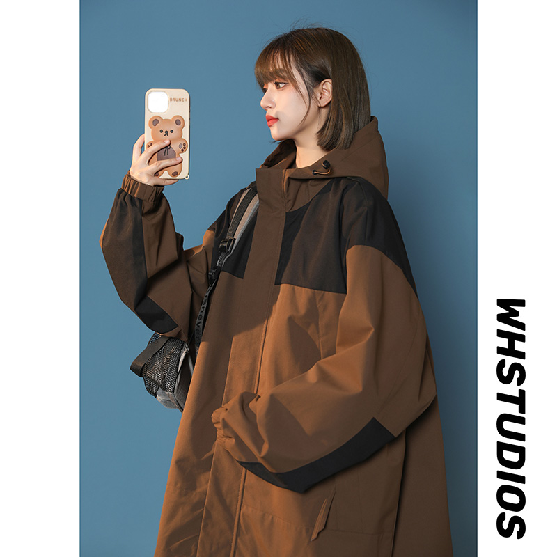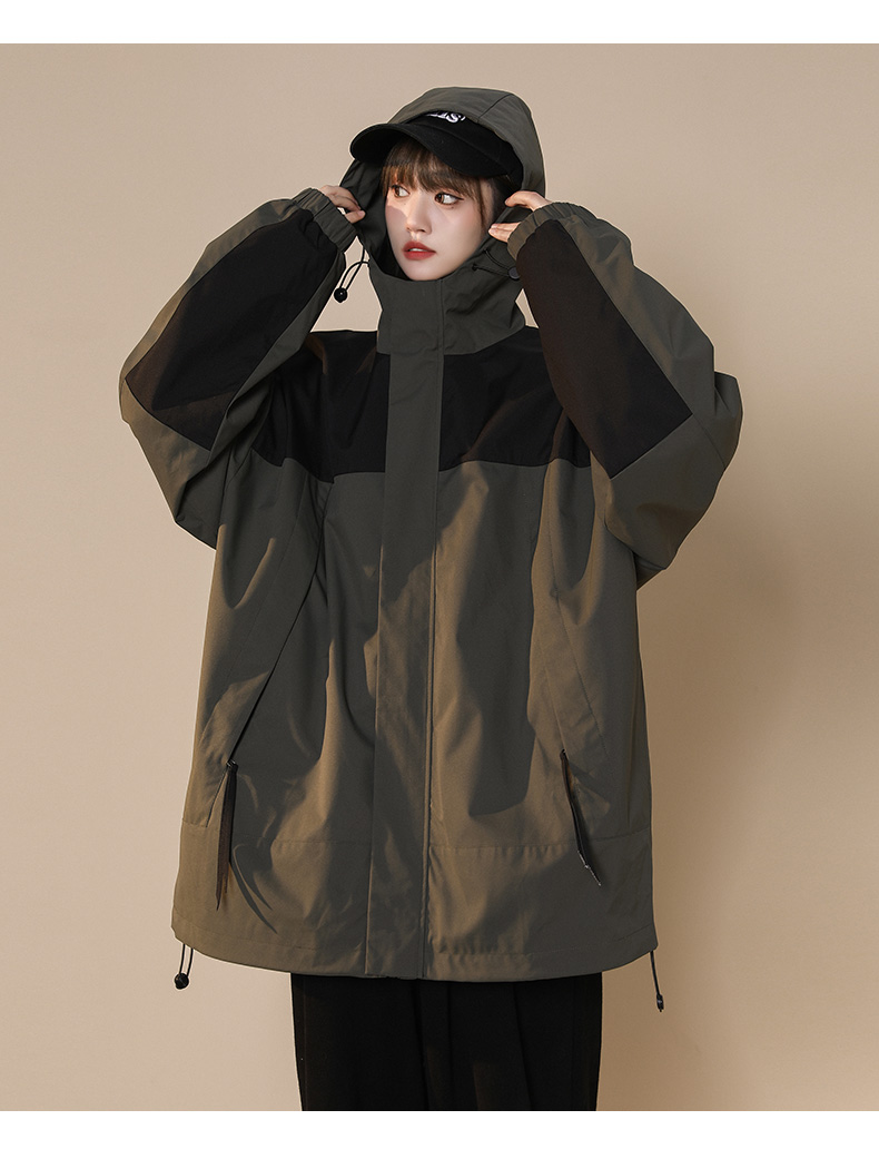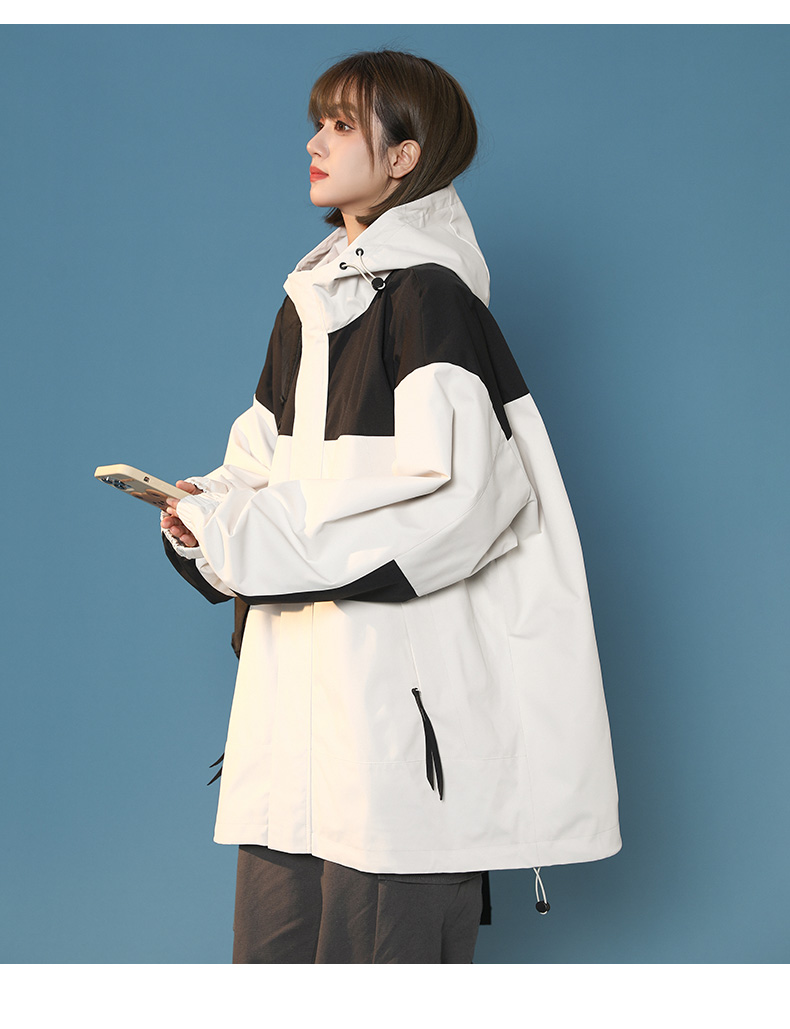 拼接撞色連帽衝鋒衣外套女春季胖mm寬鬆復古中性街頭潮牌工裝夾克