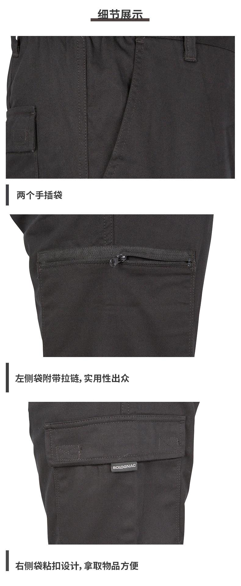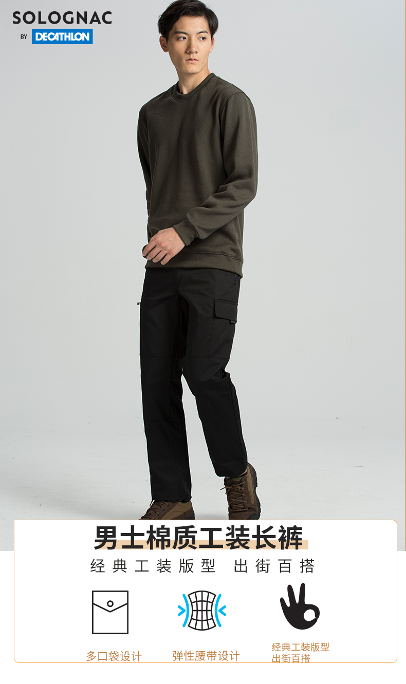 迪卡儂官方旗艦店工裝褲男休閒長褲春秋棉直筒寬鬆百搭褲子 OVH