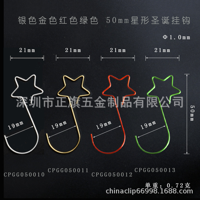 7)  1.0*50mm五角星形(金、银、绿、红)