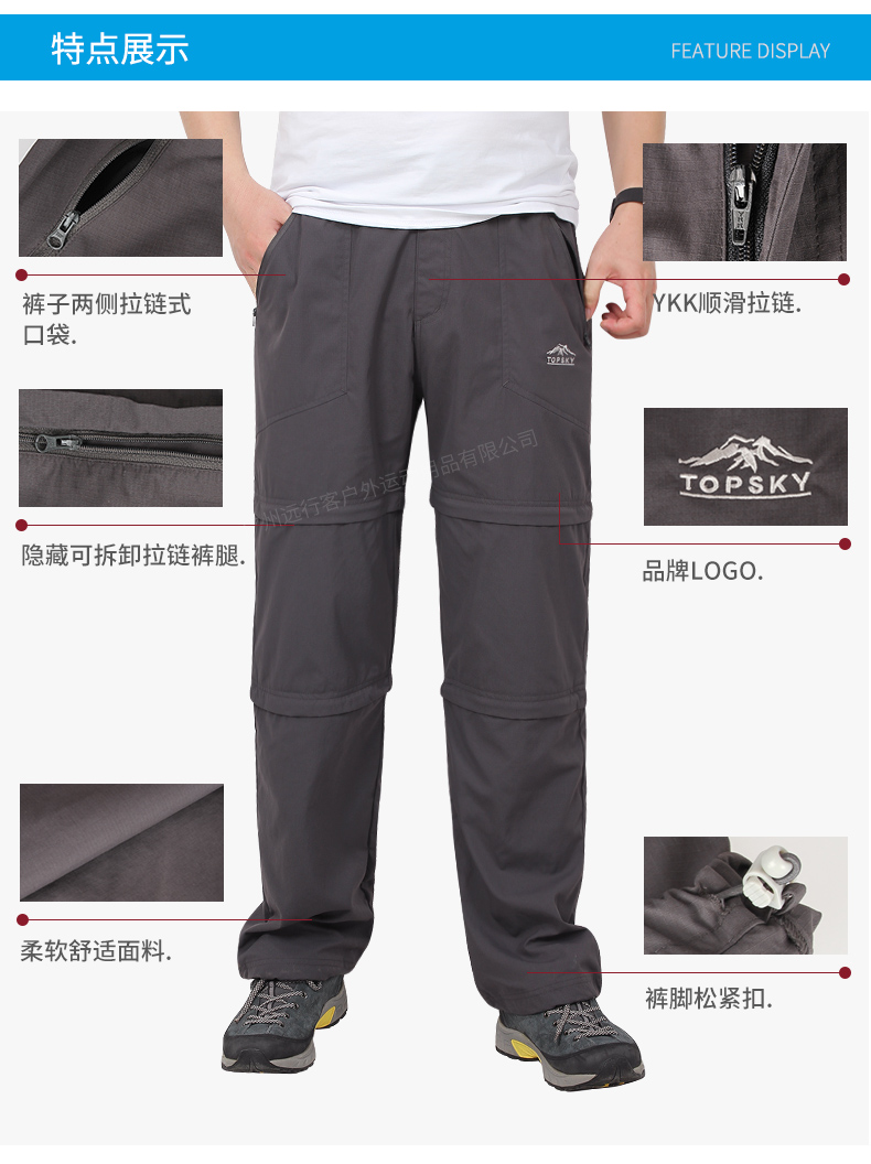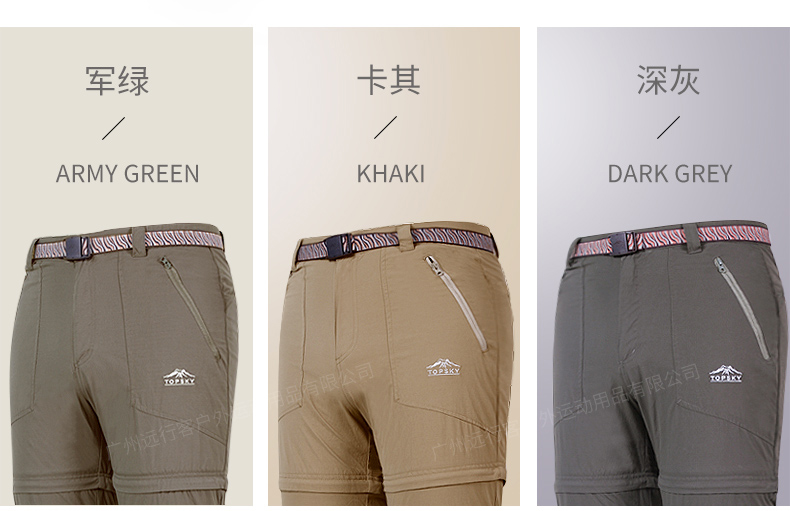 Topsky戶外速乾褲男夏可拆卸三截快乾褲女薄運動徒步登山長褲短褲