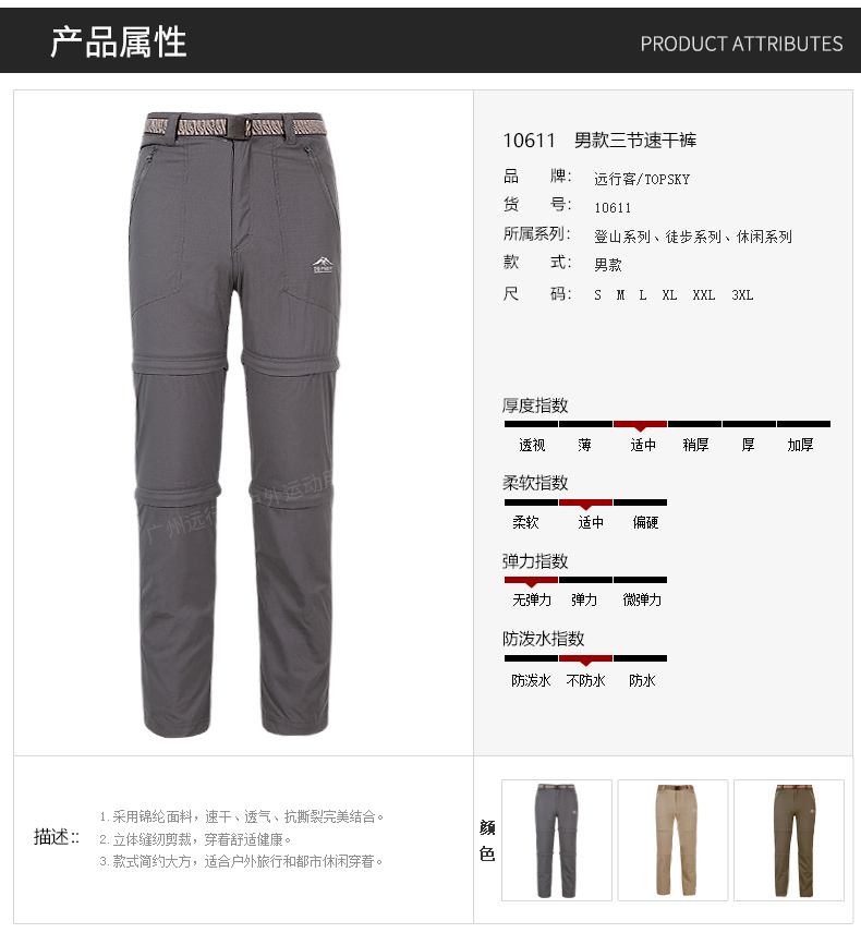 主要功能 透氣 耐磨 保暖 速乾 吸濕排汗 可拆卸