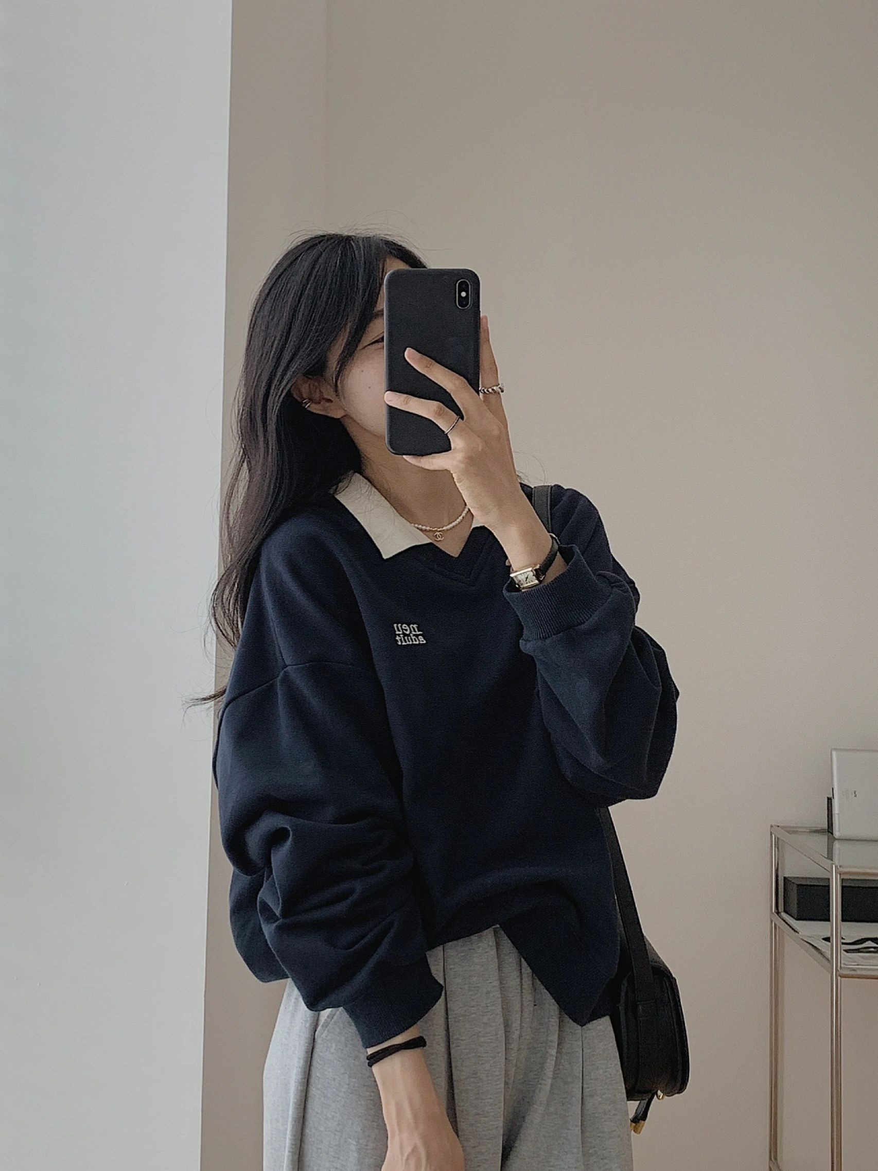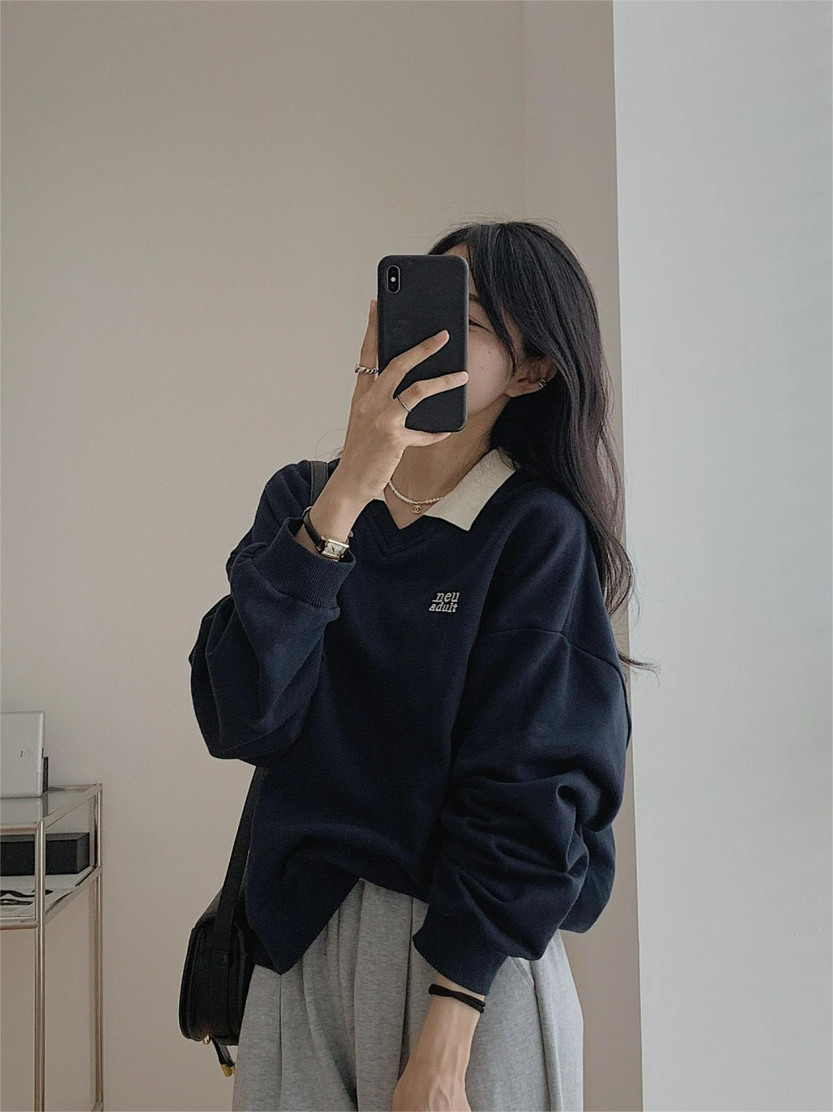 polo領美式正肩衛衣女秋冬設計感小眾hiphop外套復古加絨長袖上衣