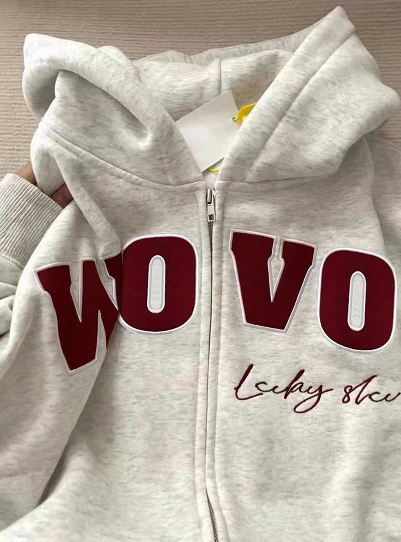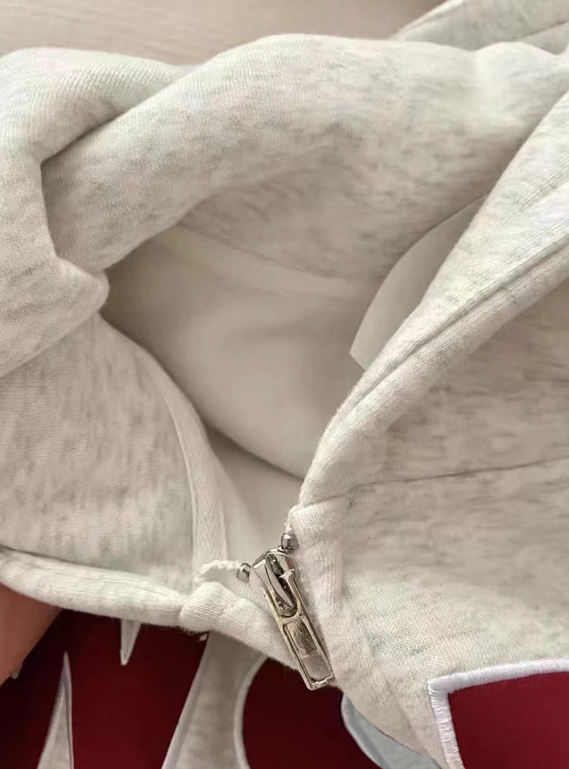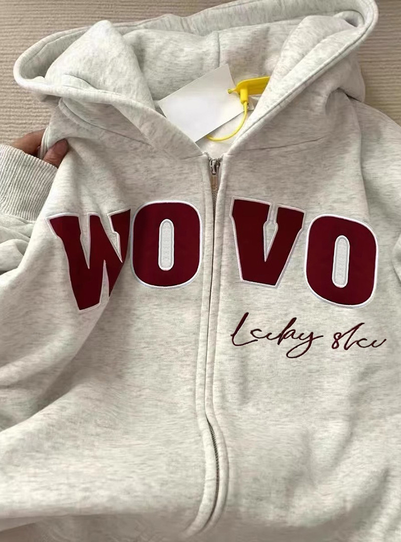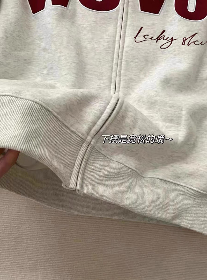 美式復古米灰色潮牌字母連帽運動衫女春秋寬鬆慵懶風百搭開衫外套潮