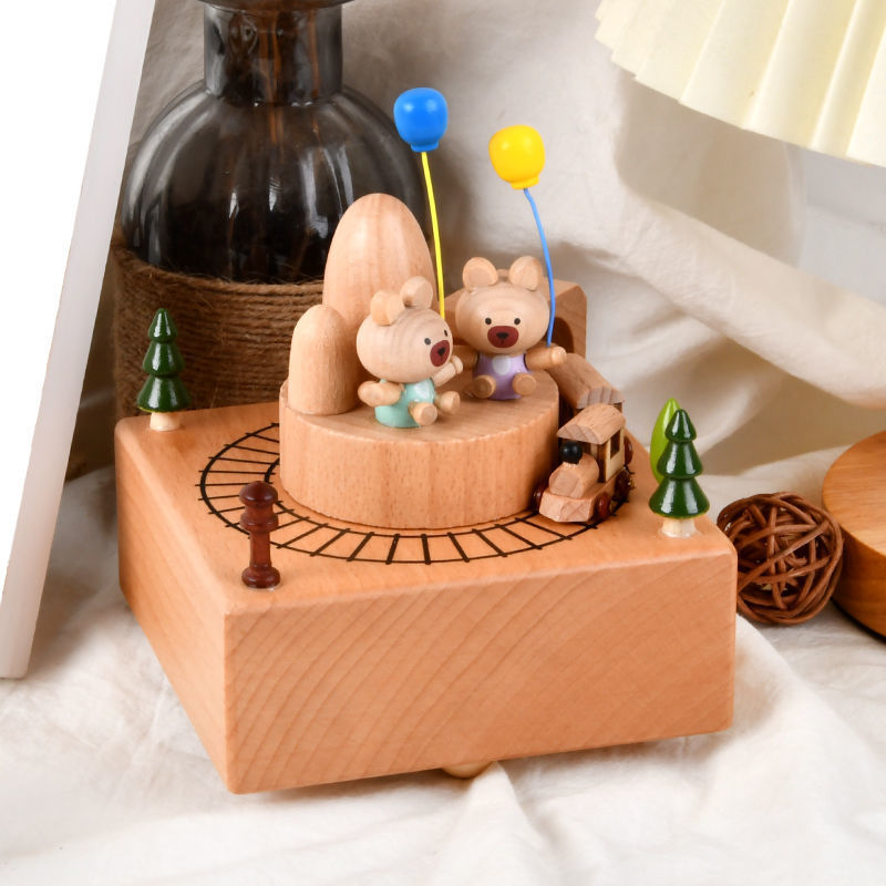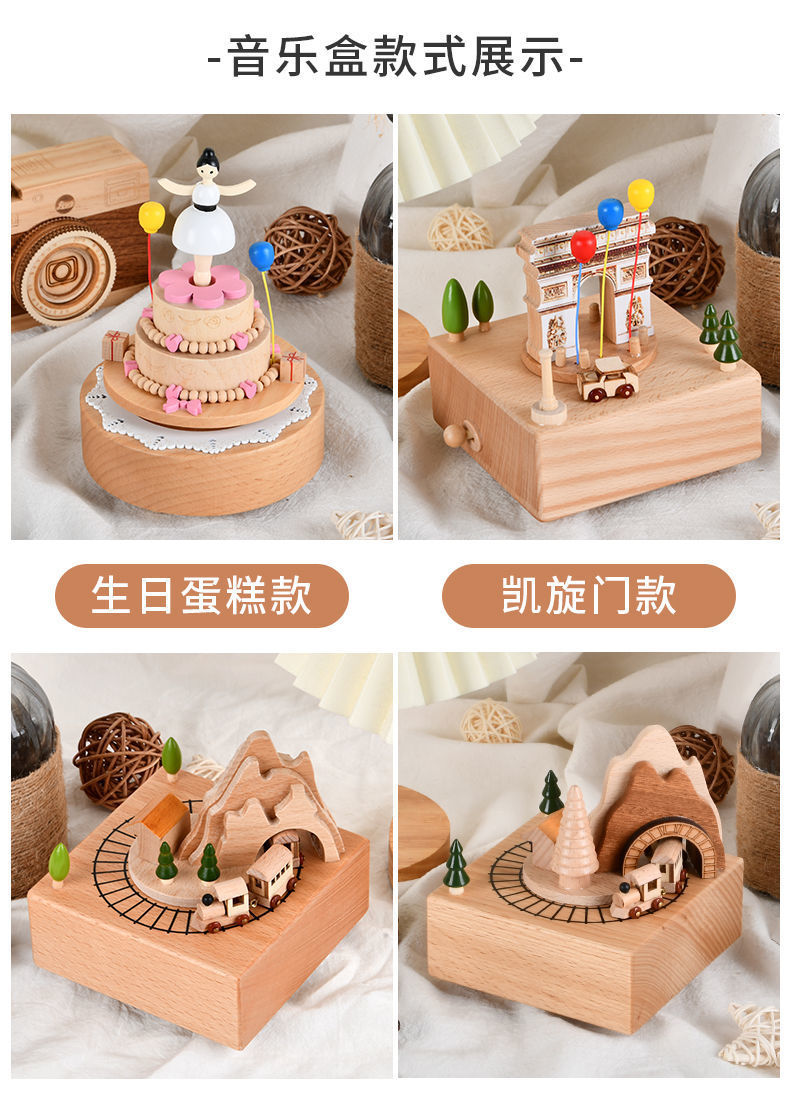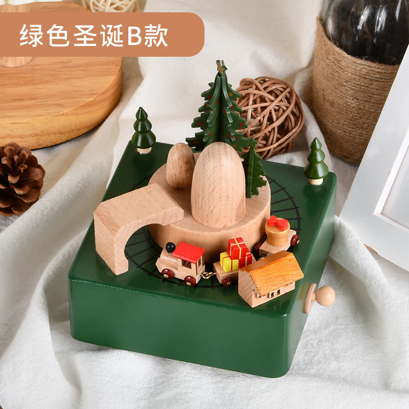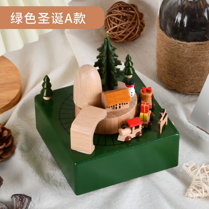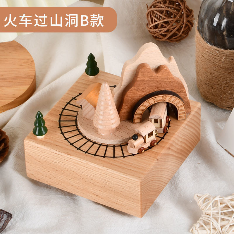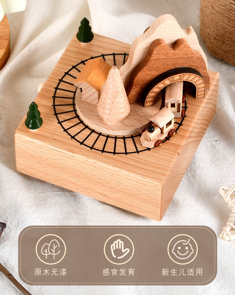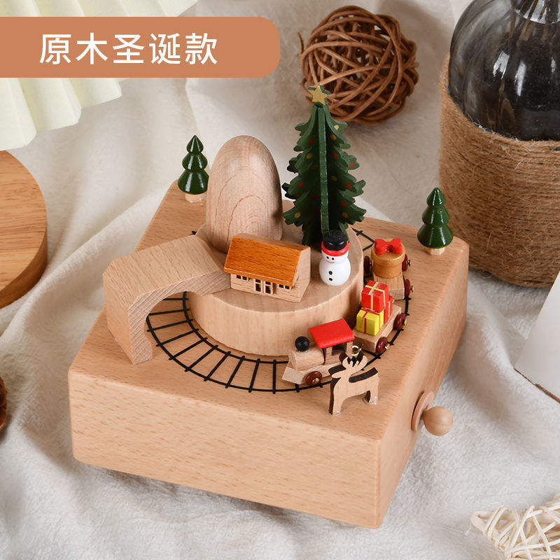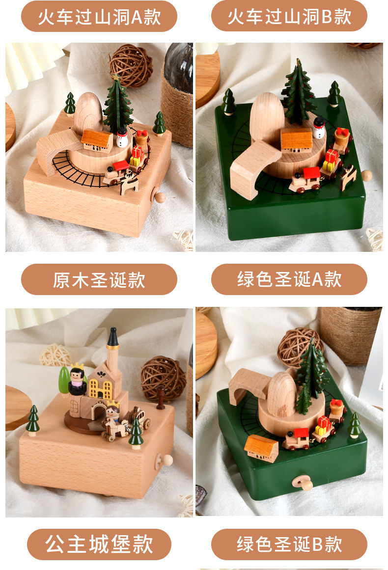 新款小火车八音盒治愈圣诞男女孩宝宝生日礼物天空之城木质音乐盒