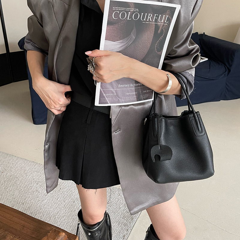 2024春季款真皮女包手提包新款菜篮子高级感时尚手提斜挎水桶包