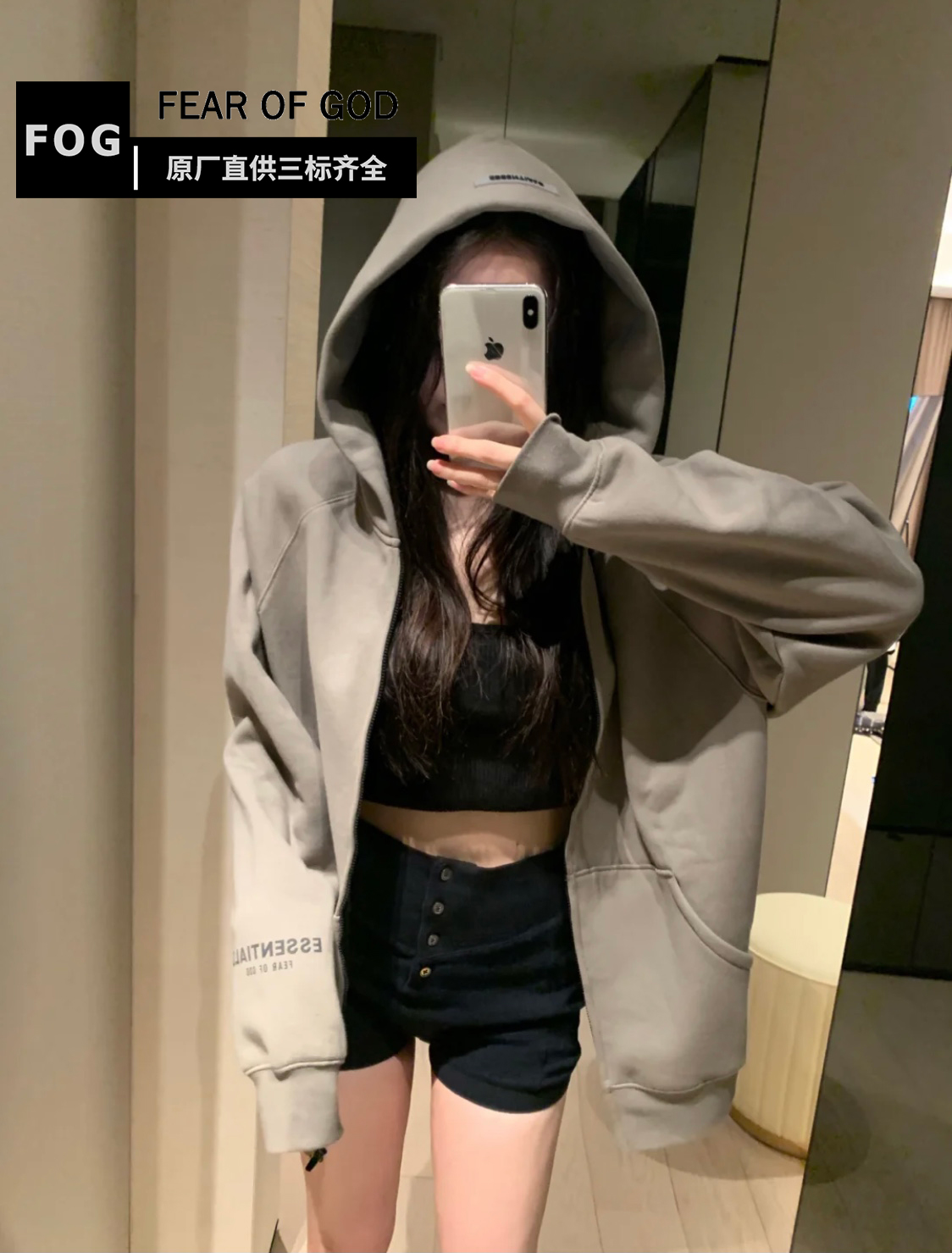 正品ESSENTIALS拉鍊外套過驗 FOG複線寬鬆衛衣帽衫潮牌男女情侶款