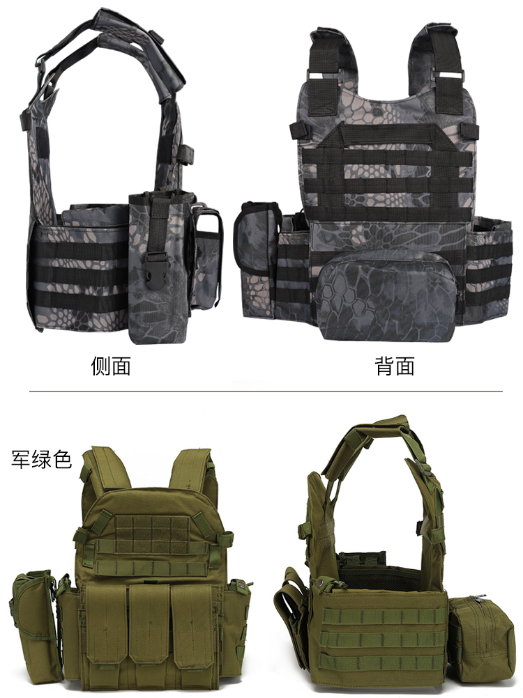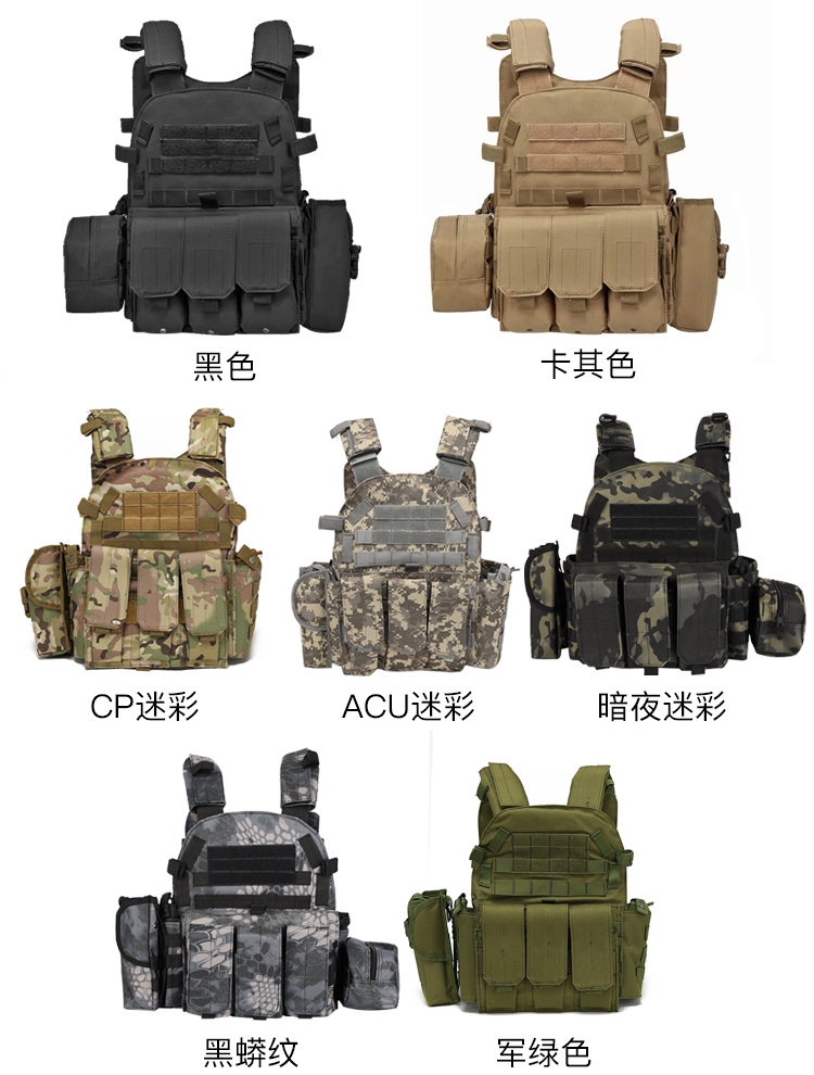顏色 黑色丨帶前後插板,卡其色丨帶前後插板,軍綠色丨帶前後插板,CP迷彩丨帶前後插板,ACU迷彩丨帶前後插板,黑蟒紋丨帶前後插板,暗夜迷彩丨帶前後插板