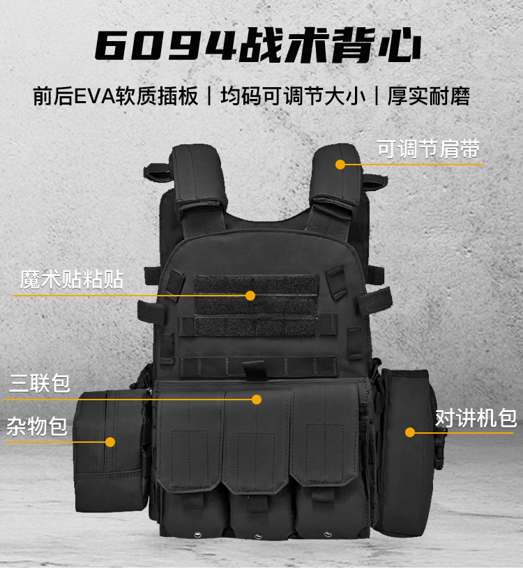 戰術背心6094多功能透氣馬甲迷彩輕量防彈衣CS戶外真人插板防刺服