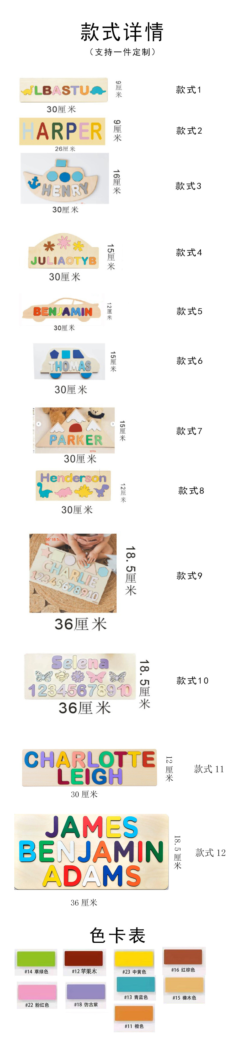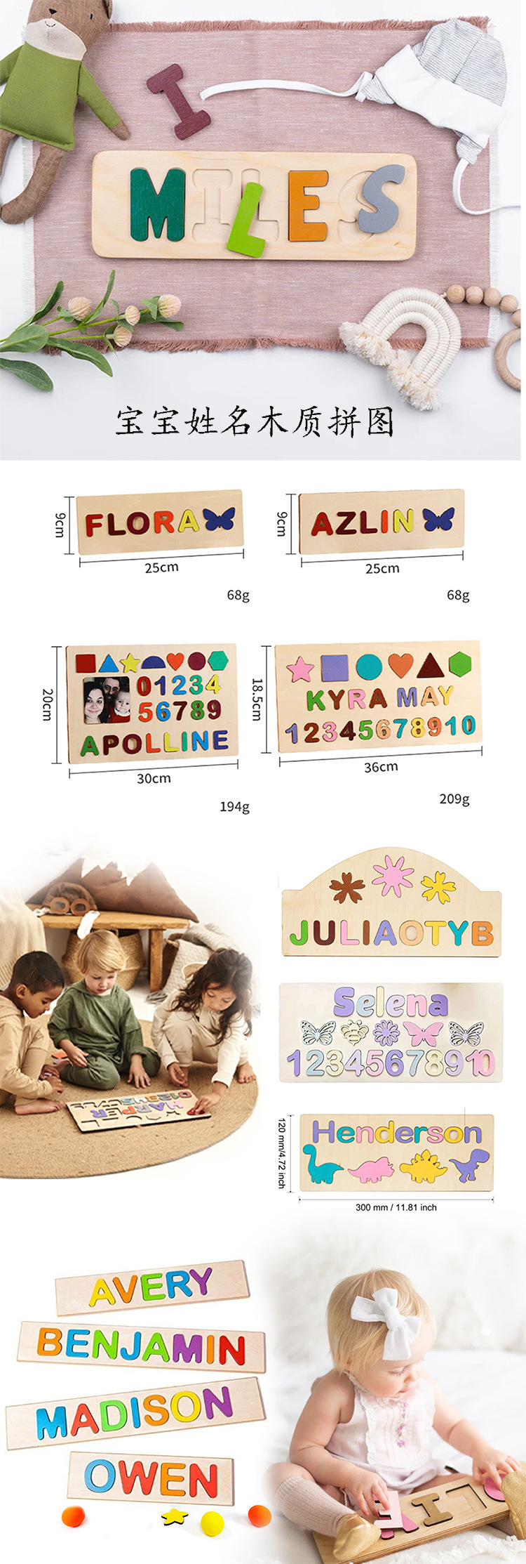 个性化宝宝姓名木质拼图 益智木制拼图玩具 幼儿礼物 字母拼图
