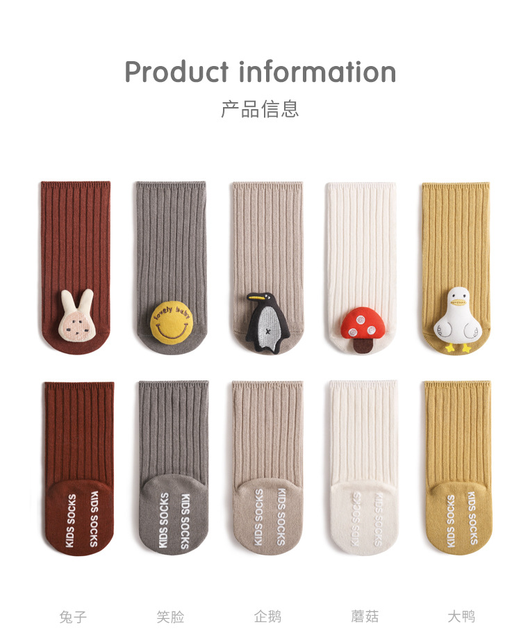 新生儿宝宝袜2023春季新品婴儿袜子可爱卡通公仔男童女童中筒棉袜