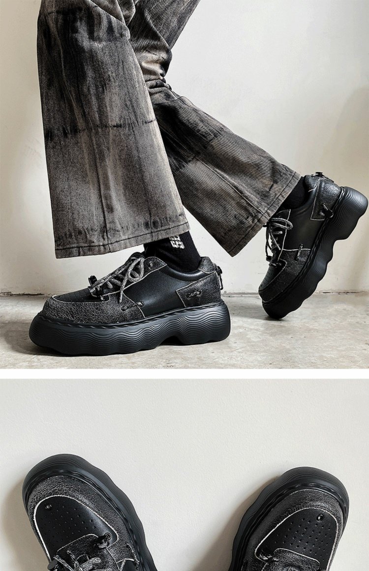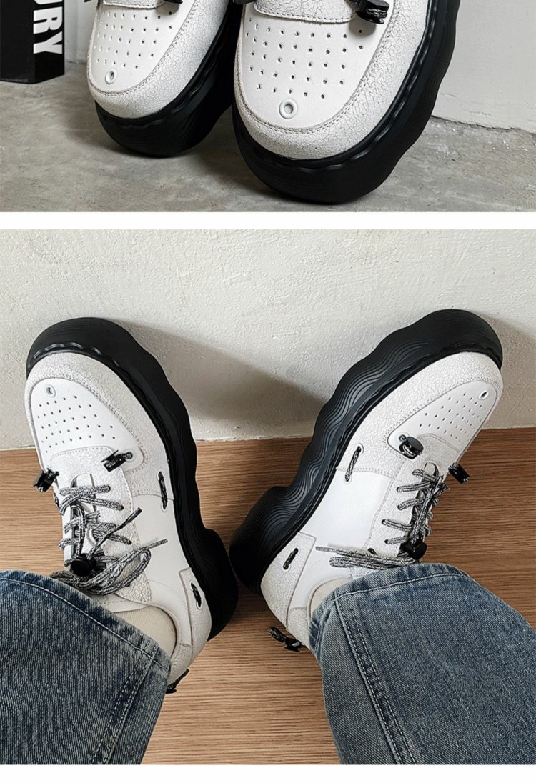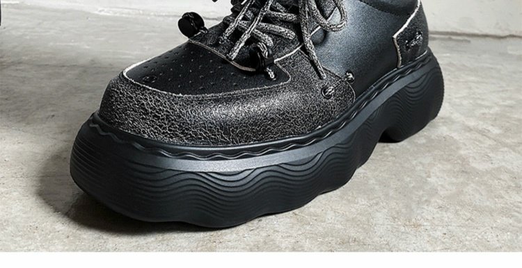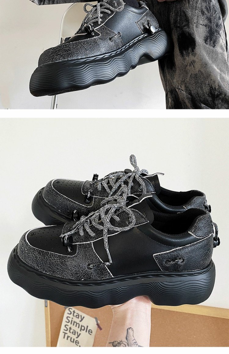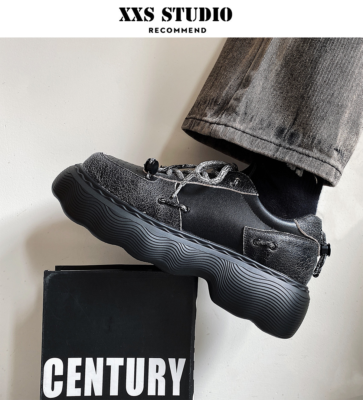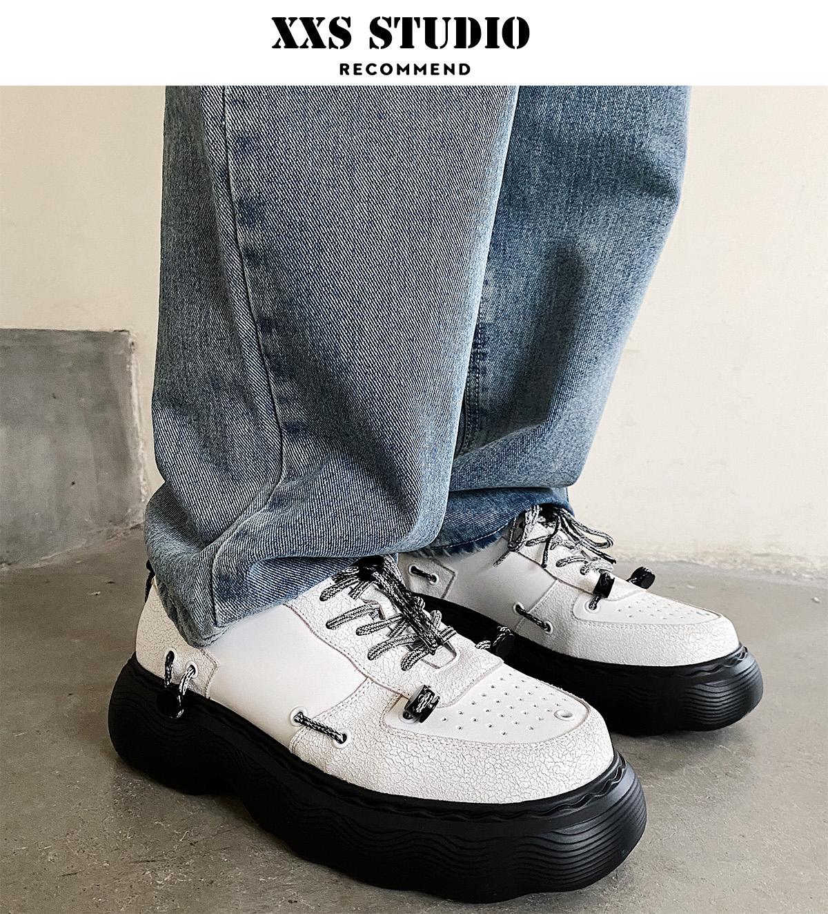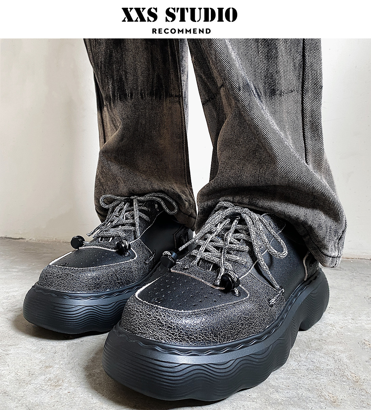 XXS Studio高街老爹鞋男2022新款圓頭拼色鬆糕厚底朋克機能風皮鞋
