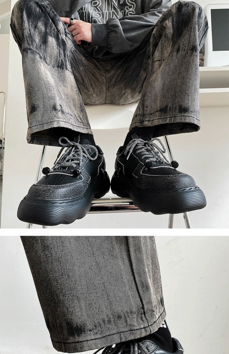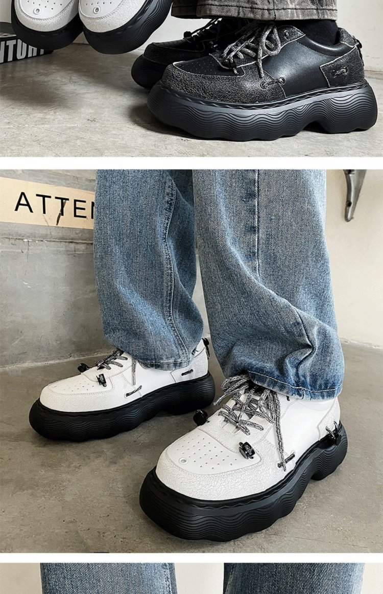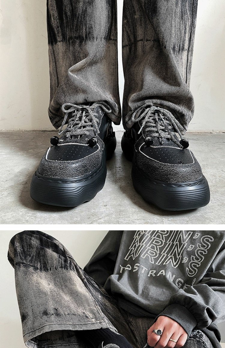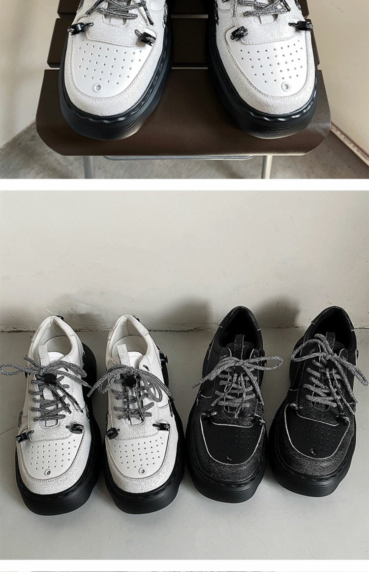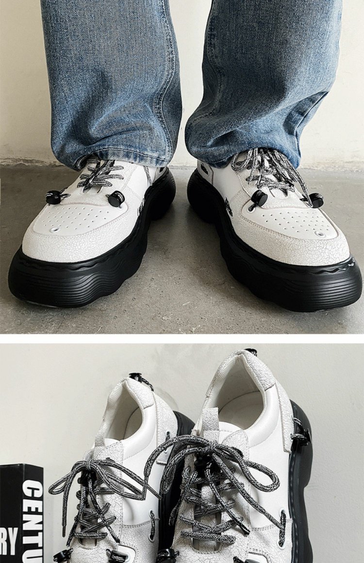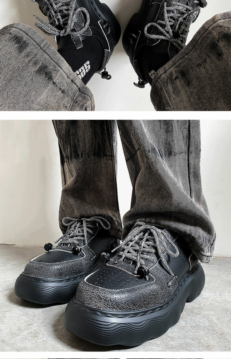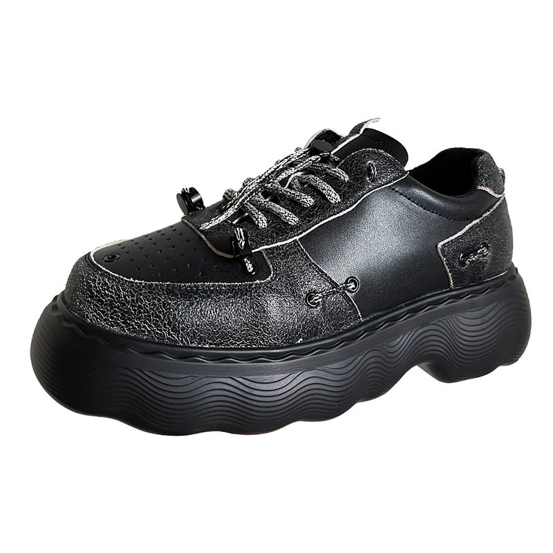XXS Studio高街老爹鞋男2022新款圓頭拼色鬆糕厚底朋克機能風皮鞋