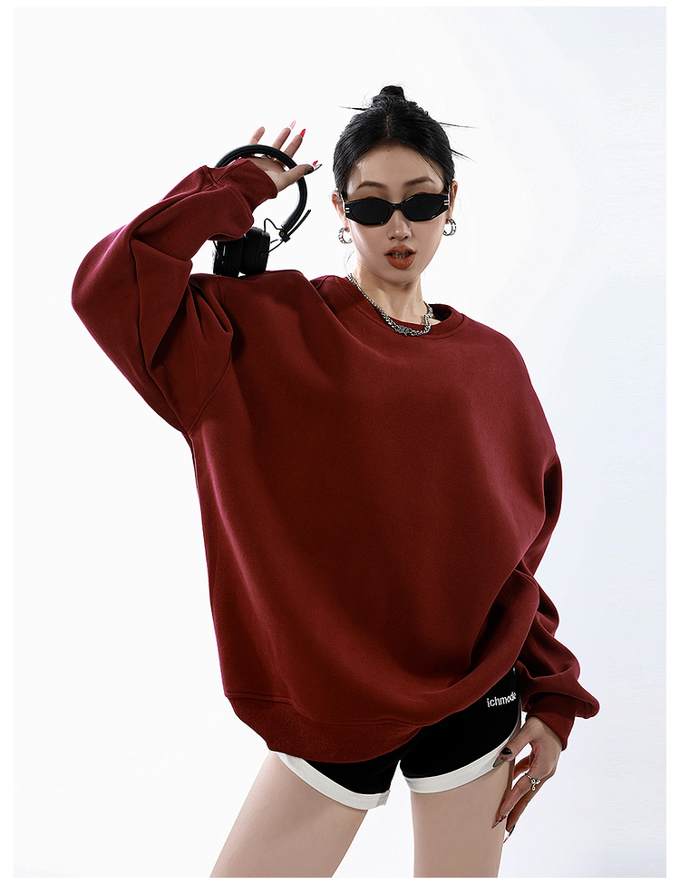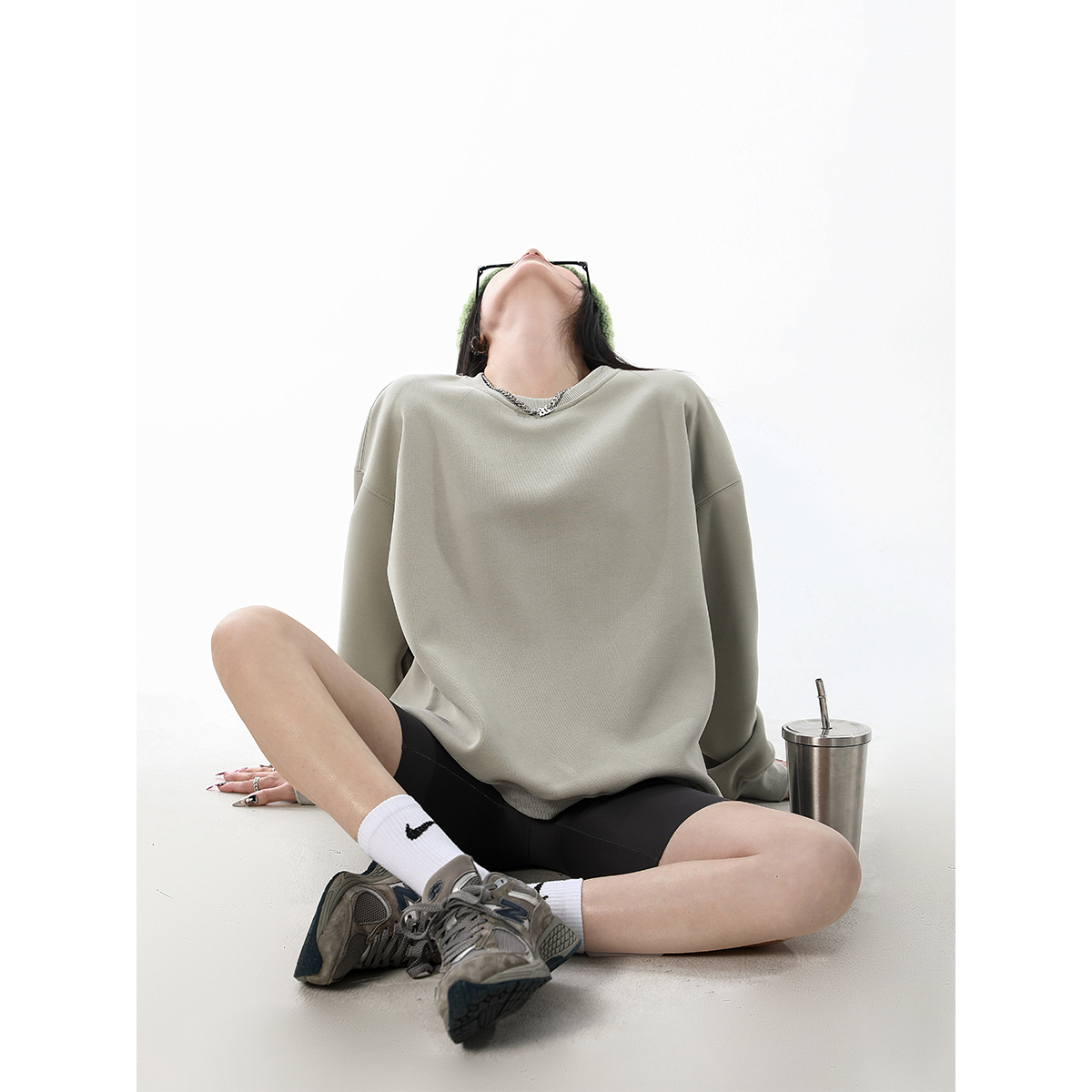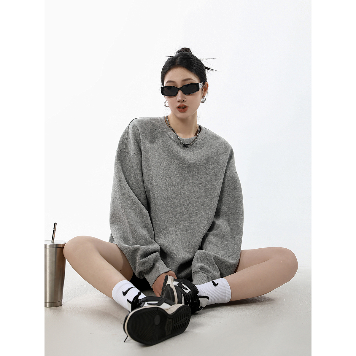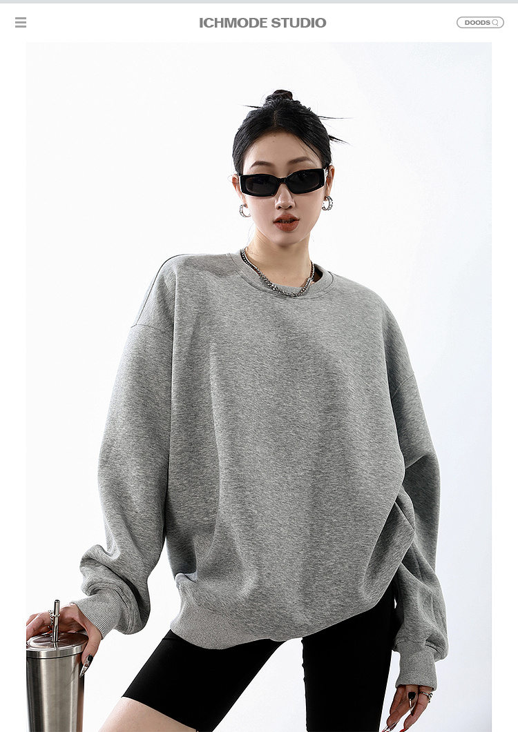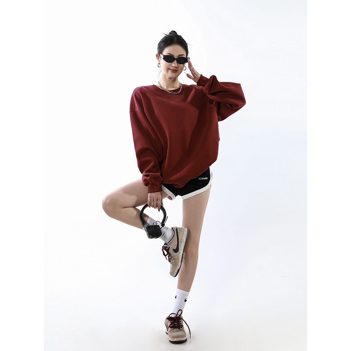 ICH MODE圓領純色美式百搭簡約春秋上衣寬鬆街頭廓形顯瘦休閒厚棉