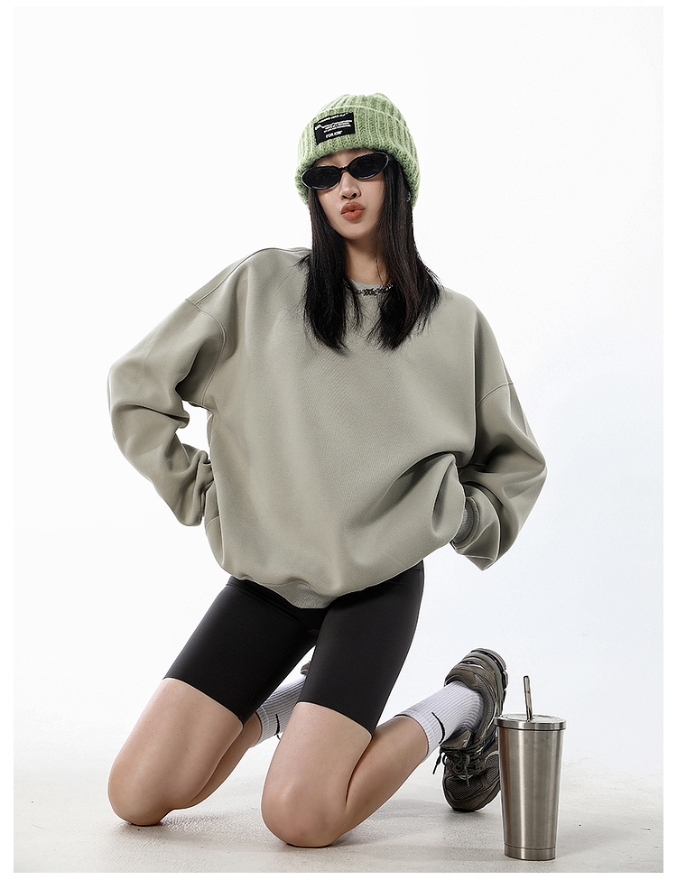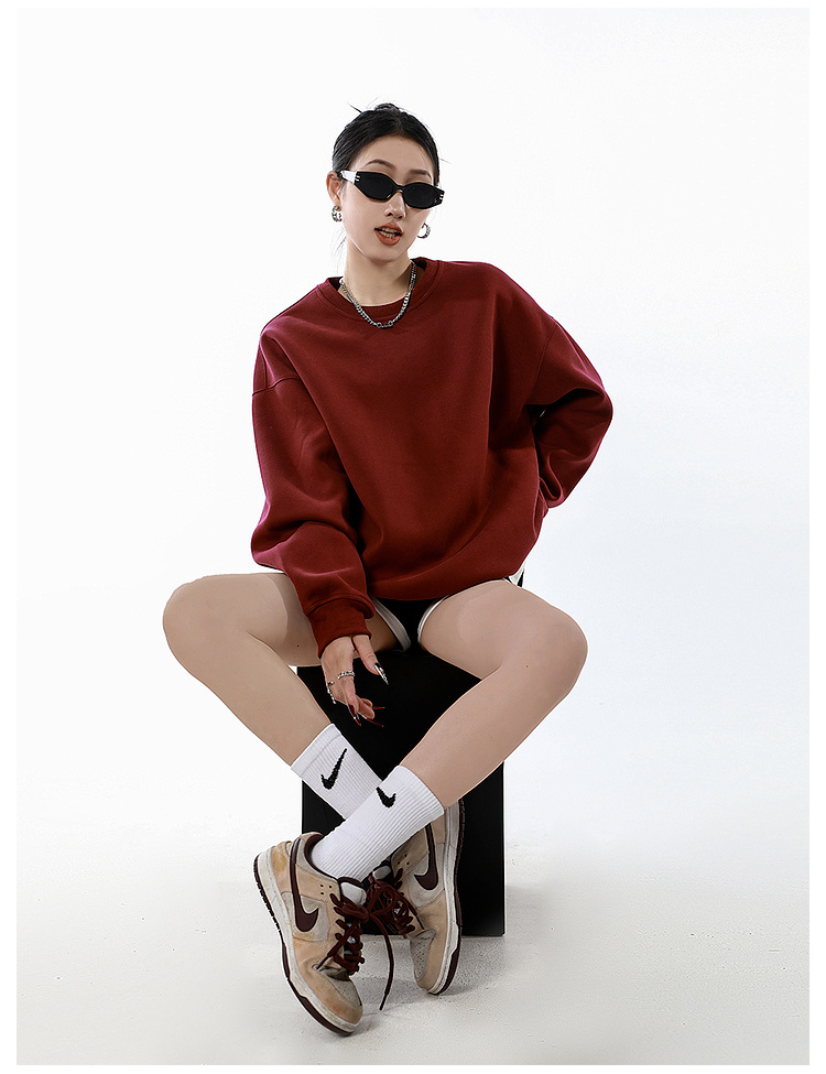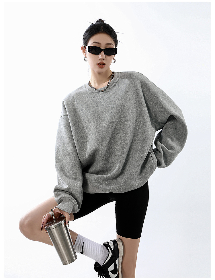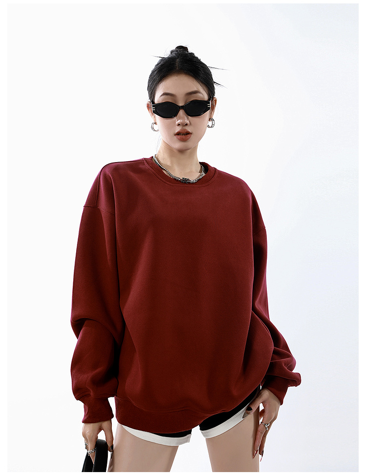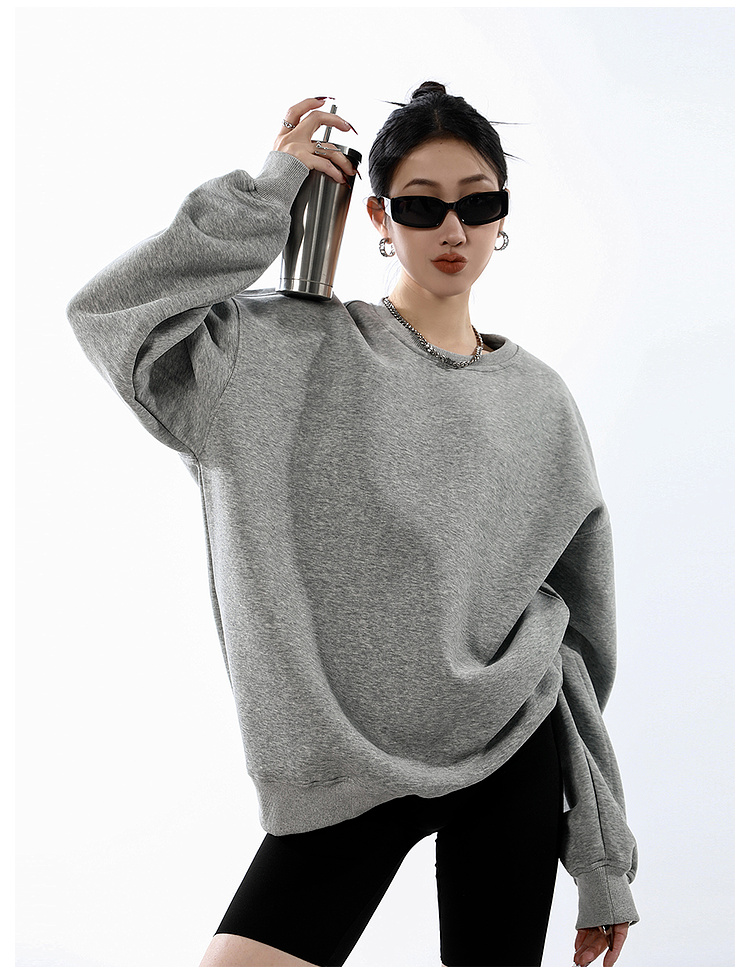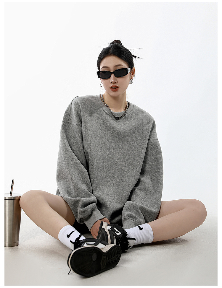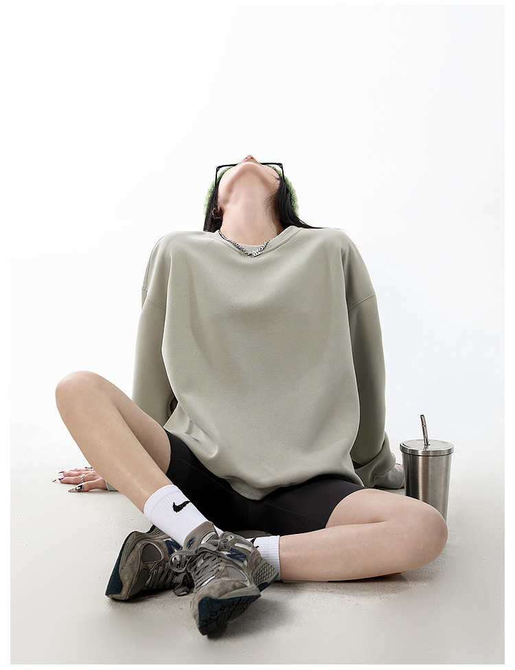 ICH MODE圓領純色美式百搭簡約春秋上衣寬鬆街頭廓形顯瘦休閒厚棉